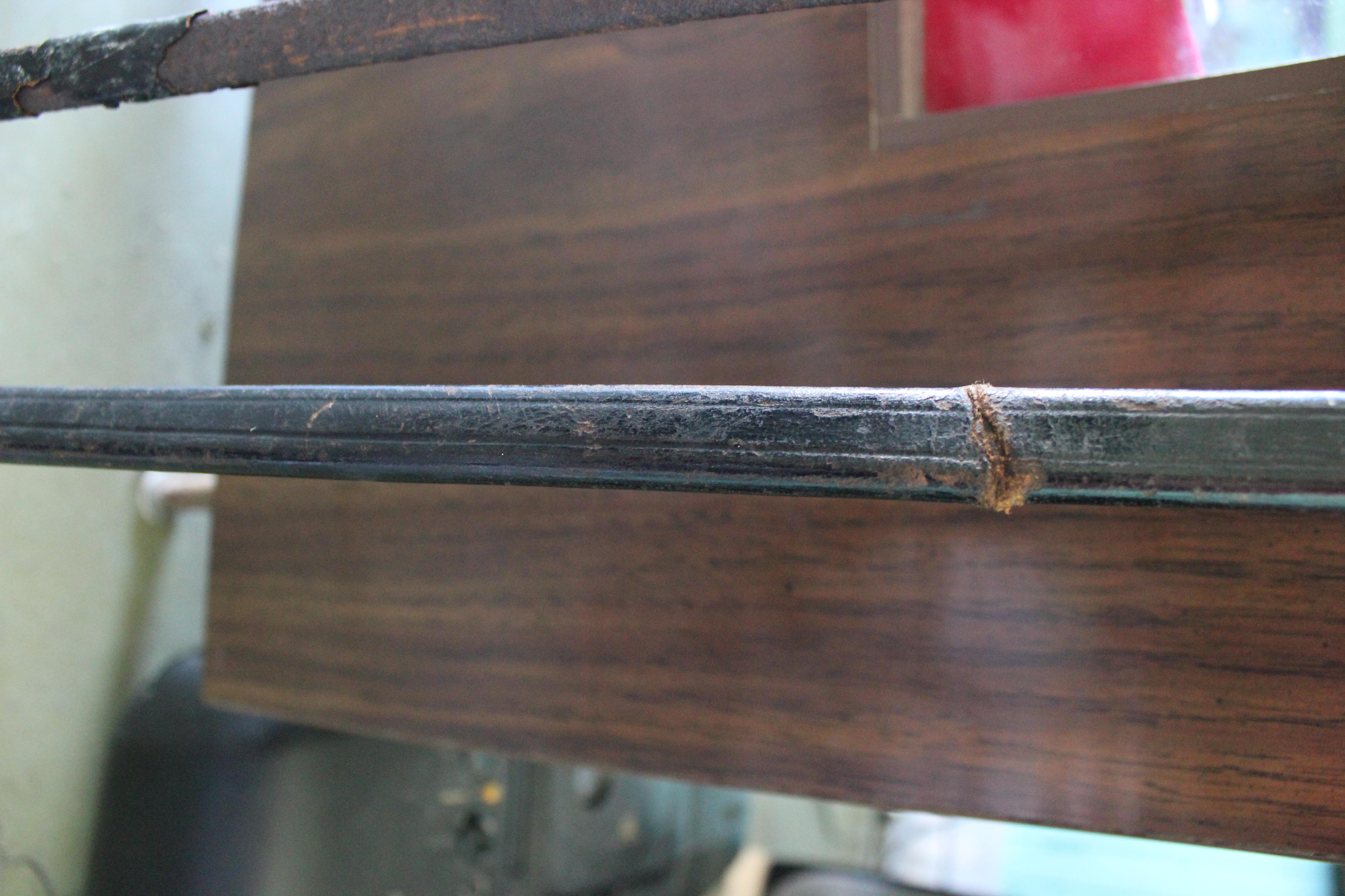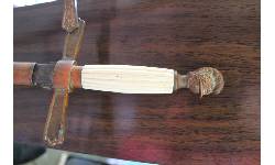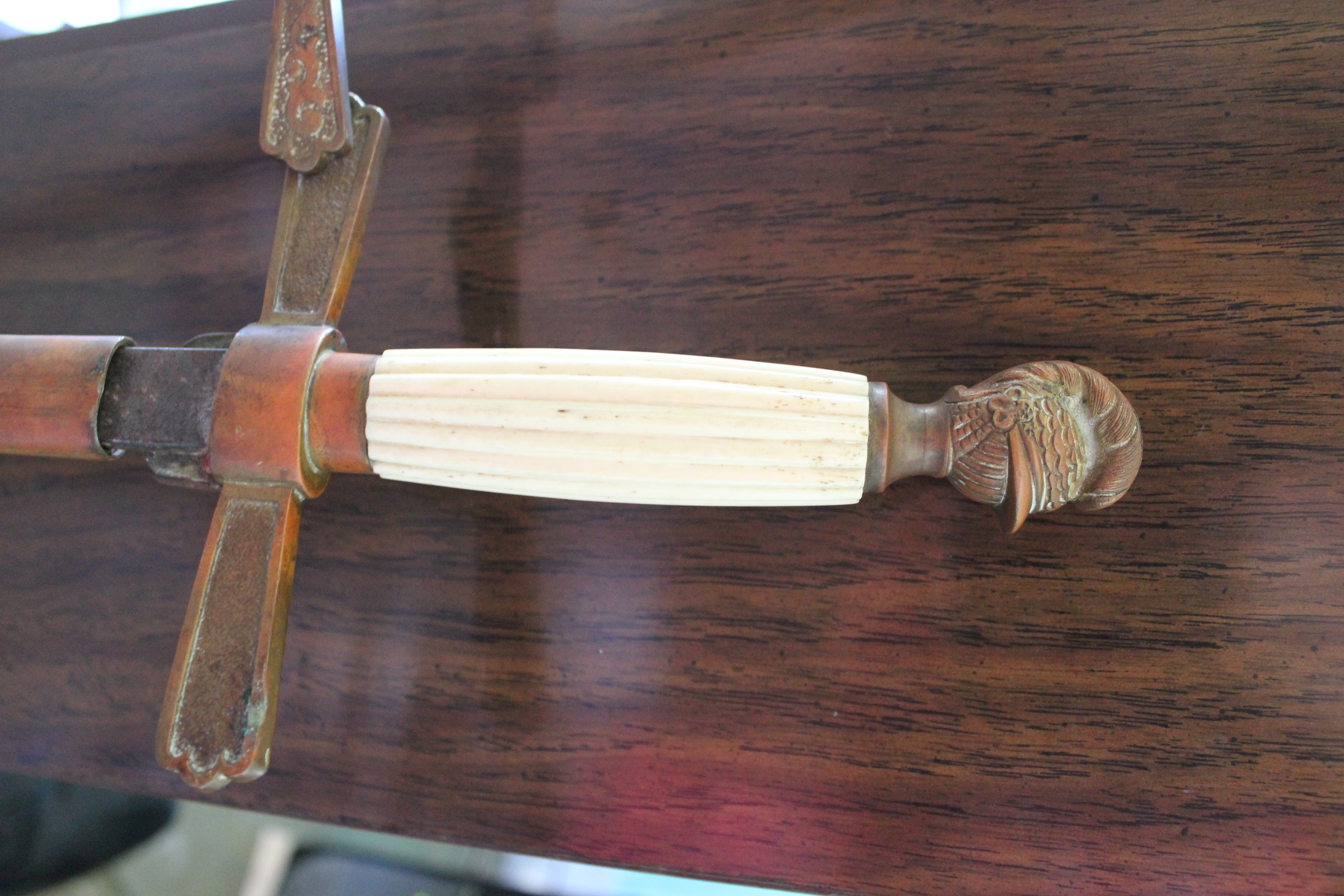Object Desc Sword in a fully intact scabbard. Knight head detailing on the handle.