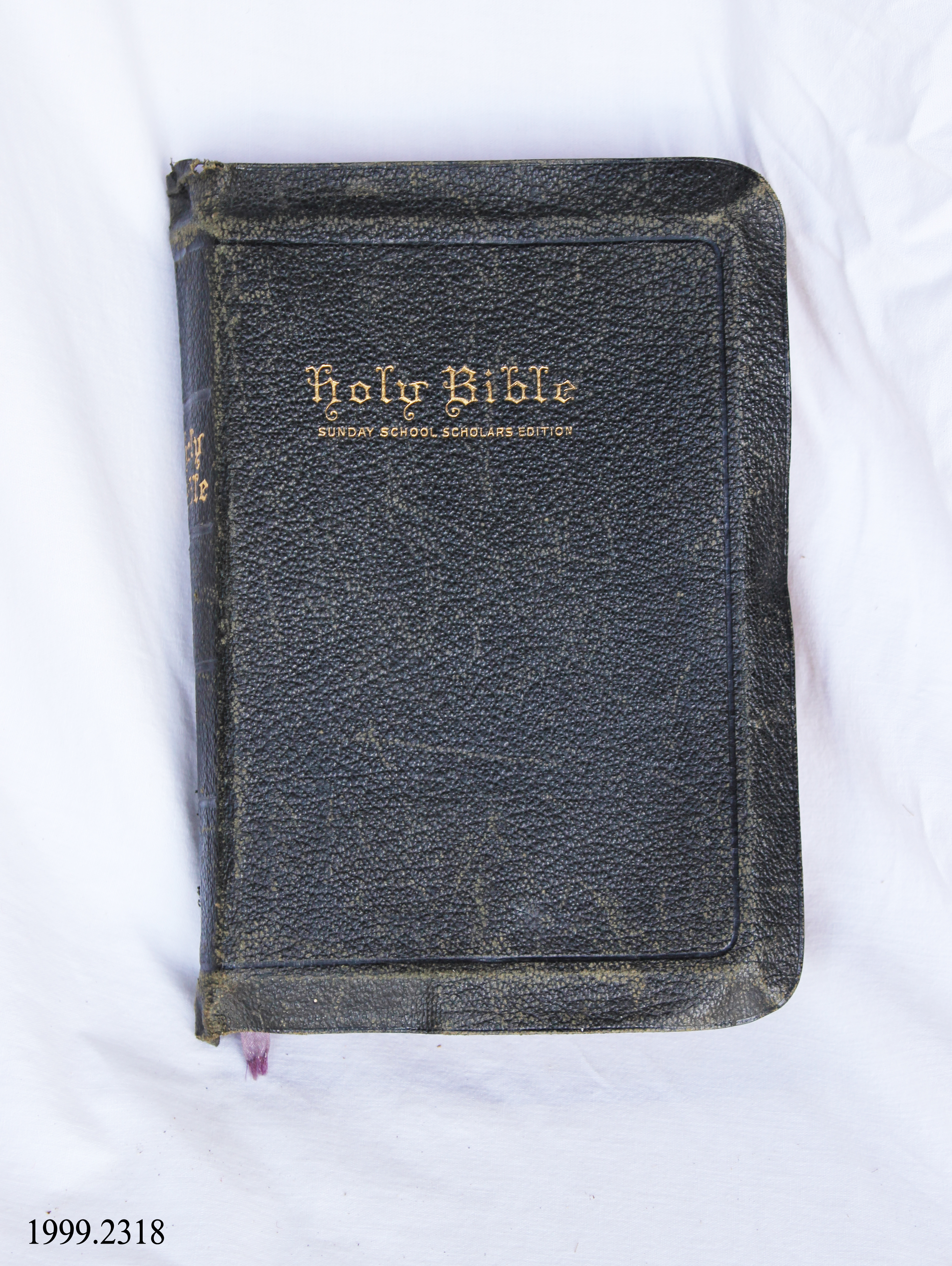 Object Desc Presented to George Hepworth on Dec 16th 1908, from his aunt Helen Ferguson. George died from wounds in WW1. His namesake, George Gerrard accepted the Bible on Behalf of the Museum, On July 11th 1999 presented by Helen Hepworth His sister in-law.