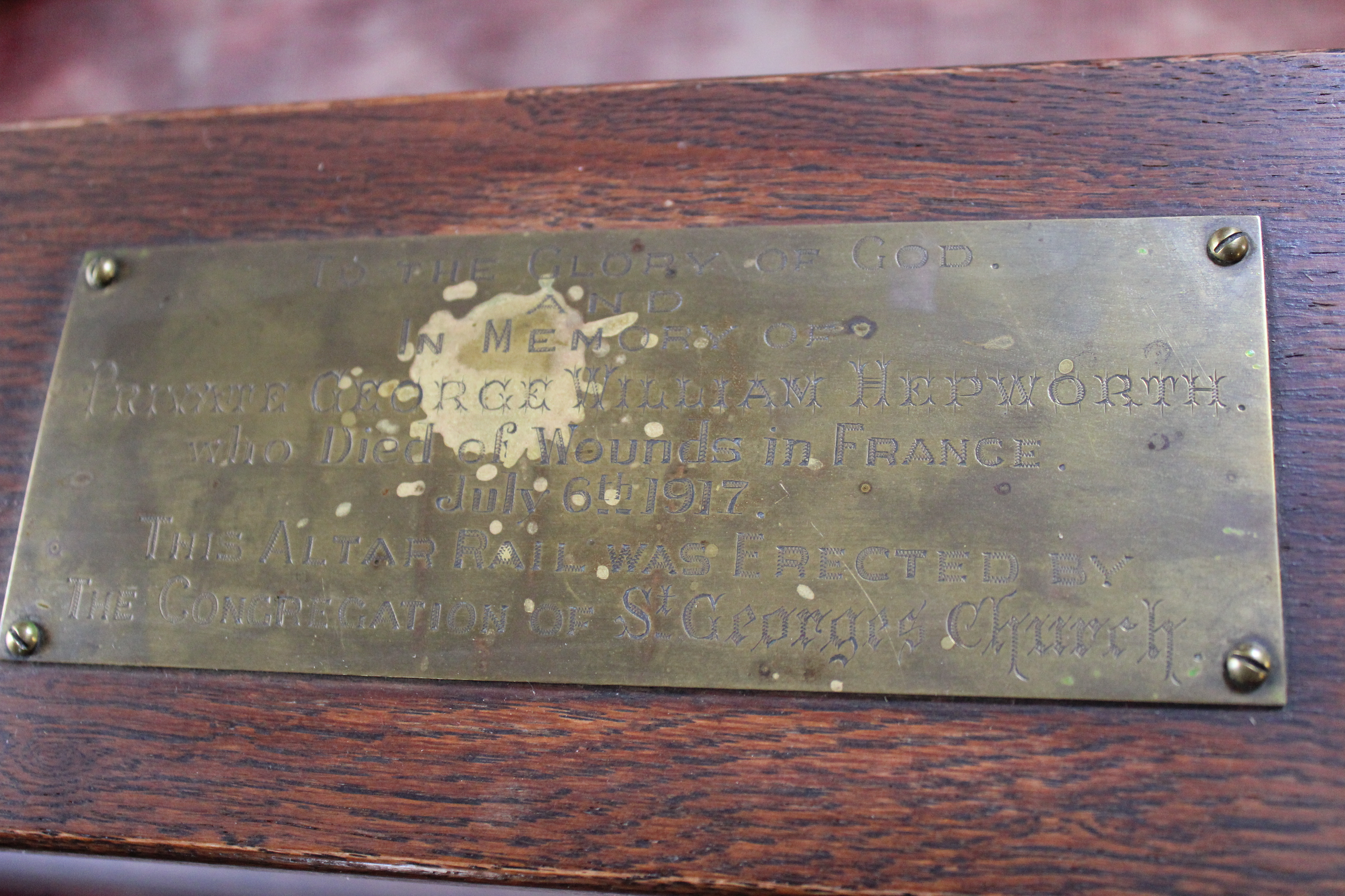 Object Desc Erected by the congregation of St. George's Church in memory of Private George William Hepworth who died of wounds in France, July 6th 1917.
