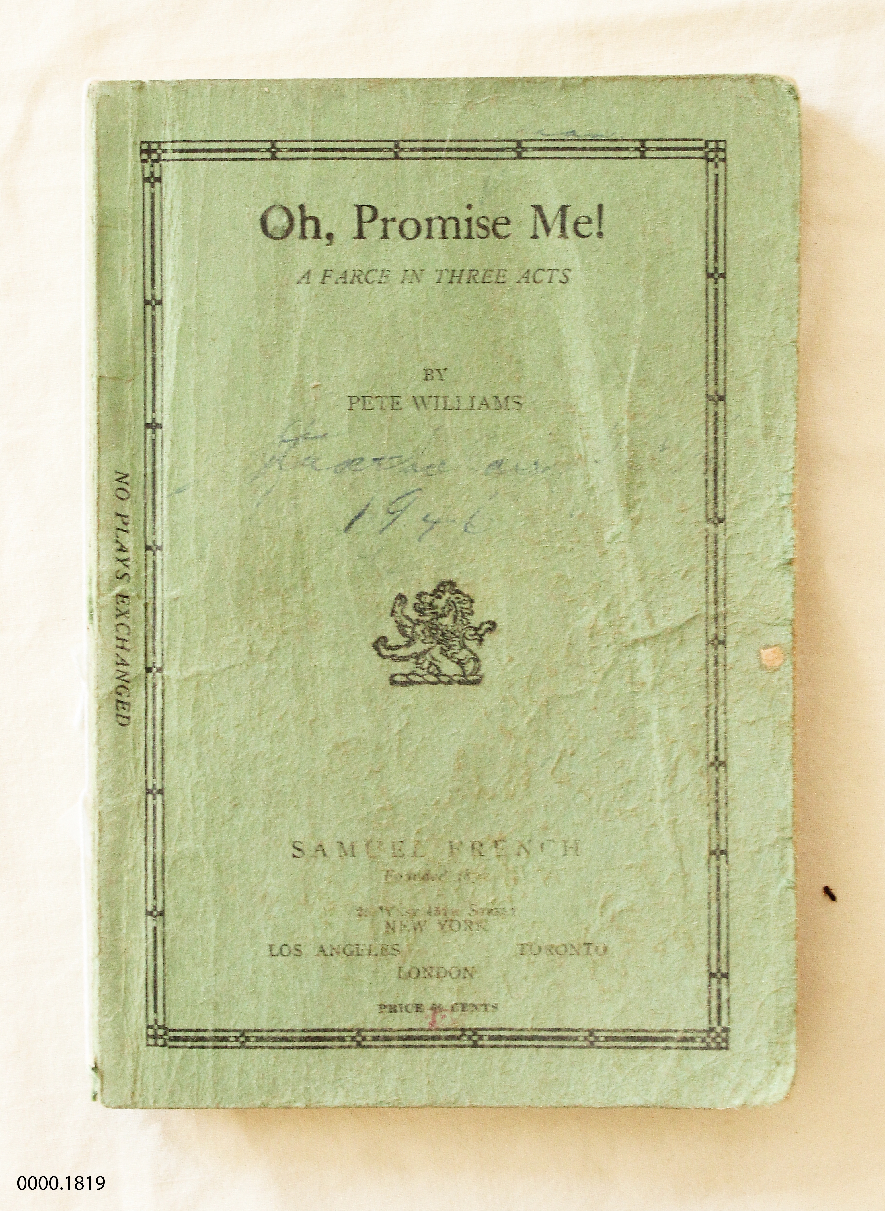 Object Desc A farce in three acts performed by Strathclair Young Peoples' Society in 1946.