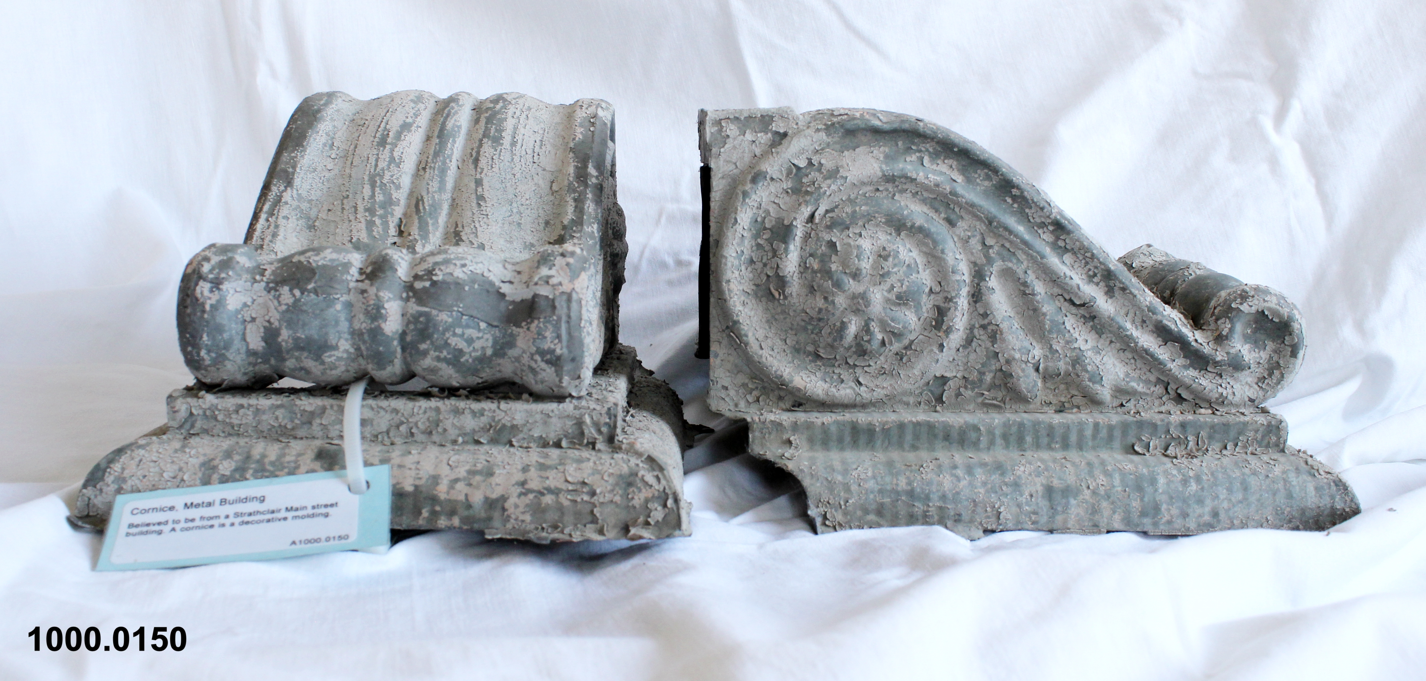 Object Desc Believed to be from a Strathclair Main street building. A cornice is a decorative molding.