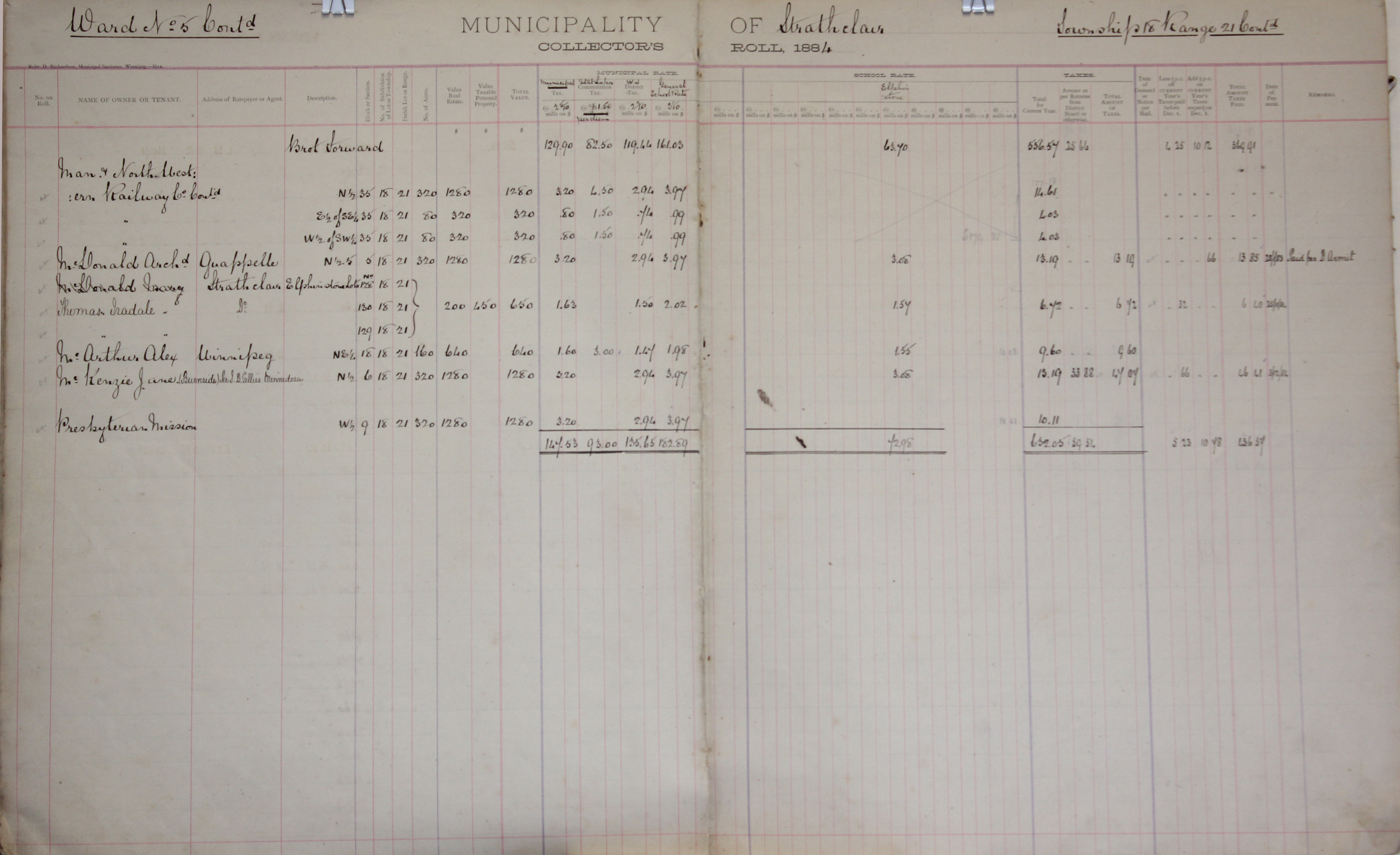 Description Man. Northwestern Railway Co. N 35-18-21, SE 35-18-21, SW 35-18-21, McDonald Archd N 5-18-21, Thomas Iradale Lot 128 8-18-21, Lot 130 8-18-21, Lot 129 8-18-21, McArthur Alex NE 18-18-21, McKenzie Jane N 6-18-21, Presbyterian Mission - W 9-18-21