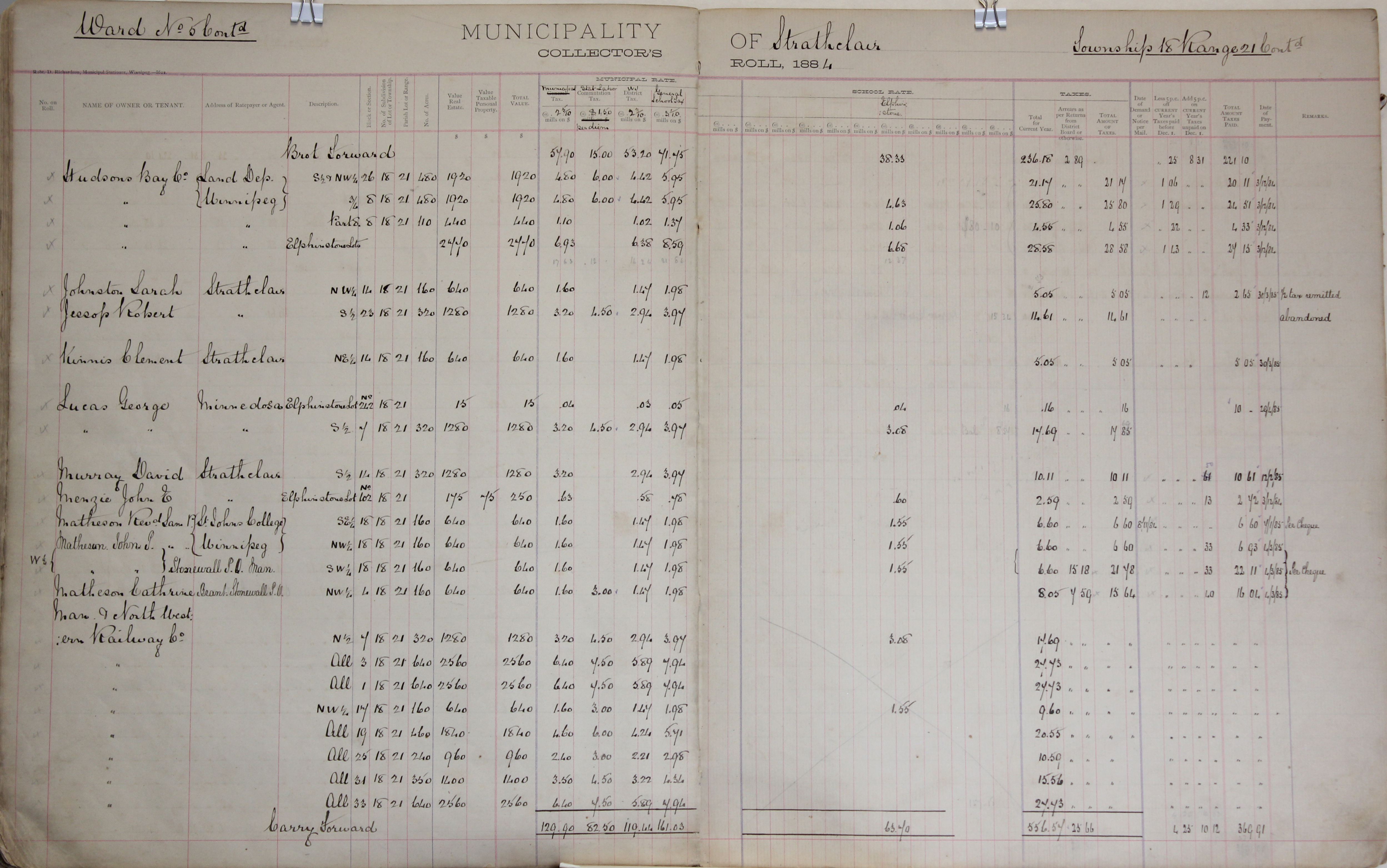 Description Hudson Bay Co. S 26-18-21, NW 26-18-21, 8-18-21, Johnston Sarah NW 14-18-21, Jessop Robert S 23-18-21, Kinnis Clement NE 14-18-21, Lucas George Lot 242 8-18-21, S 7-18-21, Murray David S 14-18-21, Menzie John E Lot 102 8-18-21, Matheson Rev. Sam P SE 18-18-21, Matheson John P NW 18-18-21, SW 18-18-21, Matheson Catherine NW 4-18-21, Man. Northwestern Railway Co. N 7-18-21, 3-18-21, 1-18-21, NW 17-18-21, 19-18-21, 25-18-21, 31-18-21, 33-18-21