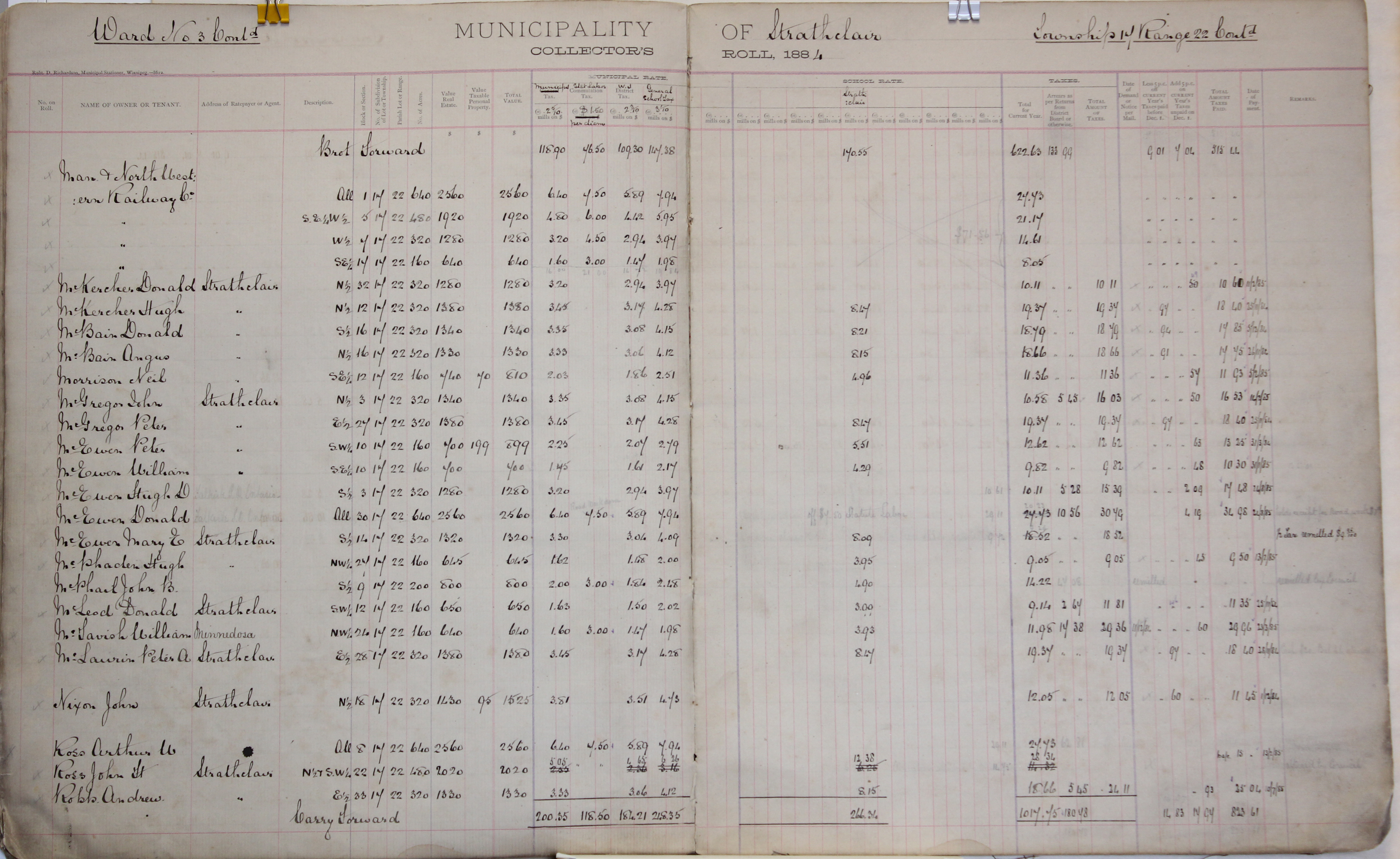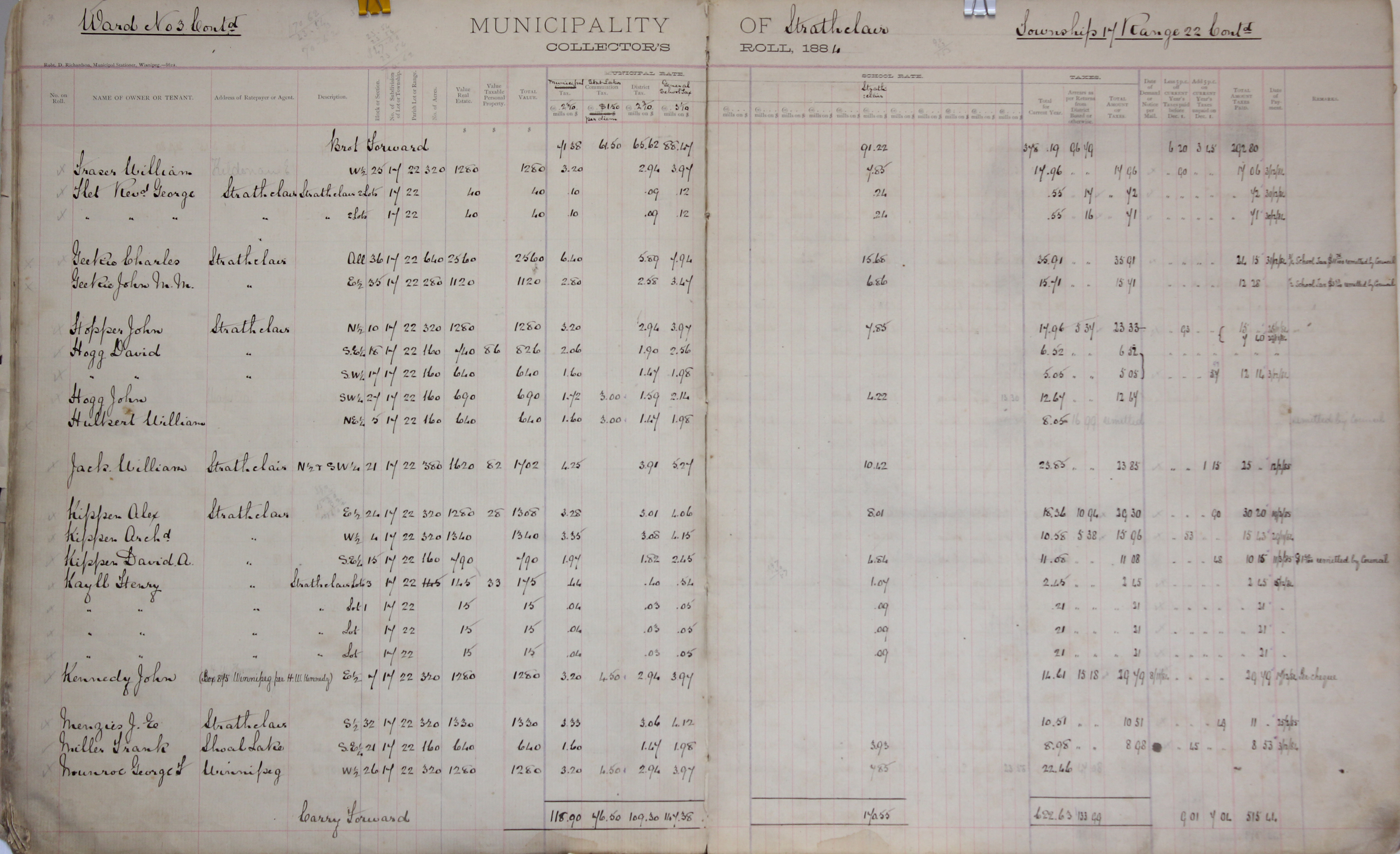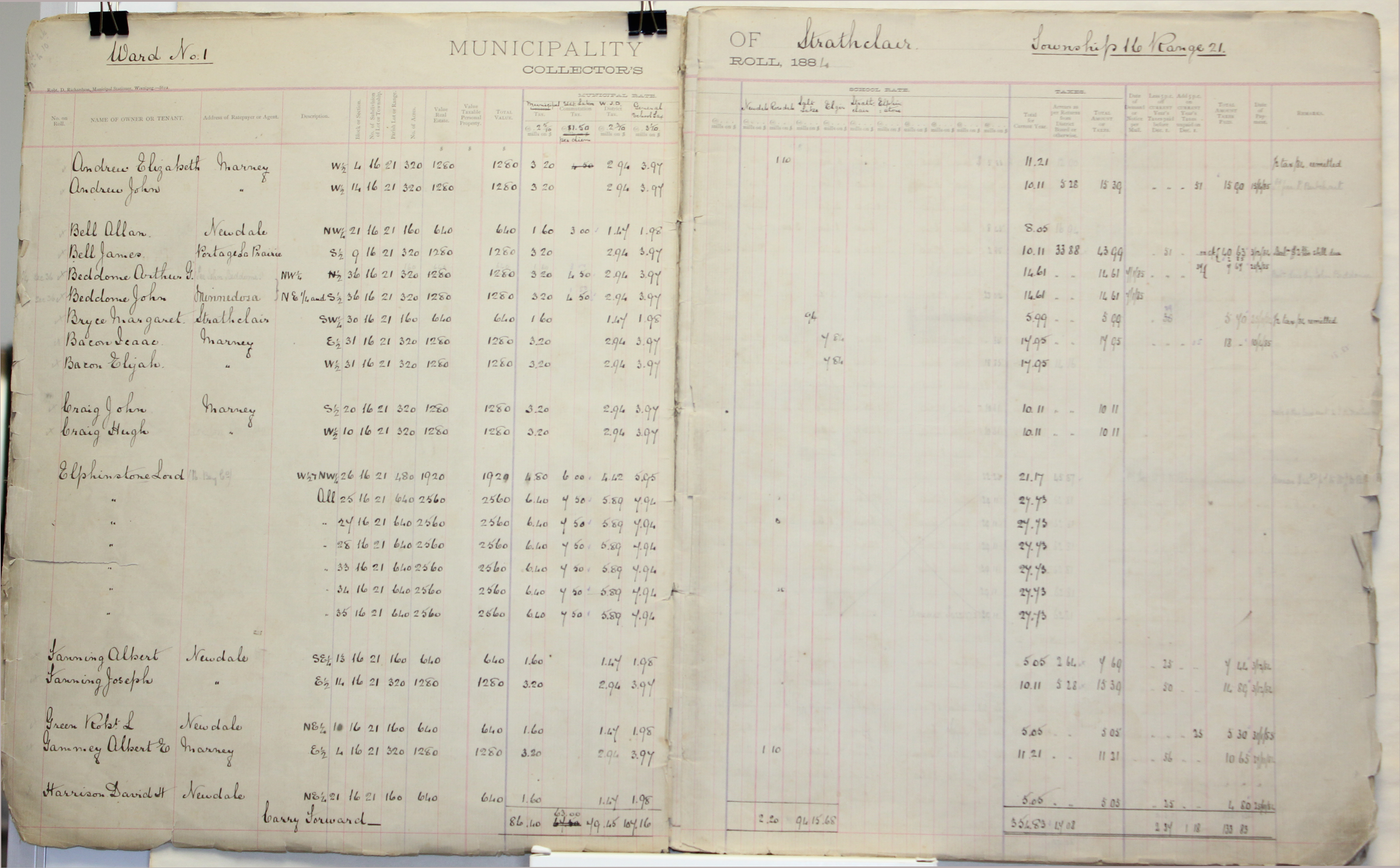 Object Name Strathclair Tax Roll 1884