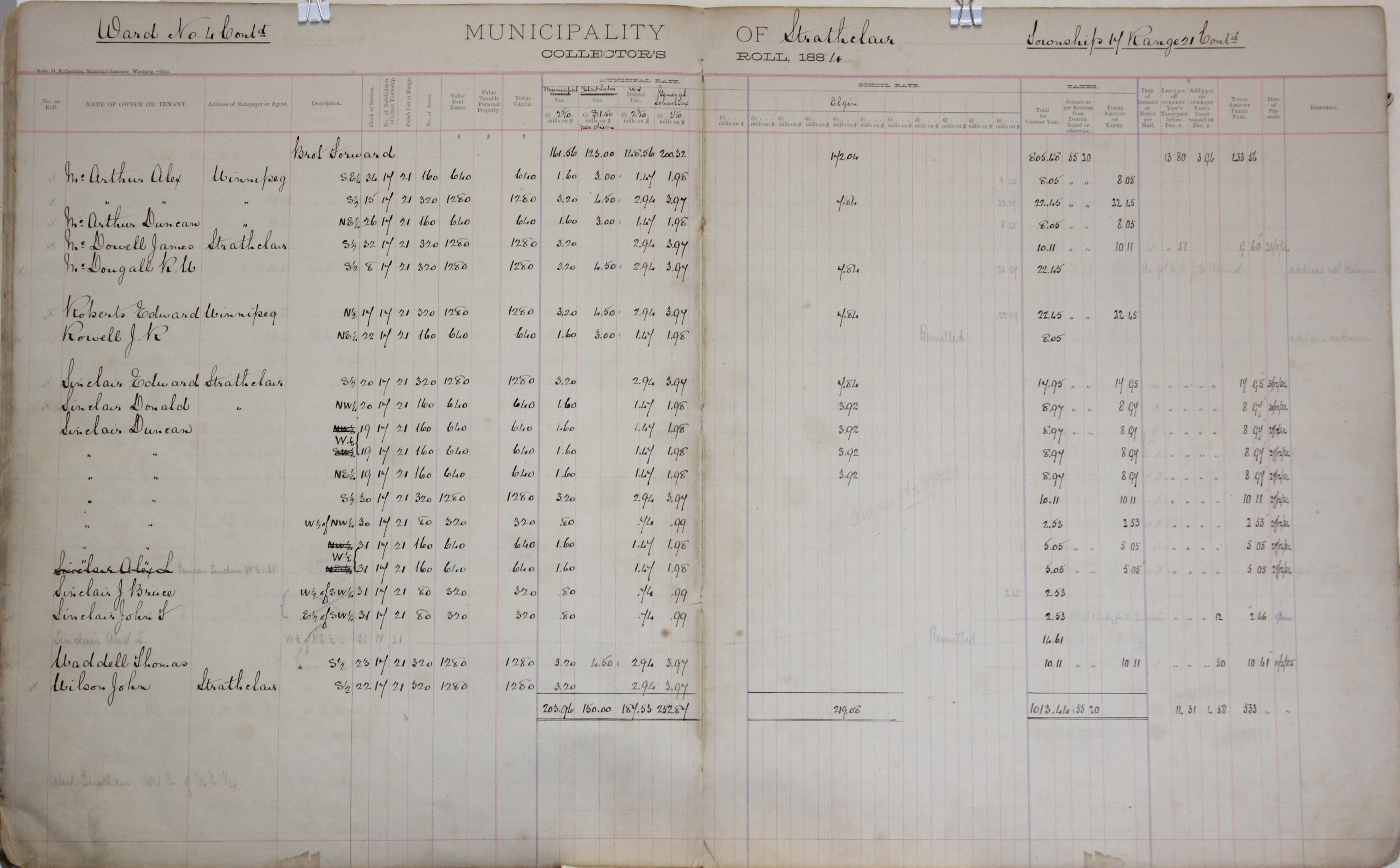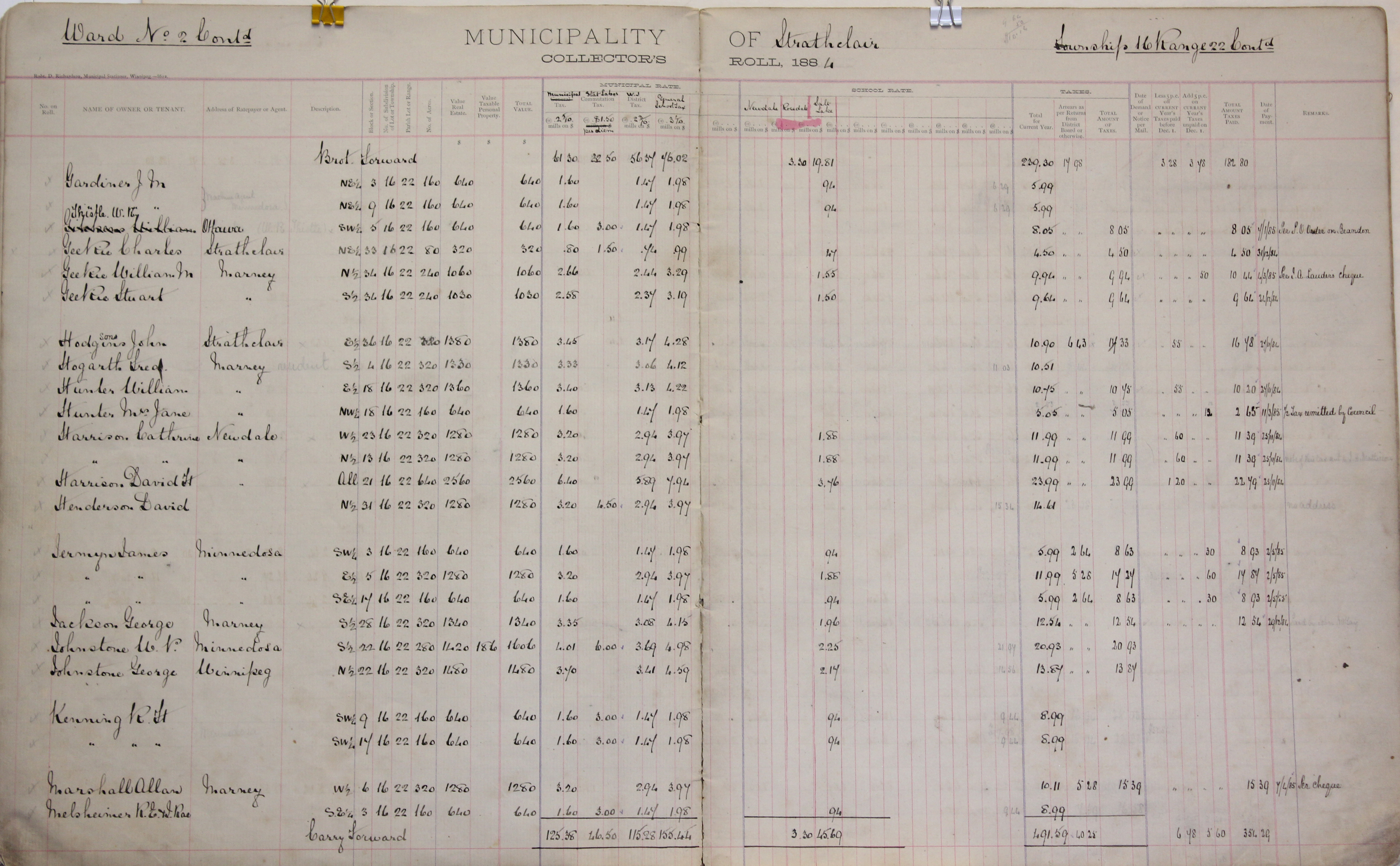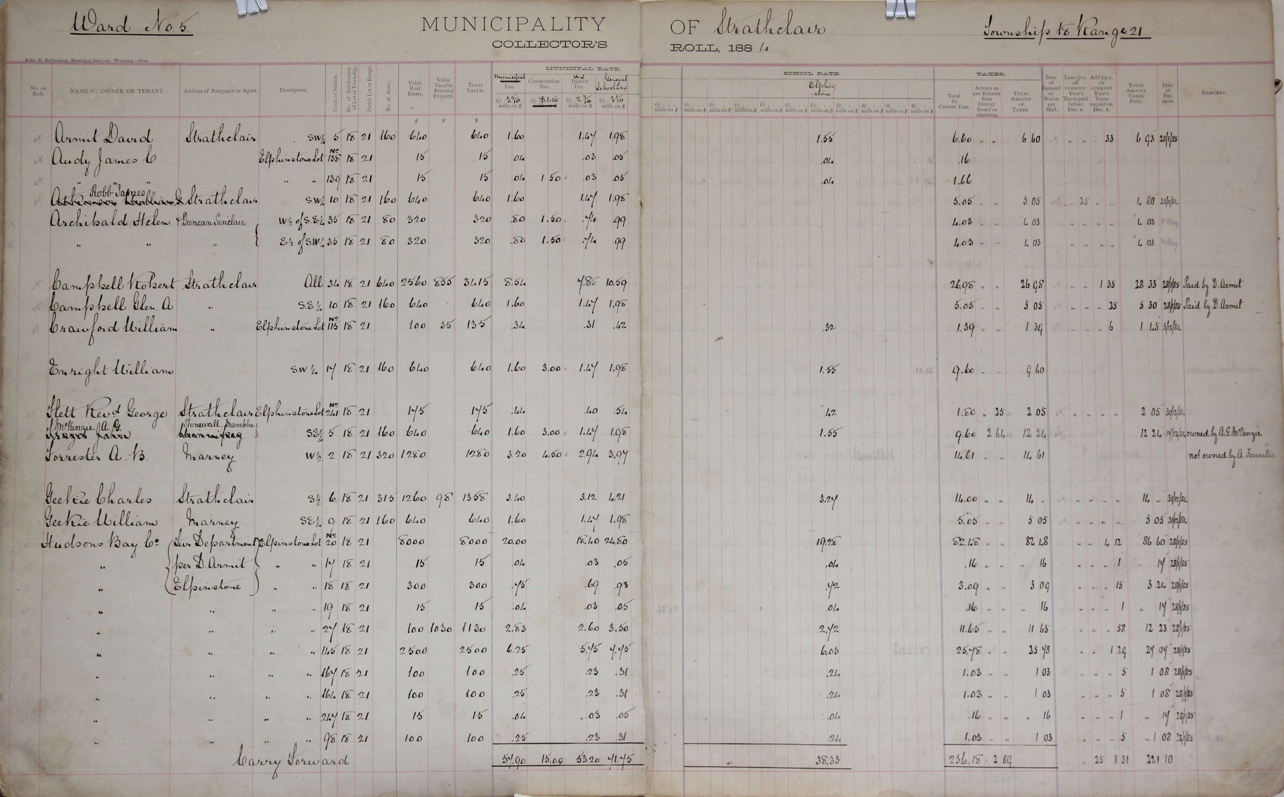 Object Name Strathclair Tax Roll 1884