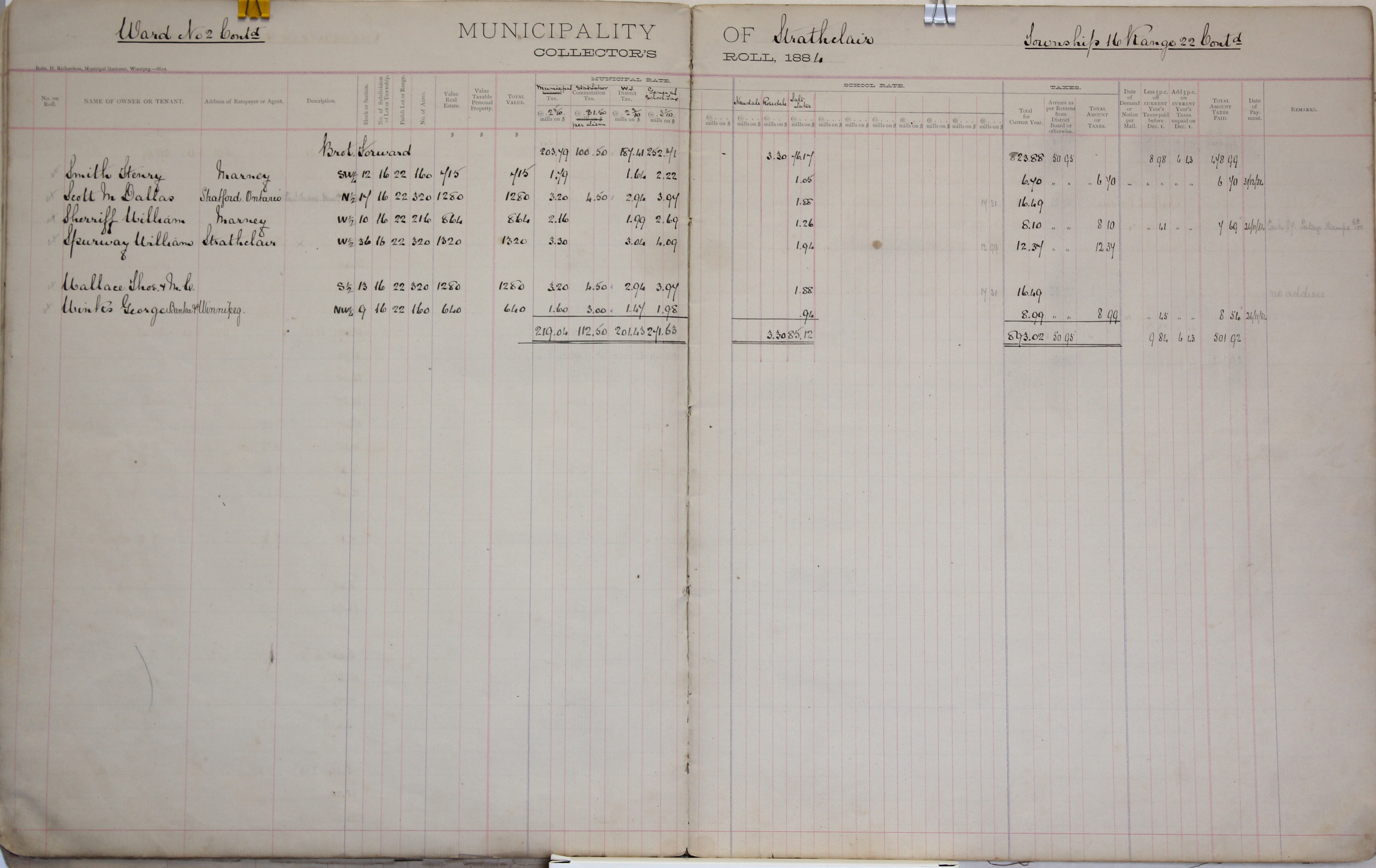 Description Smith Henry - SW 12-16-22, Scott M Dallas N 17-16-22, Sherriff William W 10-16-22, Spurway William W 36-16-22, Wallace Thomas Wallace M C S 13-16-22, Winks George NW 9-16-22