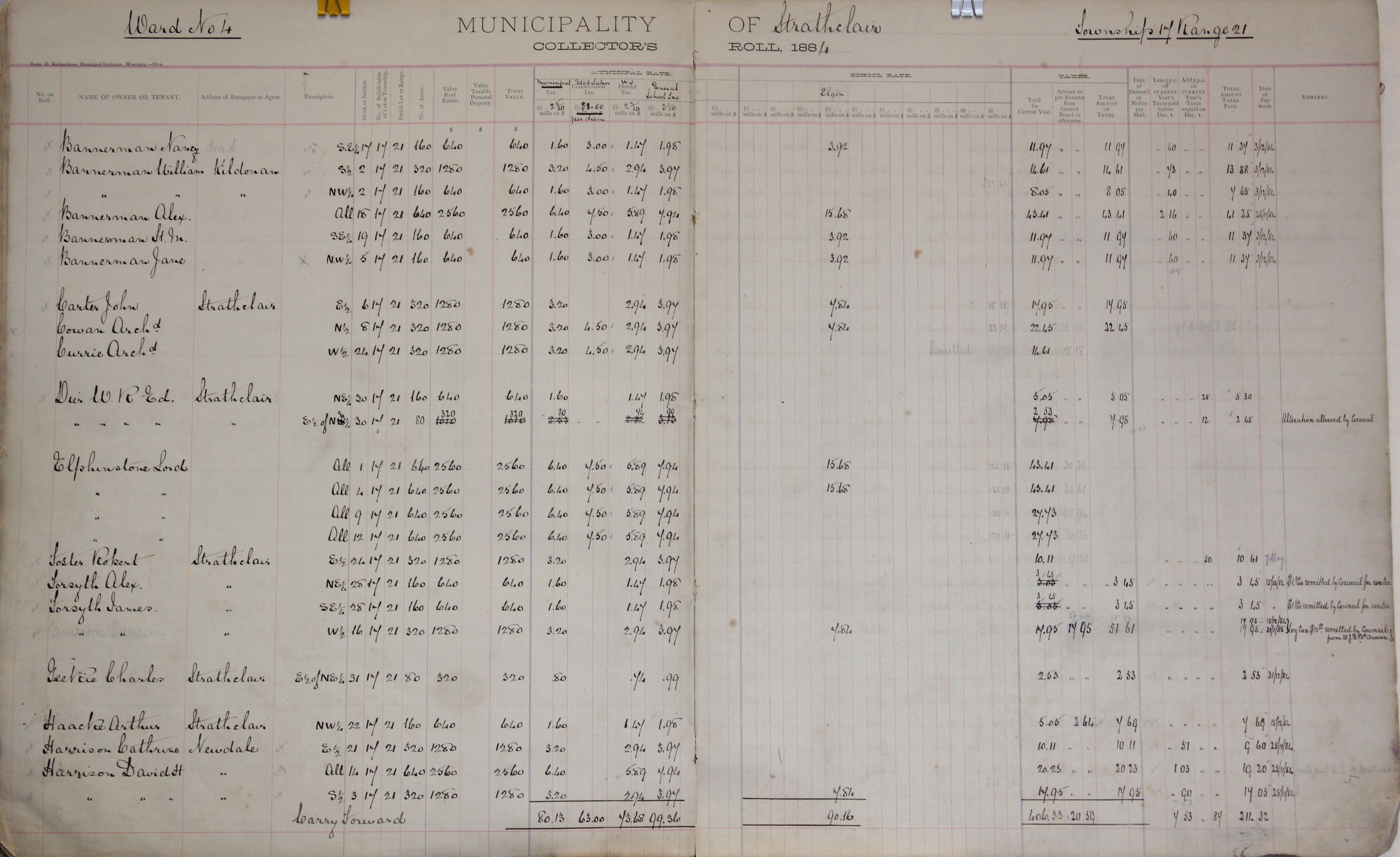 Description Bannerman Nancy SE 17-17-21, Bannerman William S 2-17-21, NW 2-17-21, Bannerman Alex 18-17-21, Bannerman H M SE 19-17-21, Bannerman Jane NW 5-17-21, Carter John E 6-17-21, Cowan Archd N 8-17-21, Currie Archd W 24-17-21, Dire W R Ed E 30-17-21, Lord Elphinstone 1-17-21, 4-17-21, 9-17-21, 12-17-21, Foster Robert E 24-17-21, Forsyth Alex NE 28-17-21, Forsyth James SE 28-17-21, W 16-17-21, Geekie Charles NE 31-17-21, Haacke Arthur NW 22-17-21, Harrison Catherine E 21-17-21, Harrison David H 14-17-21, S 3-17-21