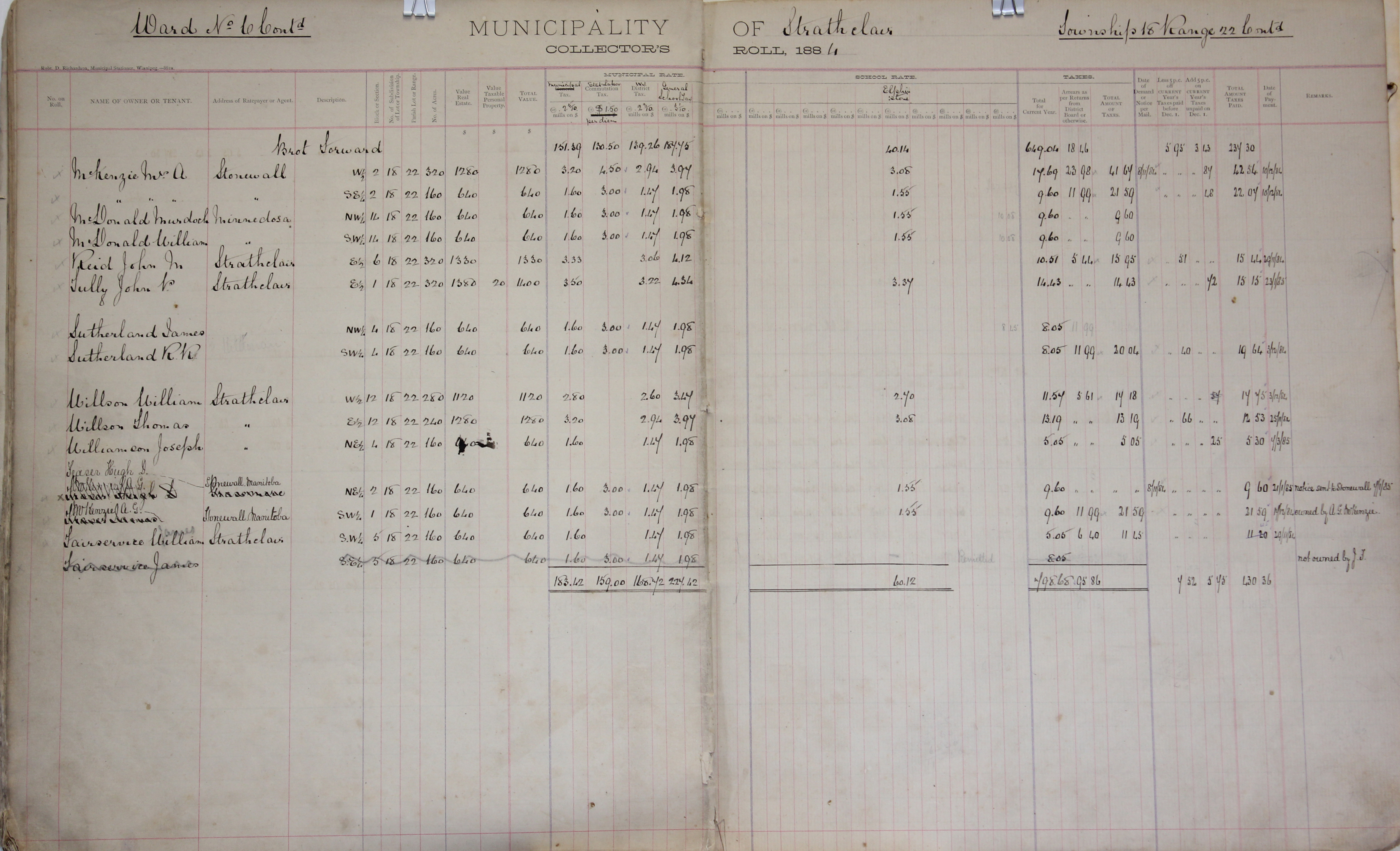 Description McKenzie Mrs. A W 2-18-22, SE 2-18-22, McDonald Murdock NW 14-18-22, McDonald William SW 14-18-22, Reed John M E 6-18-22, Tully John P E 1-18-22, Sutherland James NW 4-18-22, Sutherland R R SW 4-18-22, Willson William W 12-18-22, Willson Thomas E 12-18-22, Williamson Joseph NE 4-18-22, Fraser Hugh D NE 2-18-22, McKenzie J A G SW 1-18-22, Fairservice William SW 5-18-22