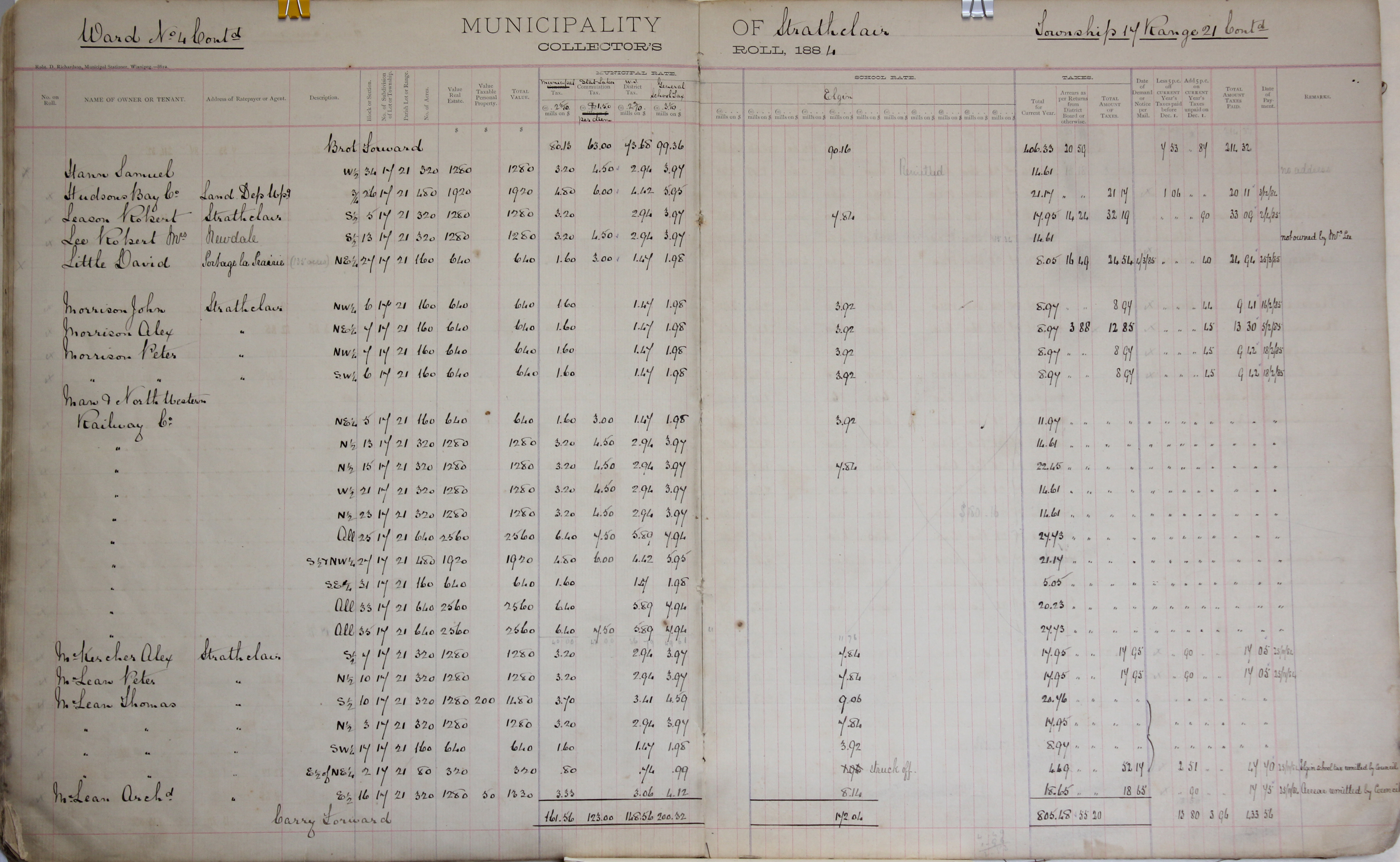 Description Hann Samuel W 34-17-21, Hudson Bay Co. 26-17-21, Leason Robert S 5-17-21, Lee Robert Mrs. S 13-17-21, Little David NE 27-17-21, Morrison John NW 6-17-21, Morrison Alex NE 7-17-21, Morrison Peter - NW 7-17-21, SW 6-17-21, Man. & Northwestern Railway Co. NE 5-17-21, N 13-17-21, N 15-17-21, W 21-17-21, N 23-17-21, 25-17-21, S 27-17-21, NW 27-17-21, SE 31-17-21, 33-17-21, 35-17-21, McKercher Alex S 7-17-21, McLean Peter - N 10-17-21, McLean Thomas S 10-13-21, N 3-17-21, SW 17-17-21, E 2-17-21, NE 2-17-21, McLean Archd E 16-17-21