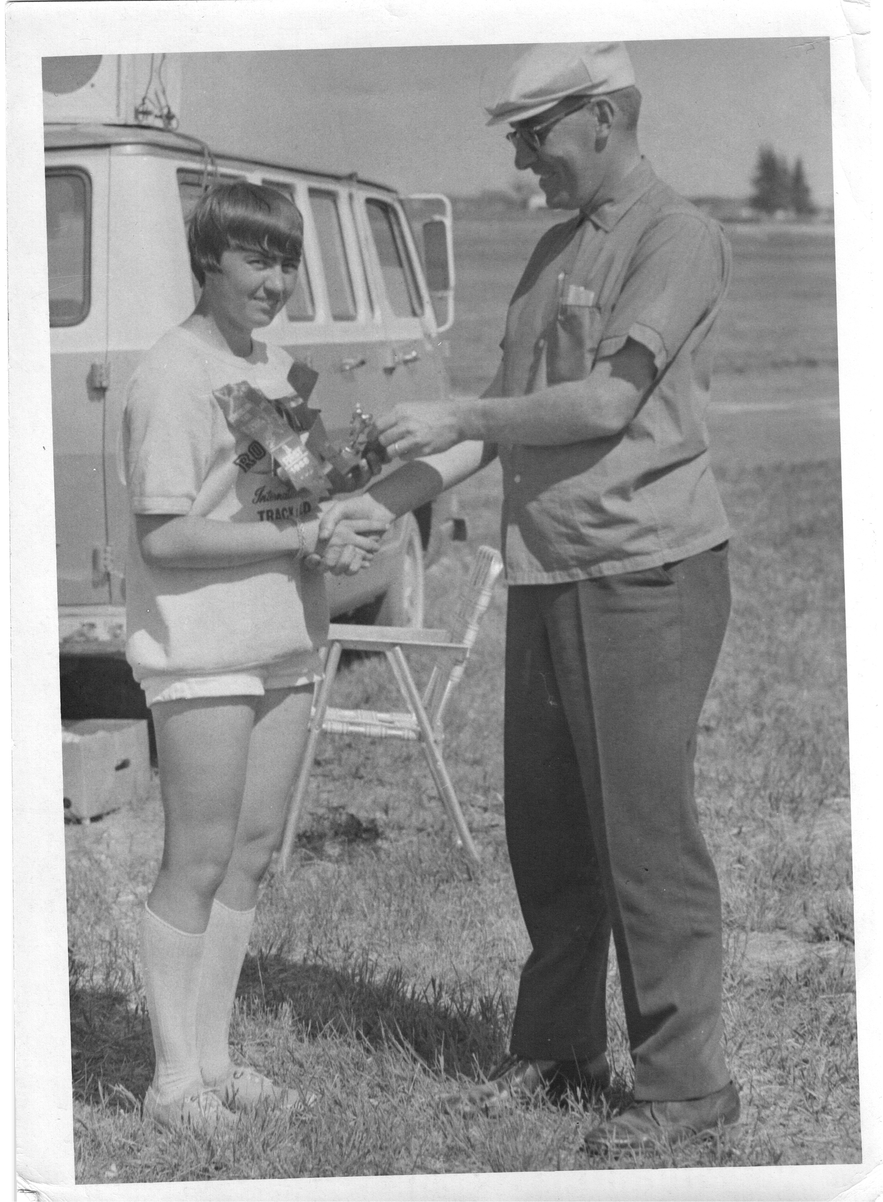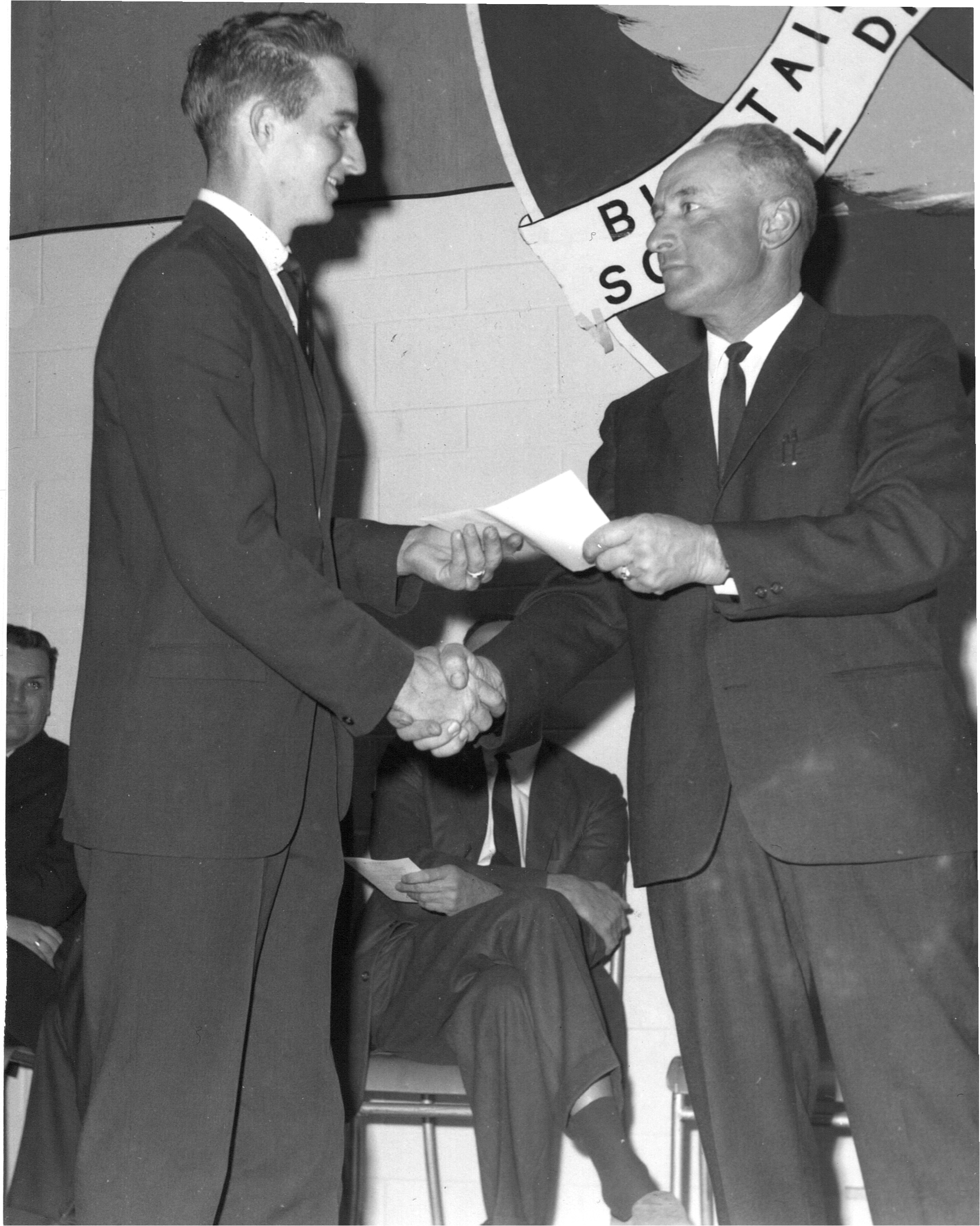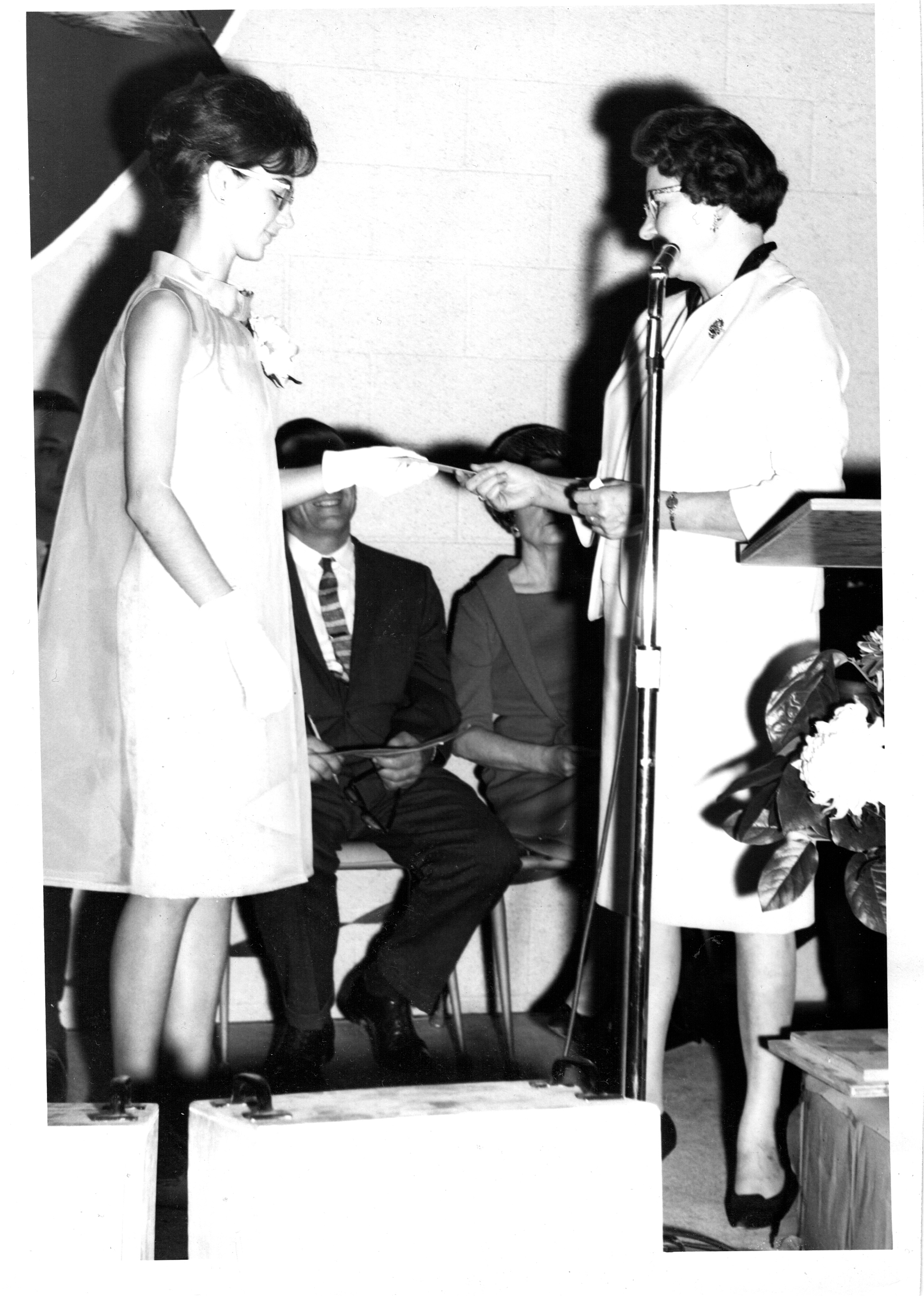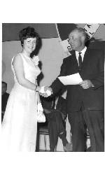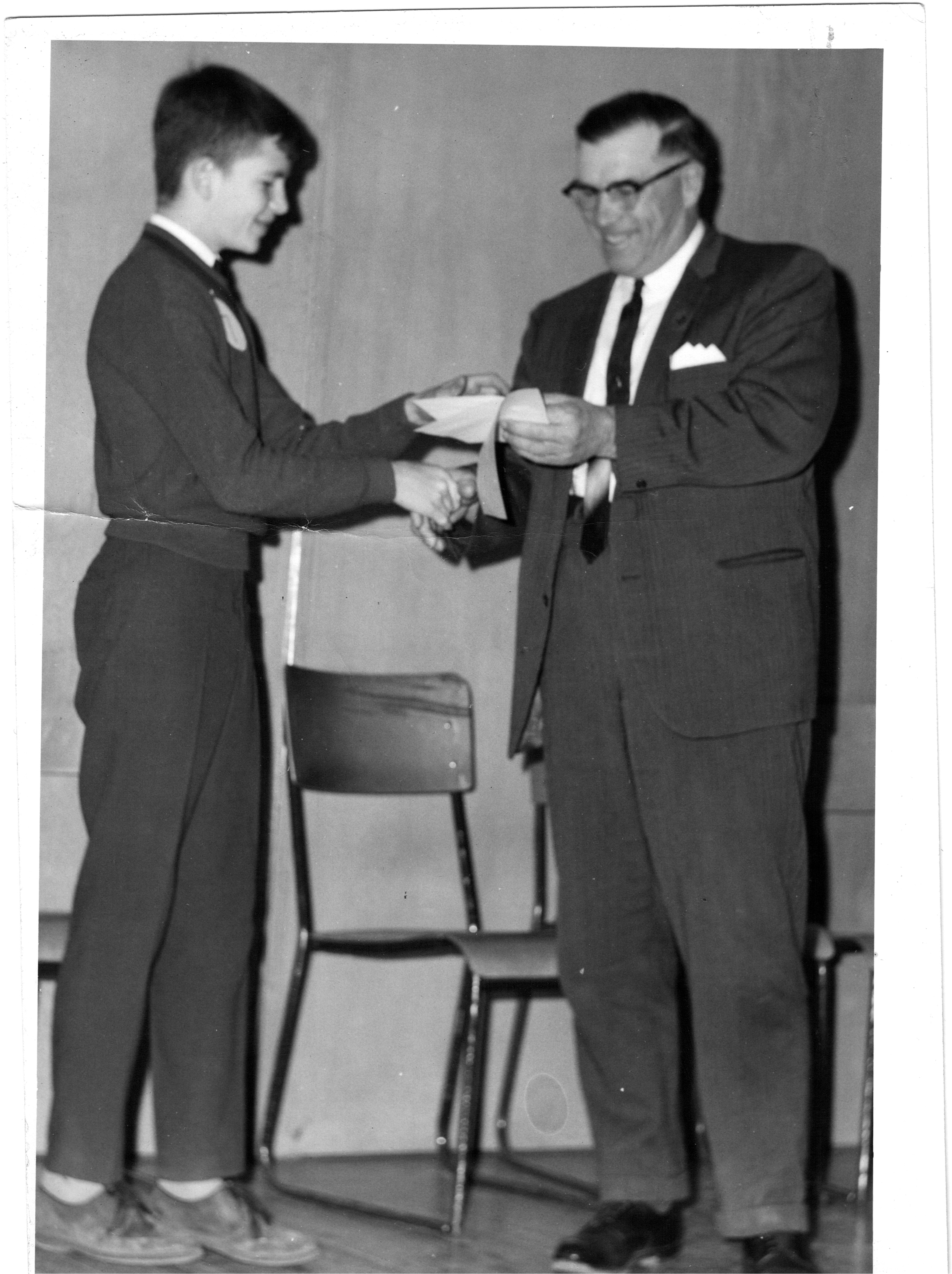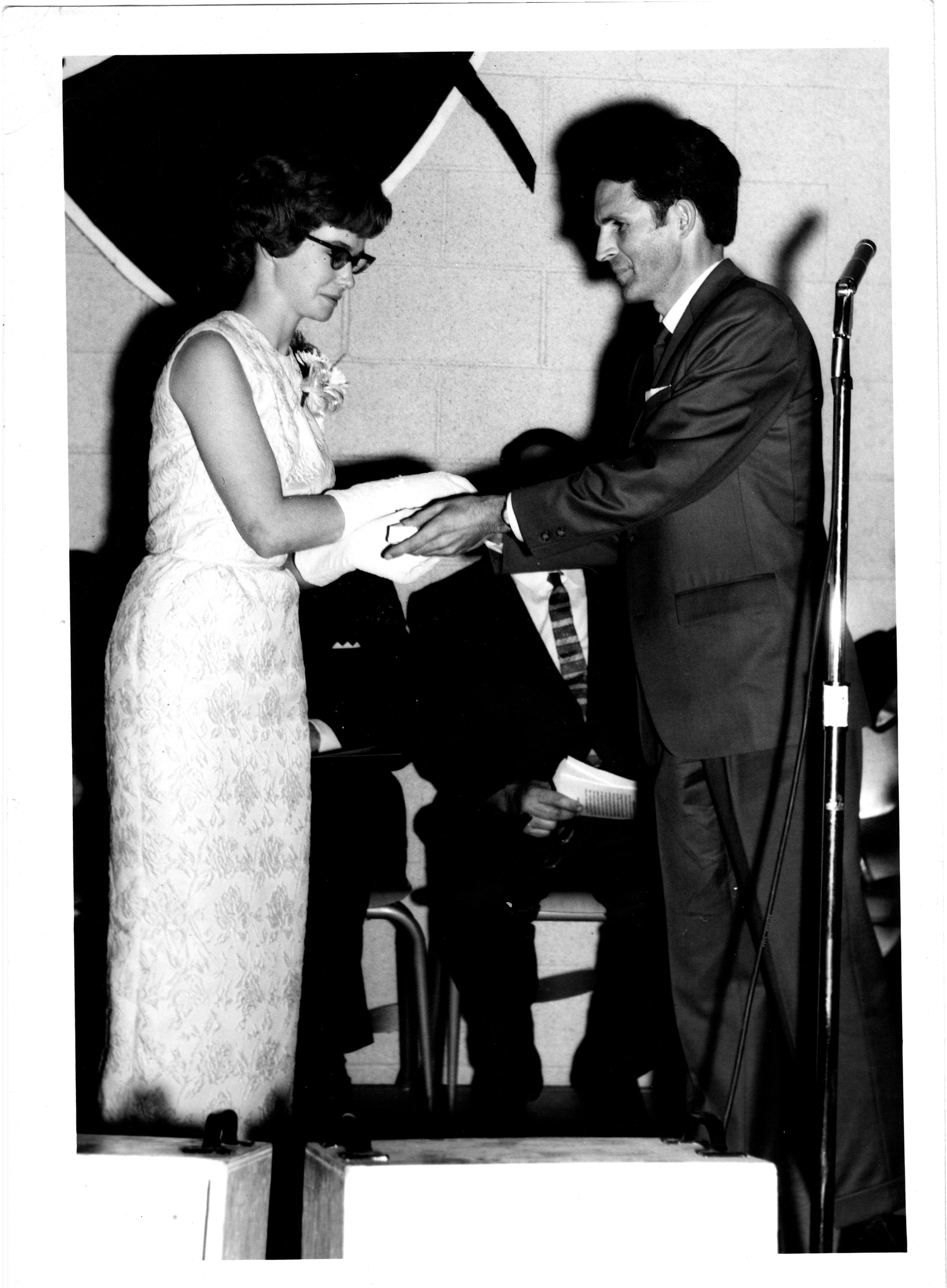 Description June 1966, Lindy Lee recieving the Grade Ten Highest Average Award presented by John Dmytar.