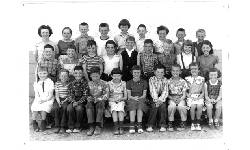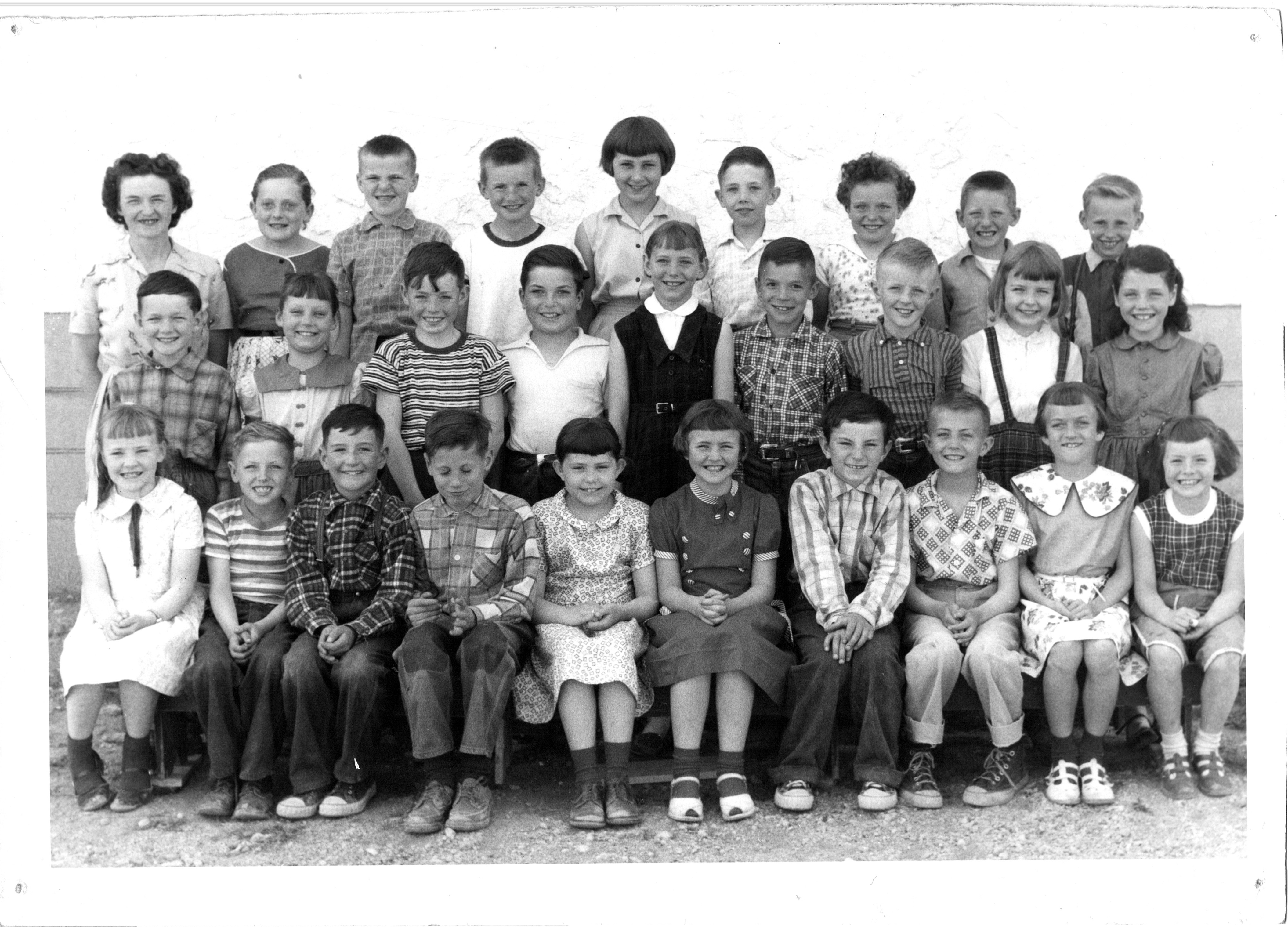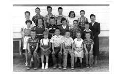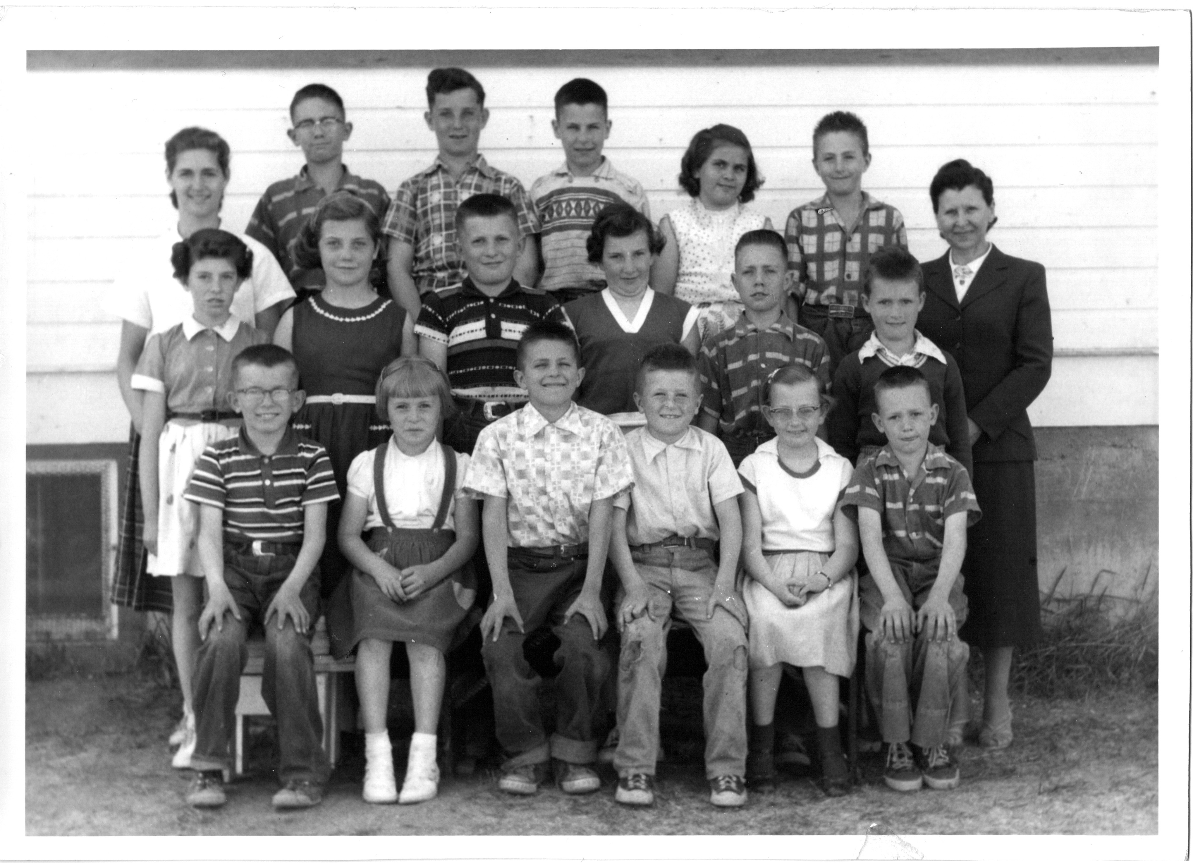 Description Green Bluff School Class - Back Row (L to R) : Bev. Anderson, Clarence McDonald, Jim Glenn, Brad McDonald, Marlene Dereniwski, Fred McDonald, Mary McDonald. 2nd Row : Theresa Cummins, Jean Genn, Bill Dereniwski, Sharon Roberts, Ernie McDonald, Jerry Bryce, Front Row : Mervyn Dereniwski, Frances Dereniwski, ? Bob McDonald, Judy Roberts, Gordie McDonald.