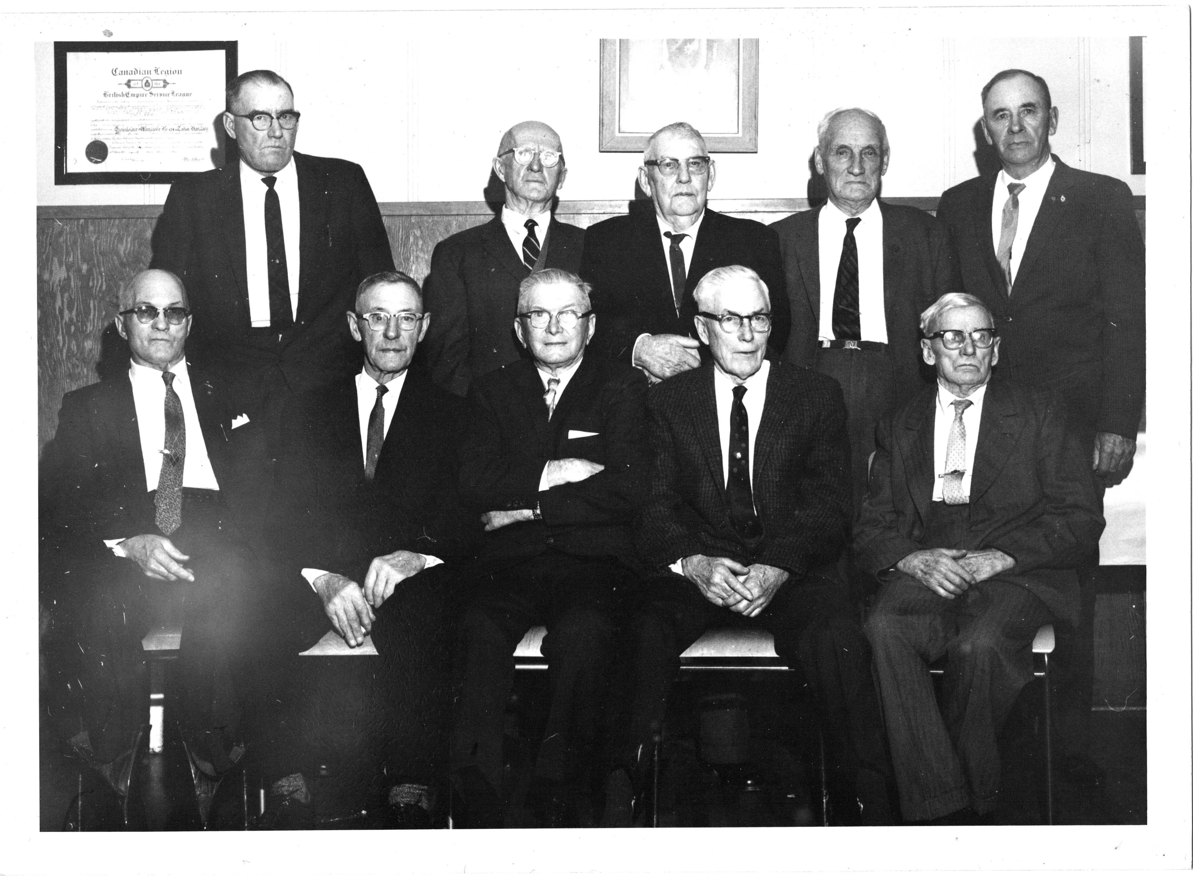 Description Honor Night for former StrathclairTrustees. Back Row - Ken Rapley, Mar Black, Joe McCutcheon, G.V. Henderson, Alf Somers. Front Row - Ed Currah, George Harvey, Fred Mackie, Cam Robertson, Sam Sinclair.