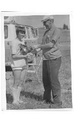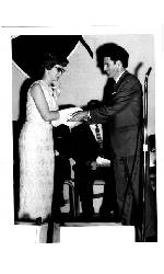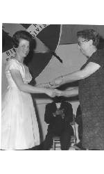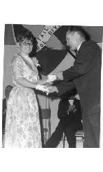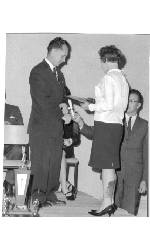 Description Sheryl Wyton accepting presention from E.G. Morris. Extreme right background - Doyle Holtzman