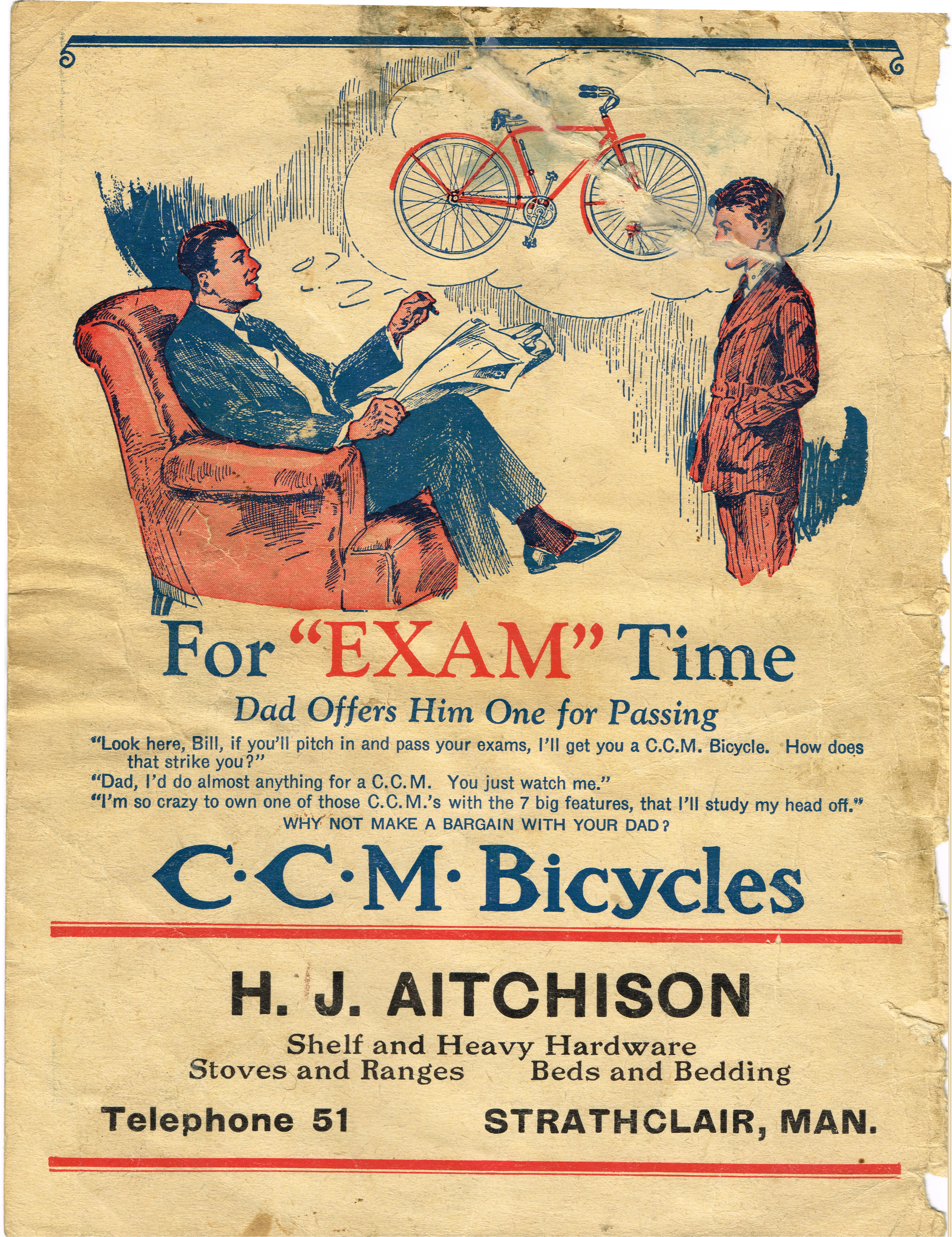 Object Desc Advertisement for CCM skates and bicycles. Donated by H.G. Aitchison, hardware store in Strathclair.