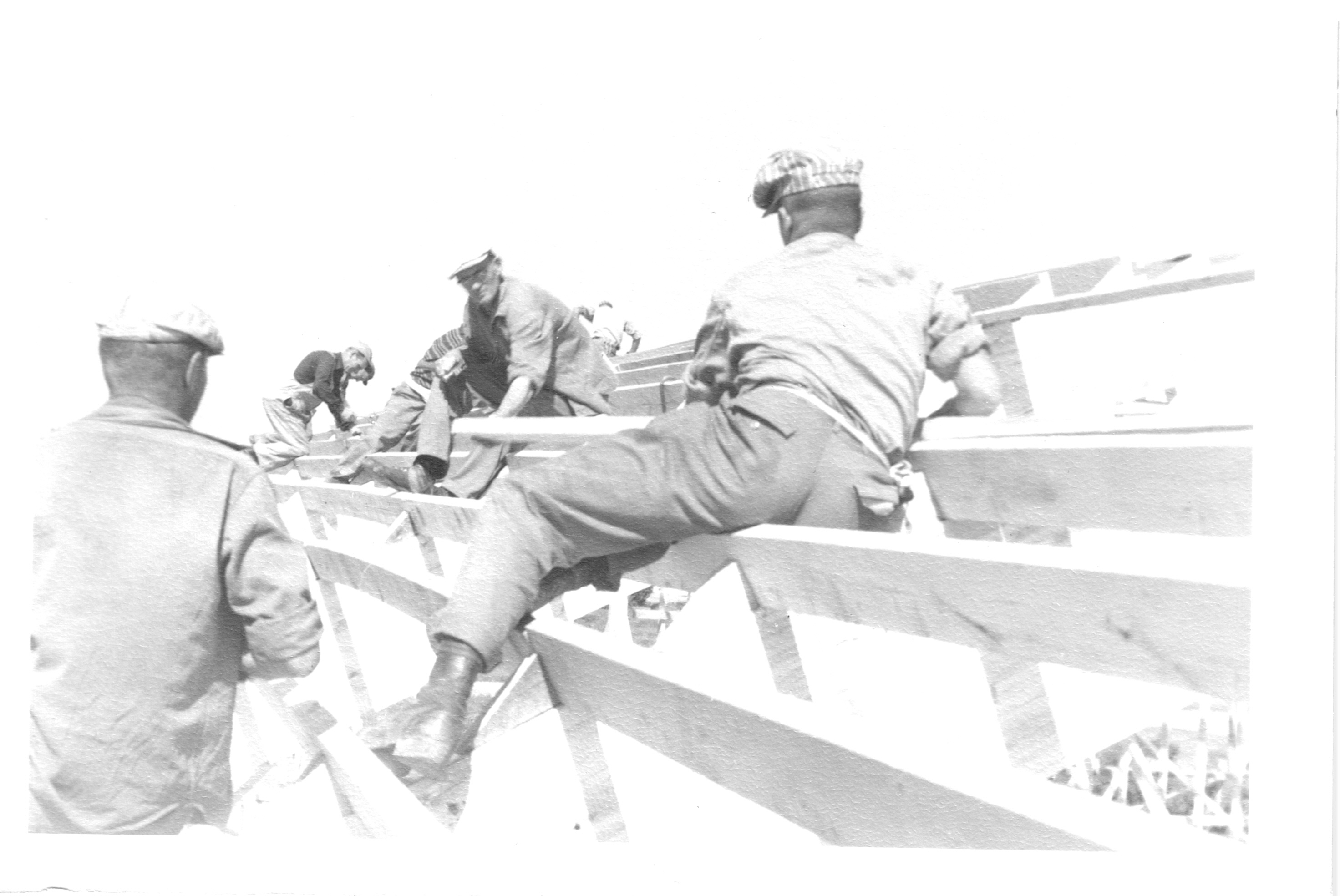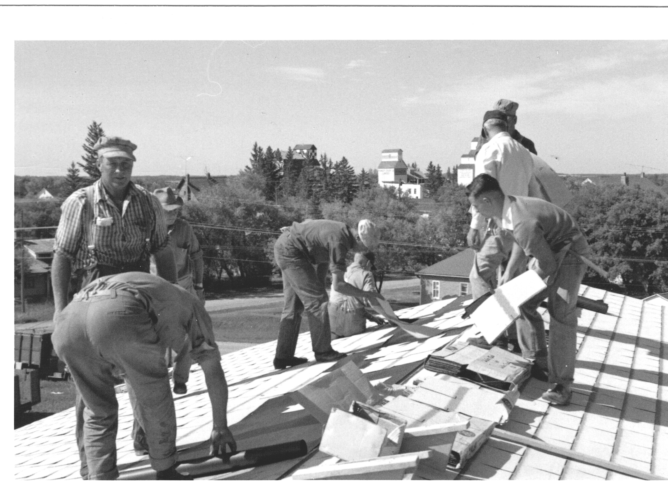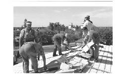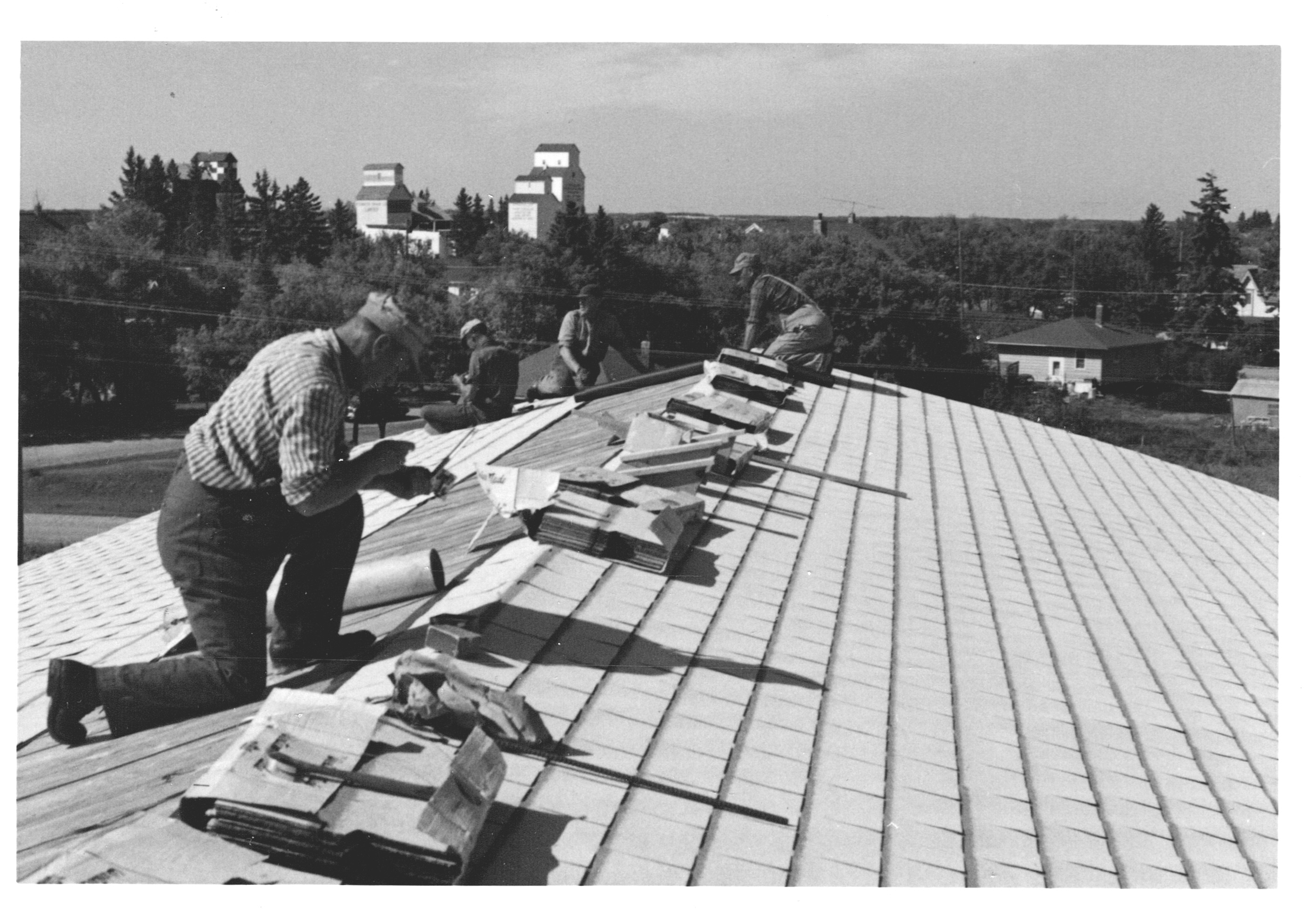 Description Shingling roof of arena. Bandstanf on the right