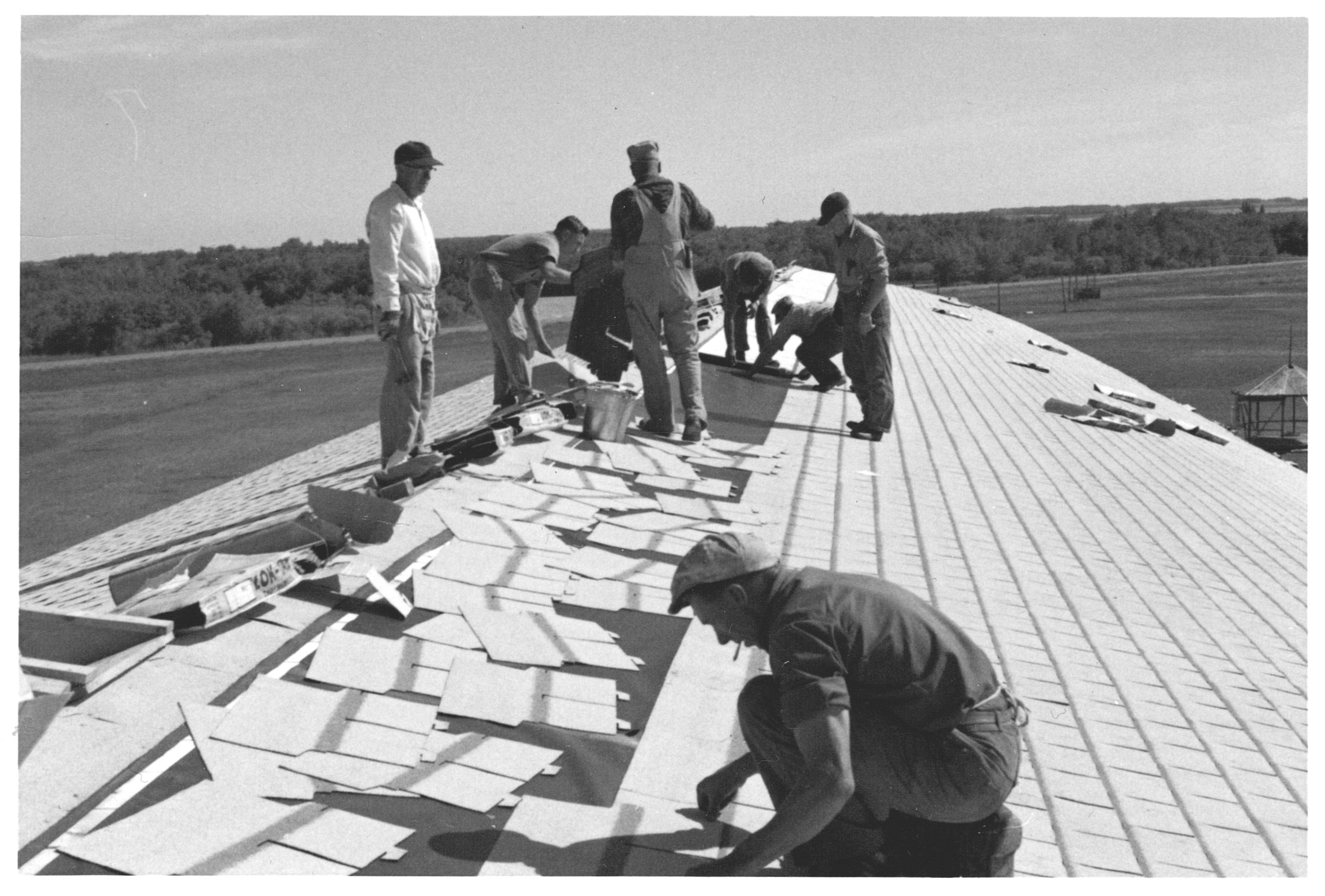 Image Caption Shingling arena roof