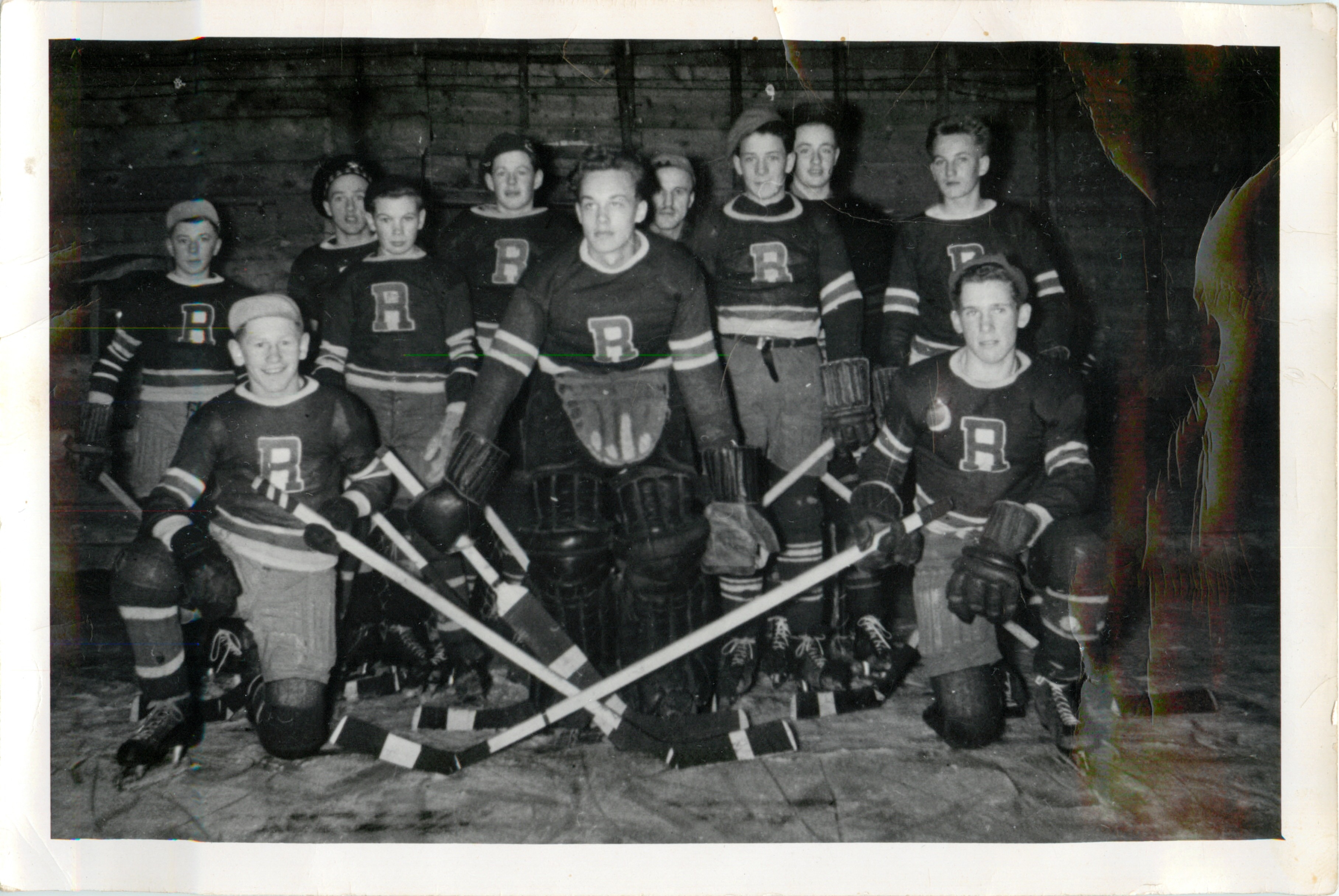 Description 1949 Provincial Midget 3rd finalists. Back row - Earl Millman, Bill Watson, Blackhurst, (Jeivelber Coach), Jim Burnell, Middle row - Harry Kulchyaki, Jim Taylor, Edwin (Toad) Watson, Bob Cochrane. Front Row - Alec Kulchycki & Tom
