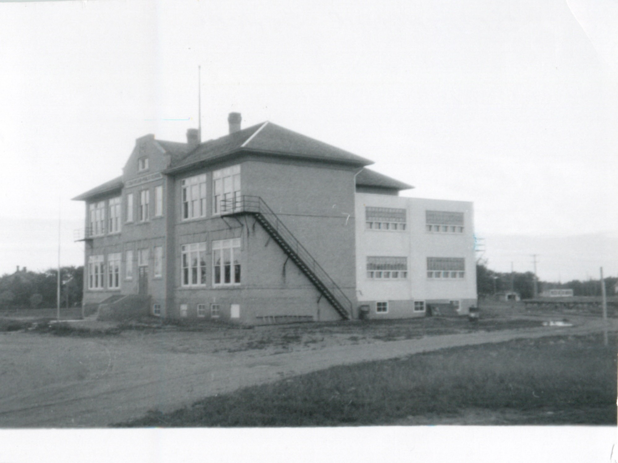 Description Strathclair School built around 1915. This view is from main street looking north west. Unknown photo date.