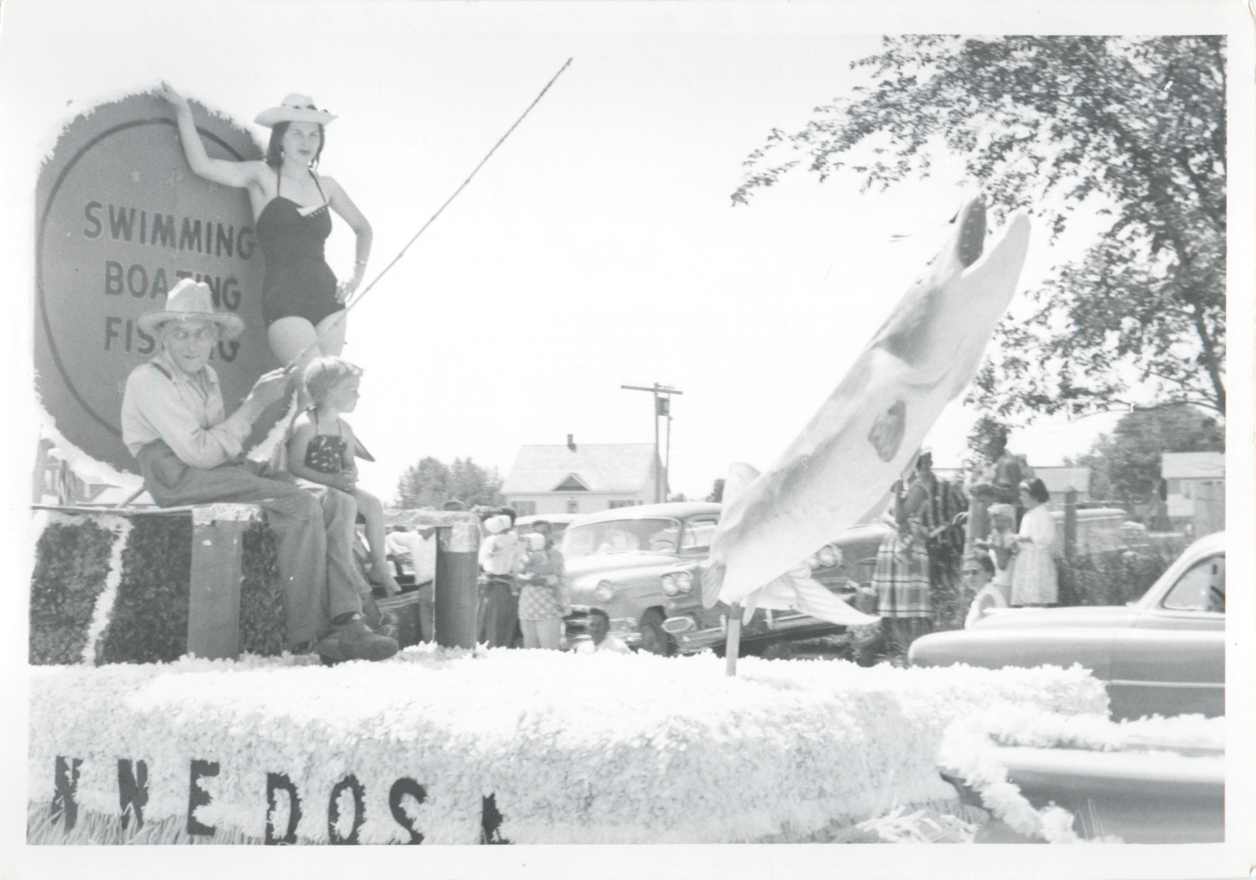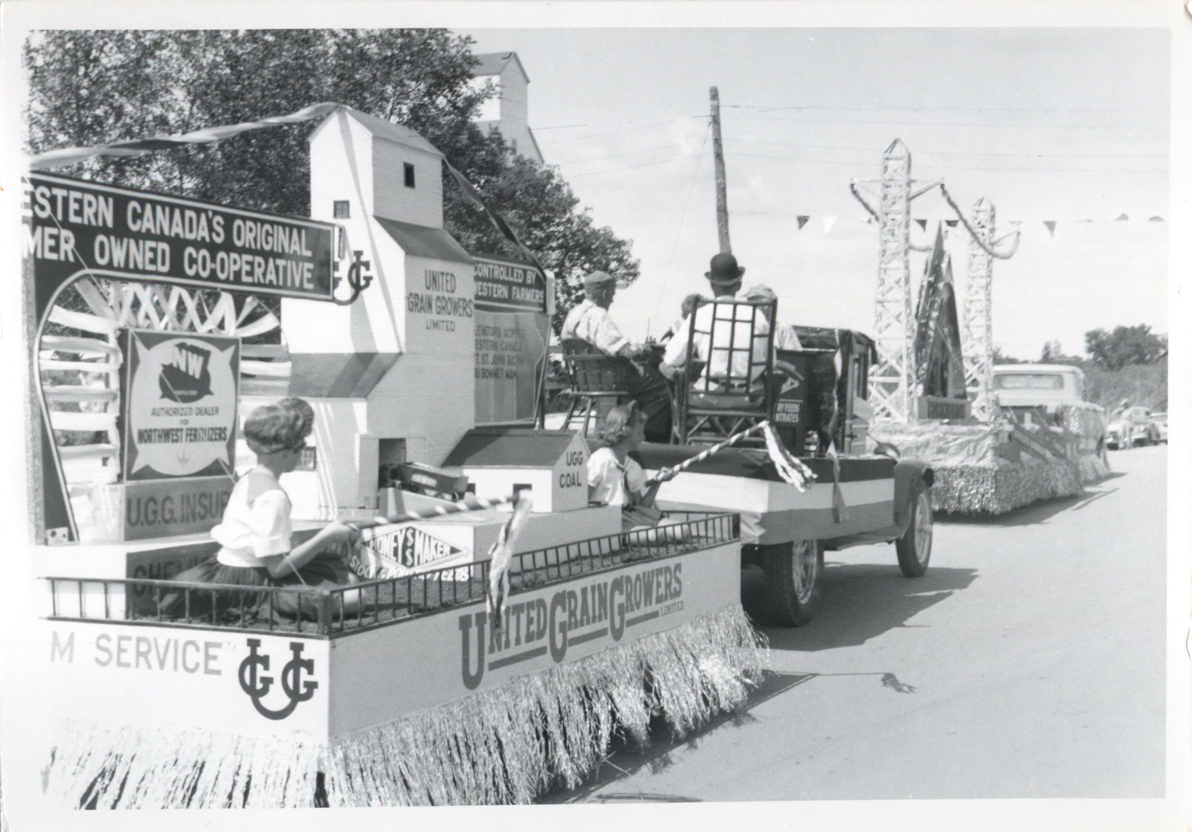 Description Town of Minnedosa Float in Strathclair Fair parade. July 15, 1959.