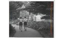 Description Dr. McKenzie's Garden. View from the top of the rink north west. Dr. McKenzie was a family doctor in Strathclair for many years. His Garden was know as one of the best.