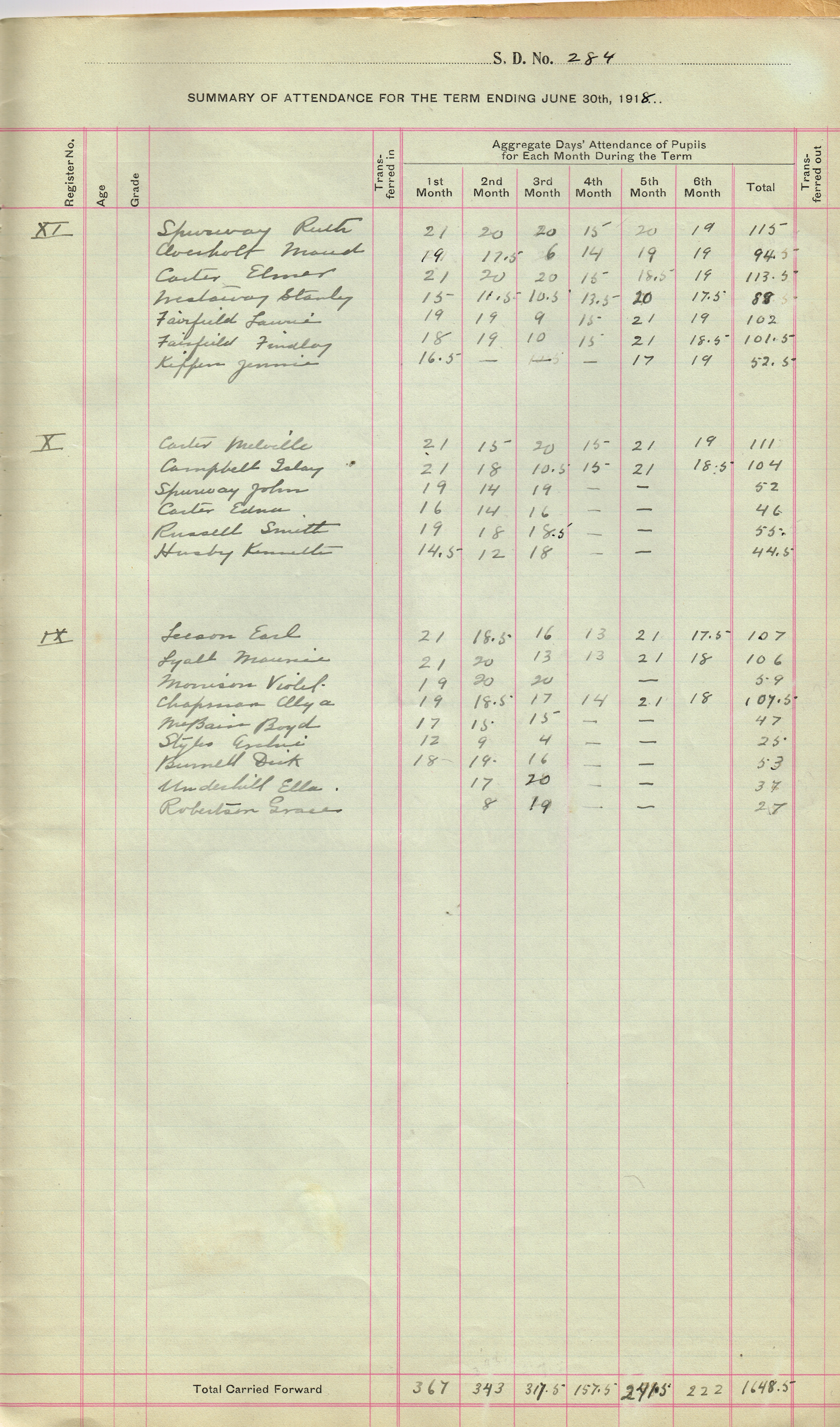 Description H.C. Fairfield (Teacher), Ruth Spurway (G. 11), Maud Overholt (G. 11), Elmer Carter (G. 11), Stanley Westaway (G. 11), Laurie Fairfield (G. 11), Findlay (Finlay) Fairfield (G. 11), Jennie Kippen (G. 11), Melville Carter (G. 10), Islay Campbell (G. 10), John Spurway (G. 10), Edna Carter (G. 10), Smith Russell (G. 10), Kenneth Haxby (G. 10), Earl Leeson (G. 9), Maurice Lyall (G. 9), Violet Morrison (G. 9), Olga Chapman (G. 9), Boyd McBain (G. 9), Archie Styles (G. 9), Dick Burnell (G. 9), Ella Underhill (G. 9), Grace Robertson (G. 9)