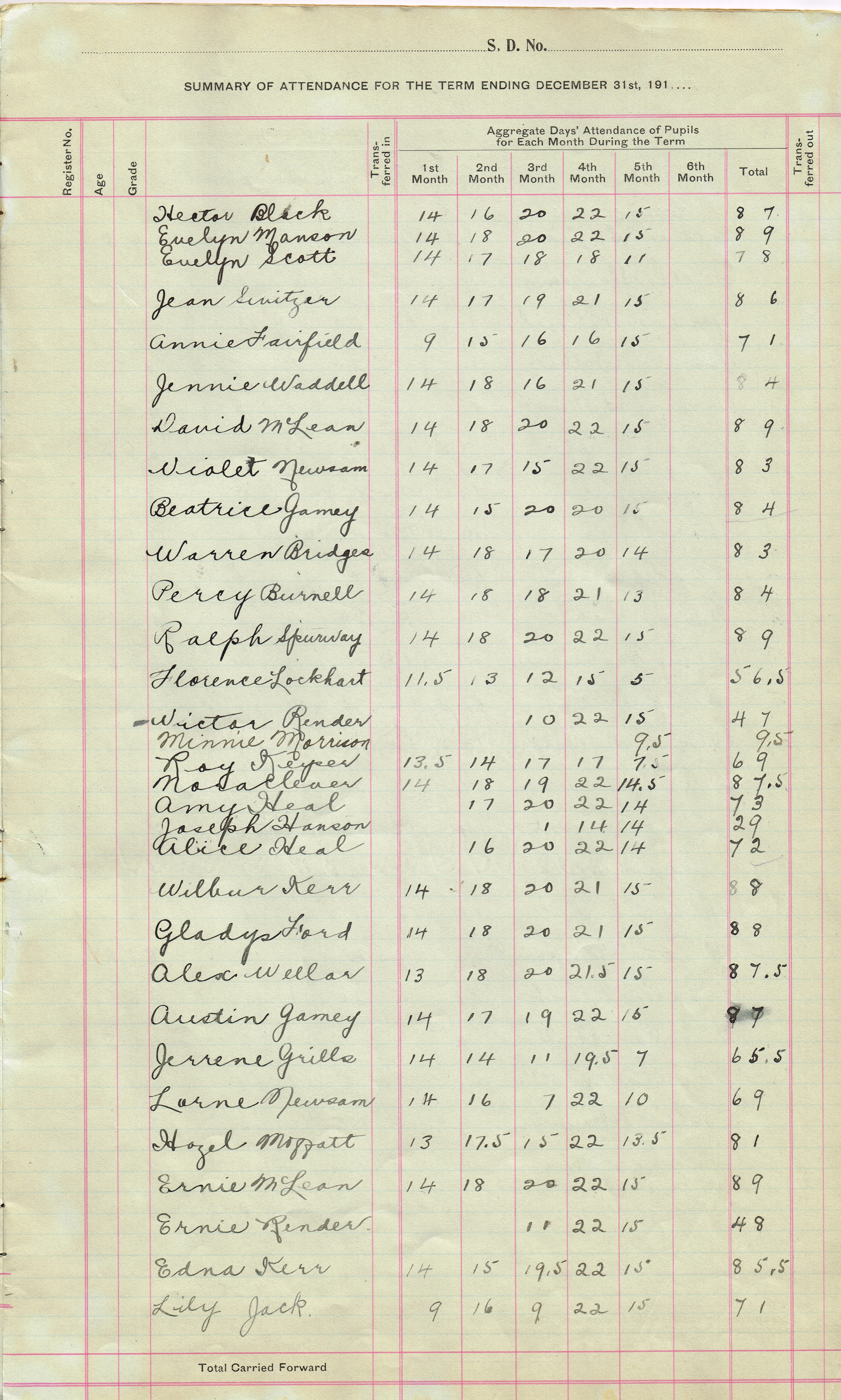Description B.M. McBean (Teacher), Hector Black (G.2), Evelyn Manson (G.2) Evelyn Scott (G.2), Jean Switzer (G.2), Annie Fairfield (G.2), Jennie Waddell (G.2), David McLean (G.2), Violet Newsam (G.2), Beatrice Gamey (G.2), Warren Bridges (G.2), Percy Burnell (G.2), Ralph Spurway (G.2), Florence Lockhart (G.2), Victor Render (G.2), Minnie Morrison (G.2), Roy Keyser (G.2), Nora Clever (G.2), Amy Heal (G.2), Joseph Hanson (G.2), Wilbur Kerr (G.1), Alice Heal (G.1) , Gladys Ford (G.1), Alex Wellar (G.2), Austin Gamey(G.1), Gemine Grills (G.1), Lorne Newsam (G.1), Ernie Render (G.1), Edna Kerr (G.1), Lily Jack (G.1)