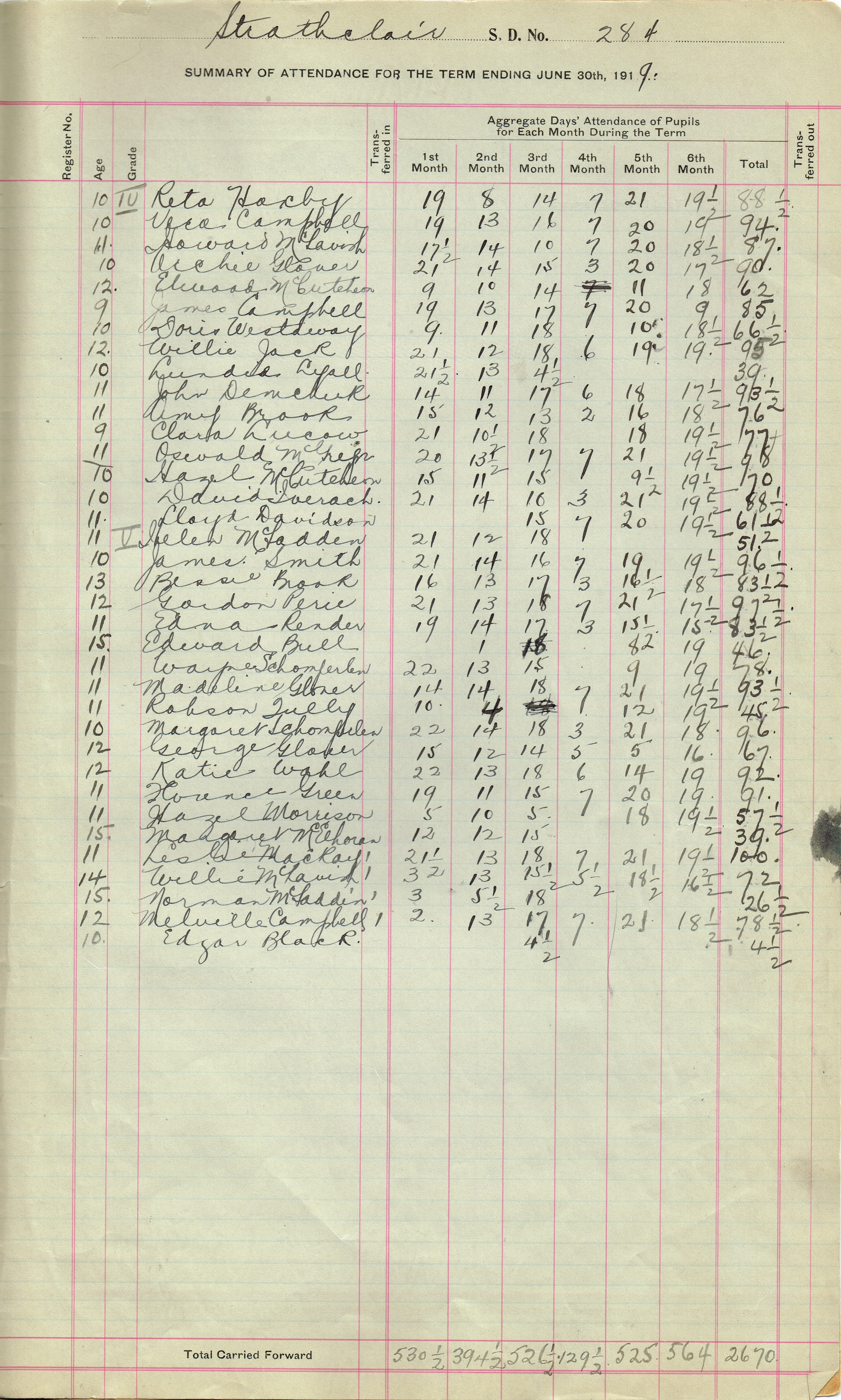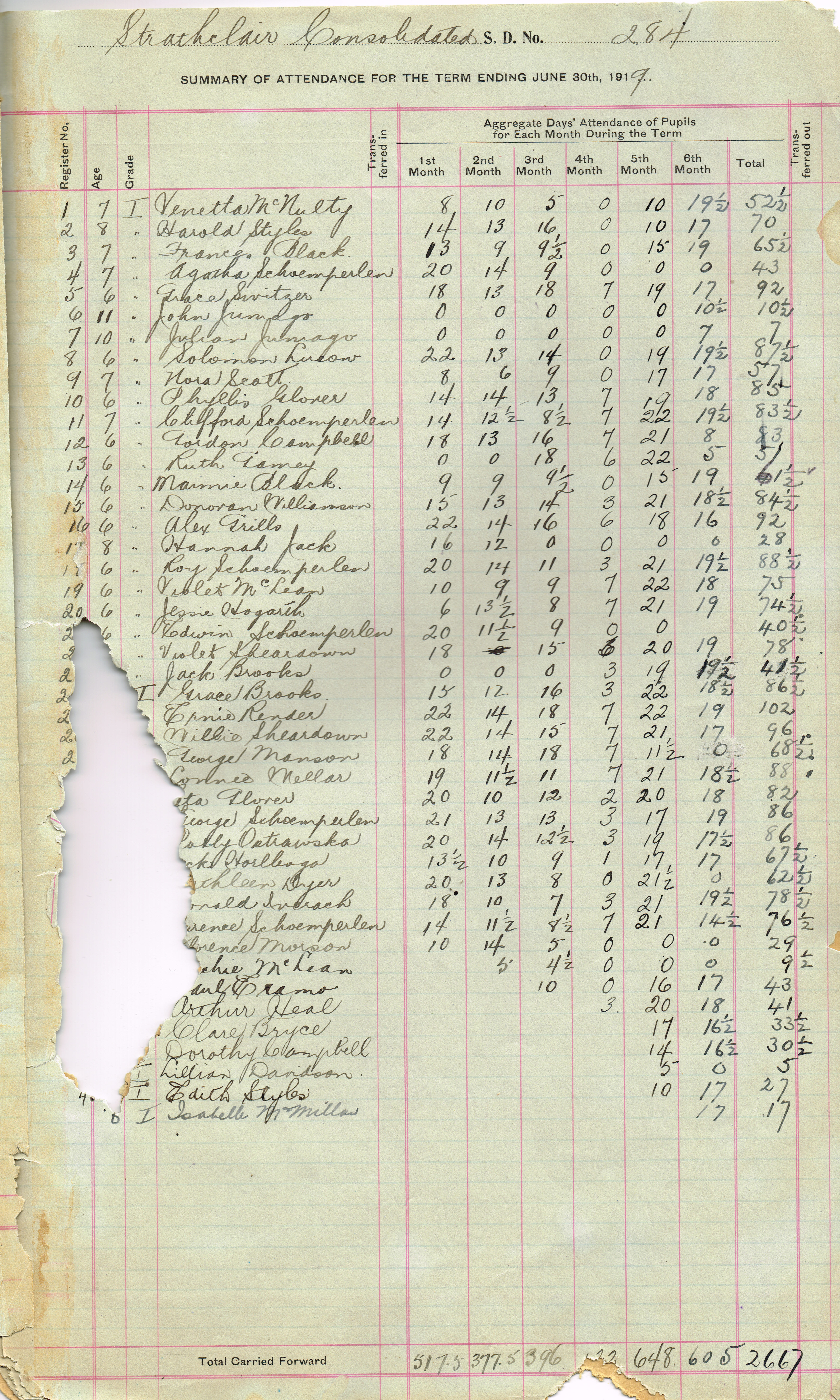 Object Name Strathclair Consol. Sch. #284, 1918-19