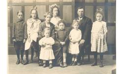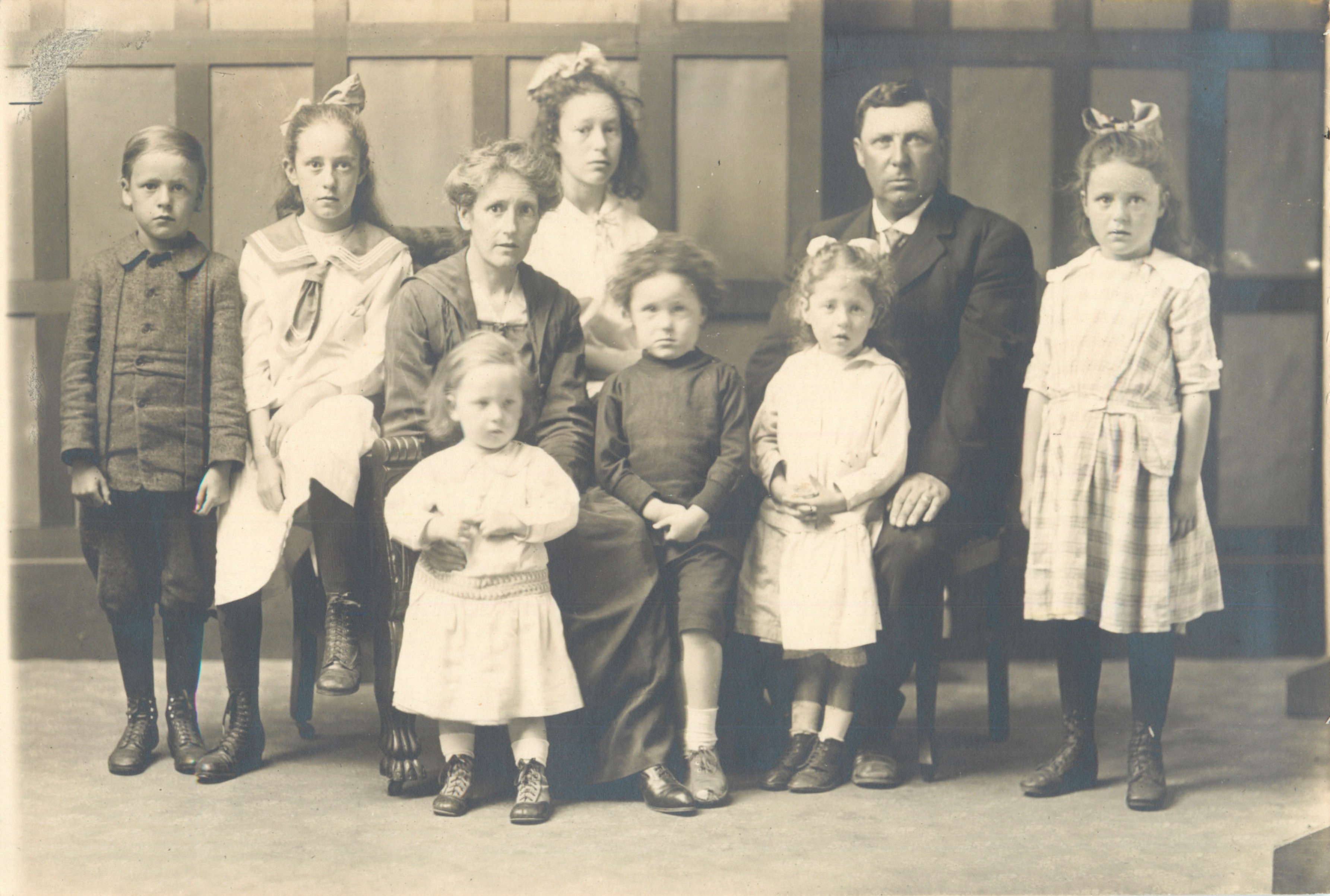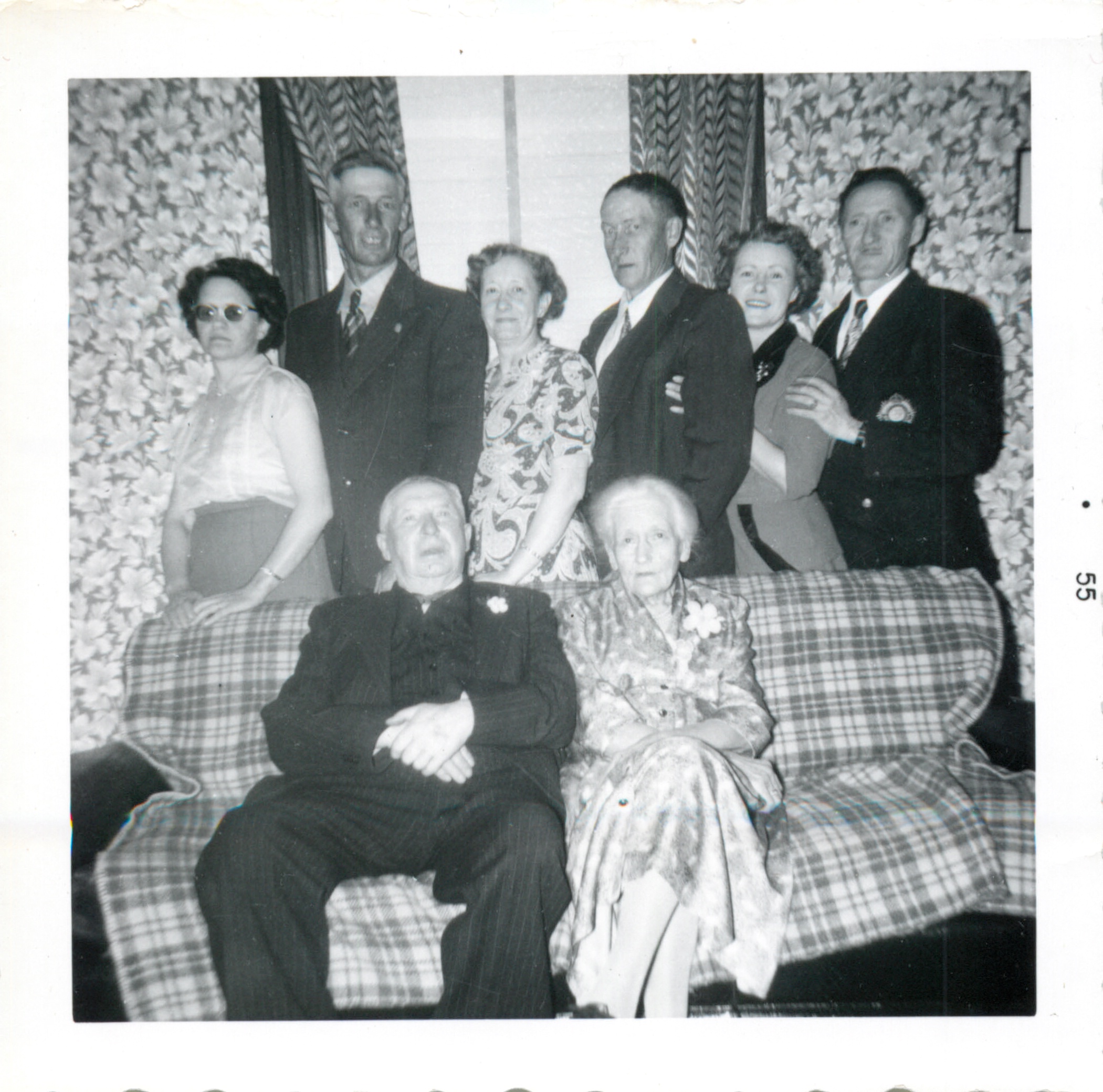 Description 50th Wedding Anniversary of Mr & Mrs James Brook. Back Row" Edith, Jack, Amy, Ramsey, Grace and Jim. Mr & Mrs Brook in front.