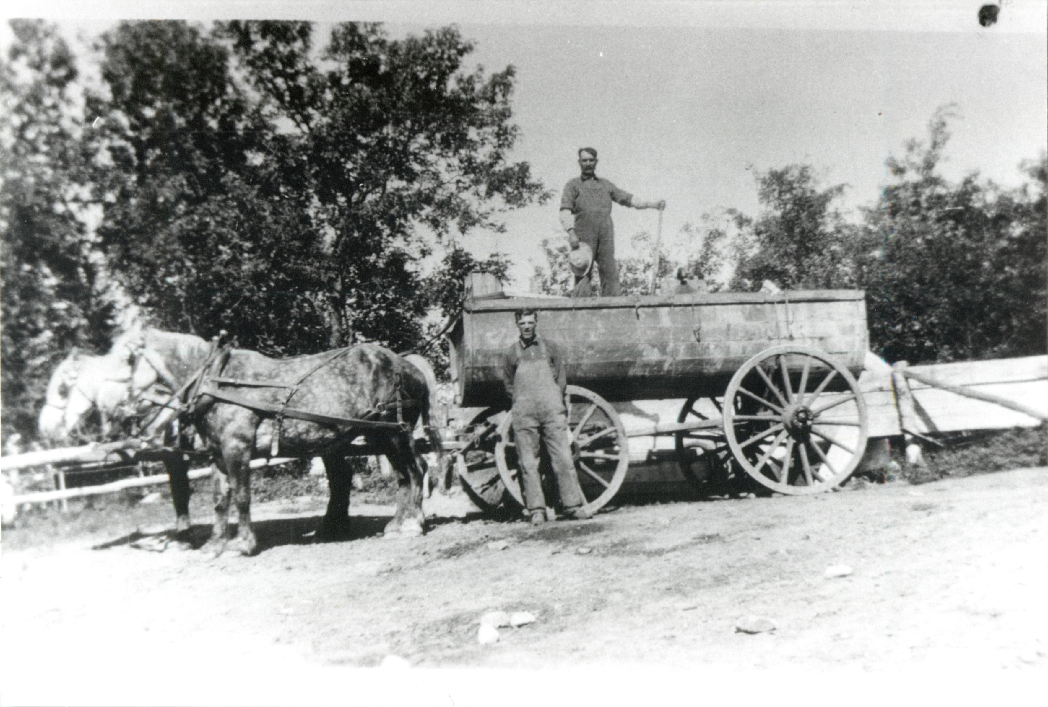 Description Building # 4 highway which is now # 16. This is a water tank wagon that hauled water from a well on 34-16-22 for 100 horses and 90 men.