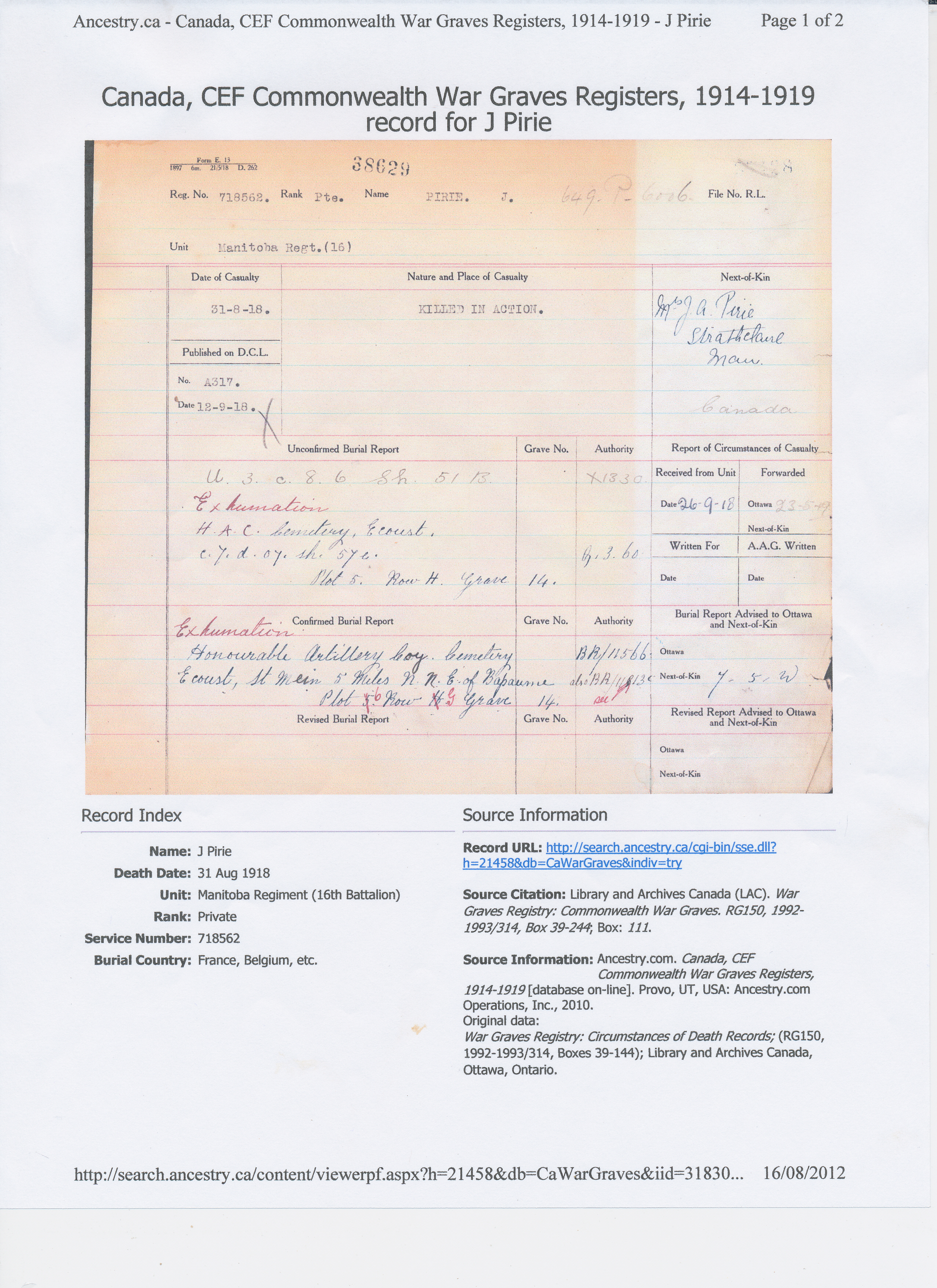 Object Desc Medal given to the family of a fallen soldier. RE: John Pirie. Pte # 713552