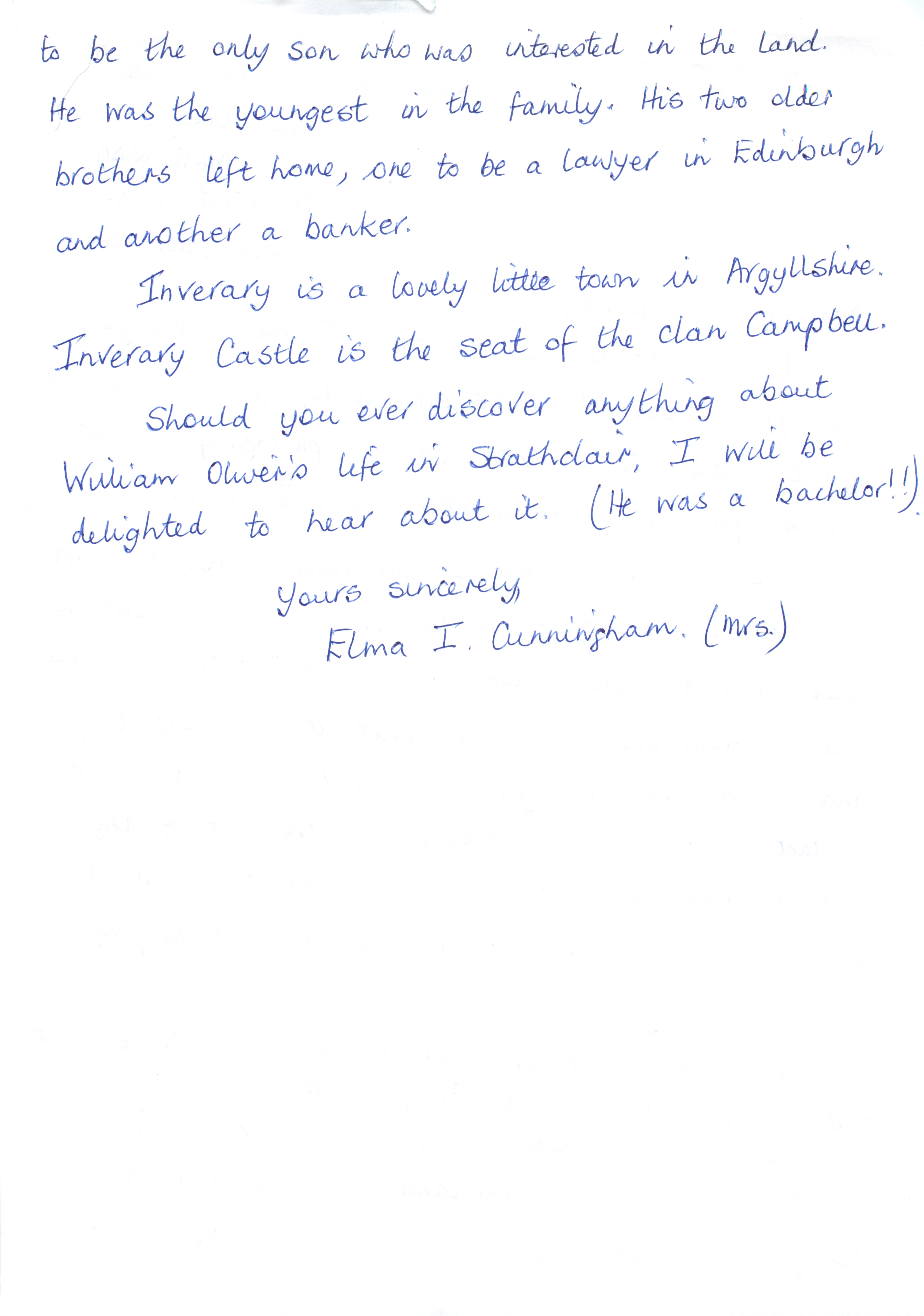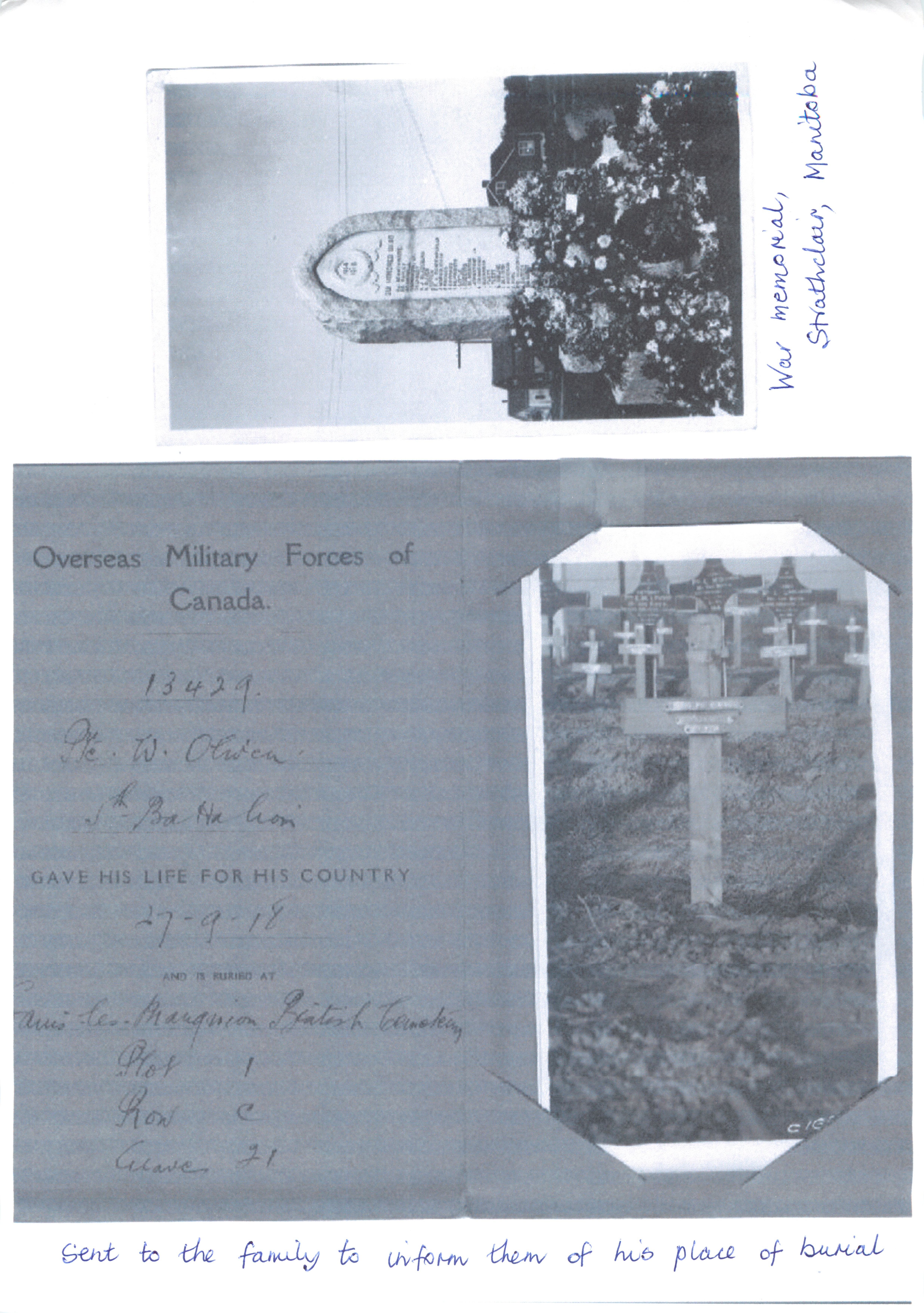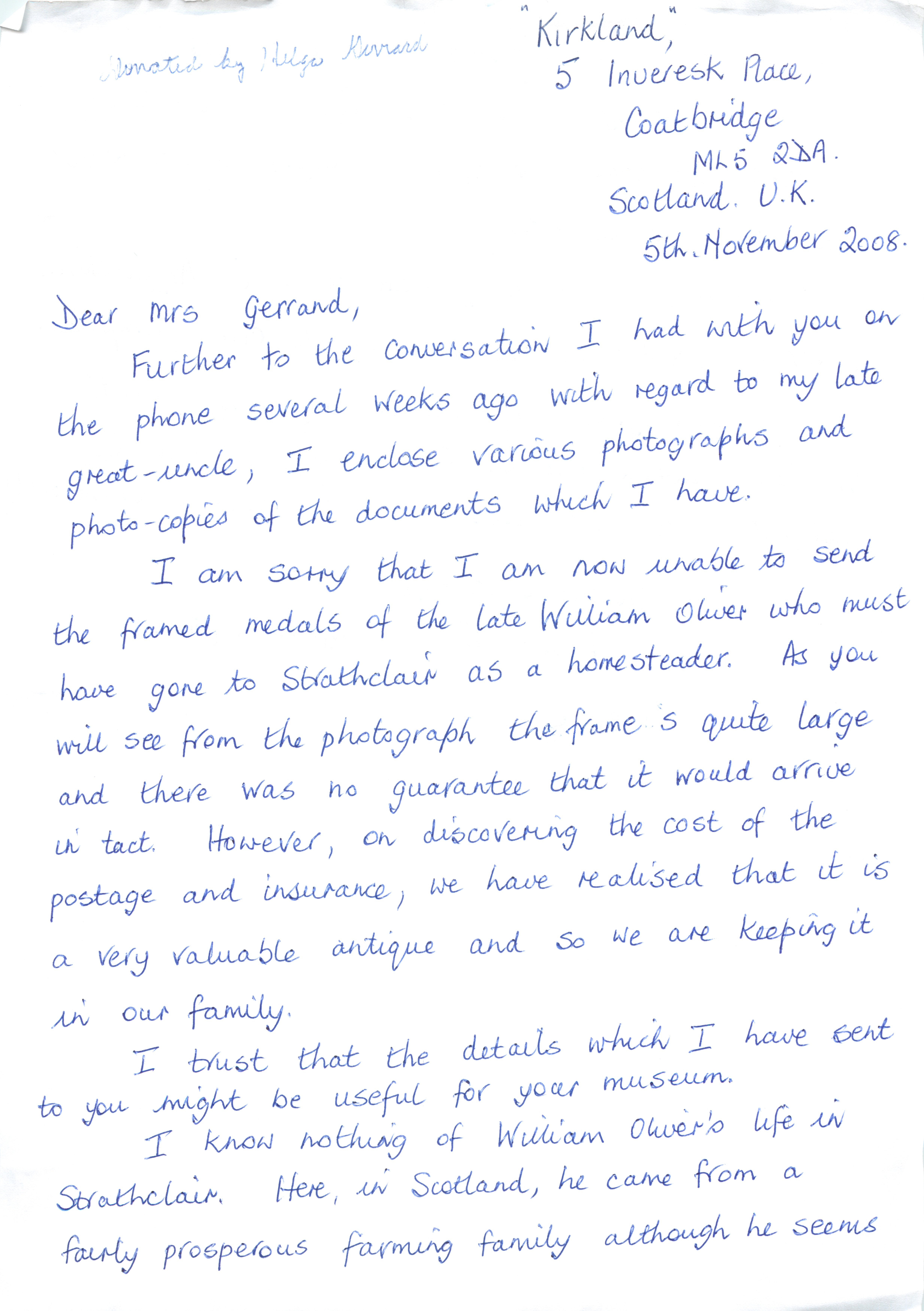 Object Desc A collection of documents provided through the communication of William Oliver's family in Scotland and Helga Gerrard's research in Strathclair.