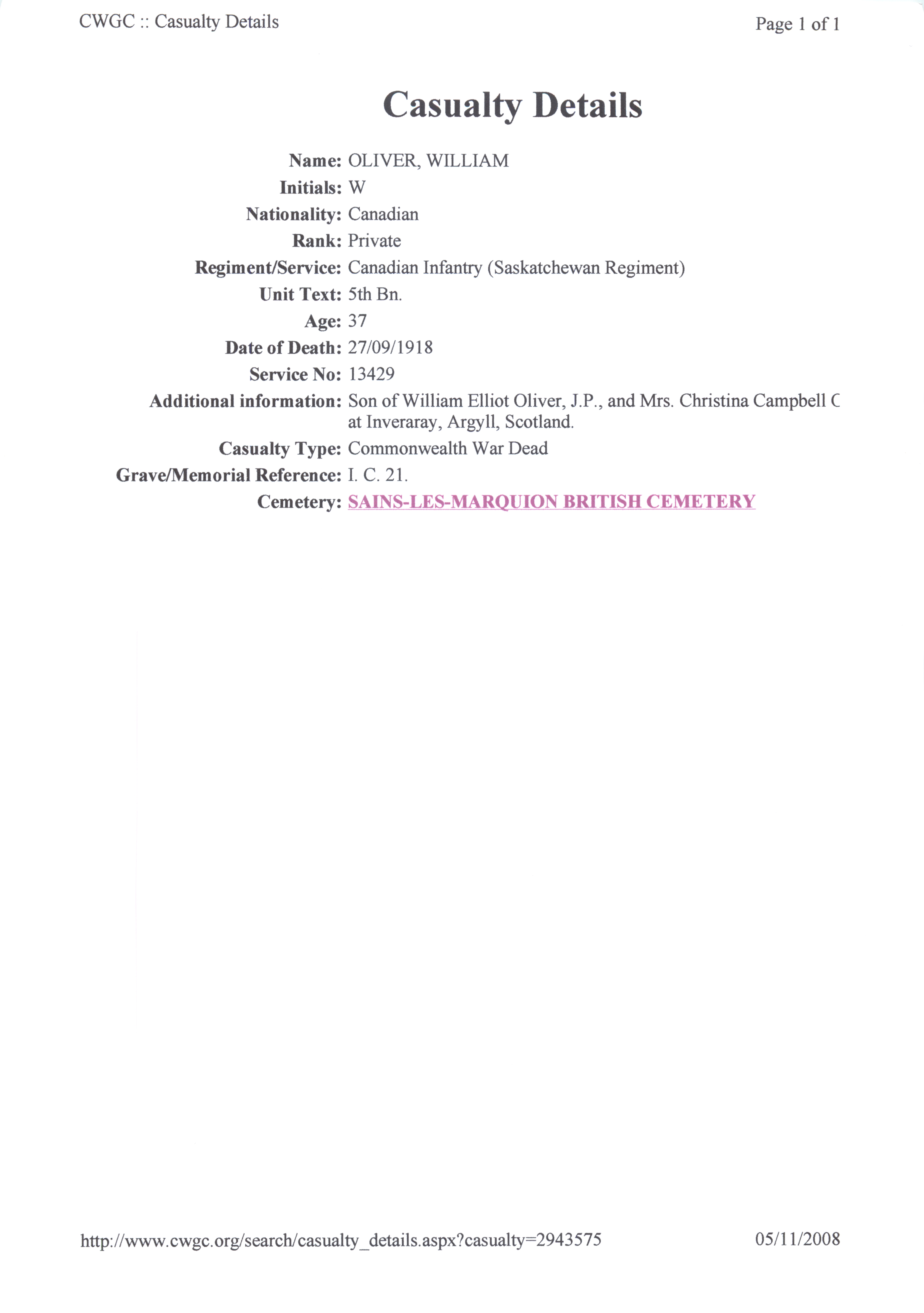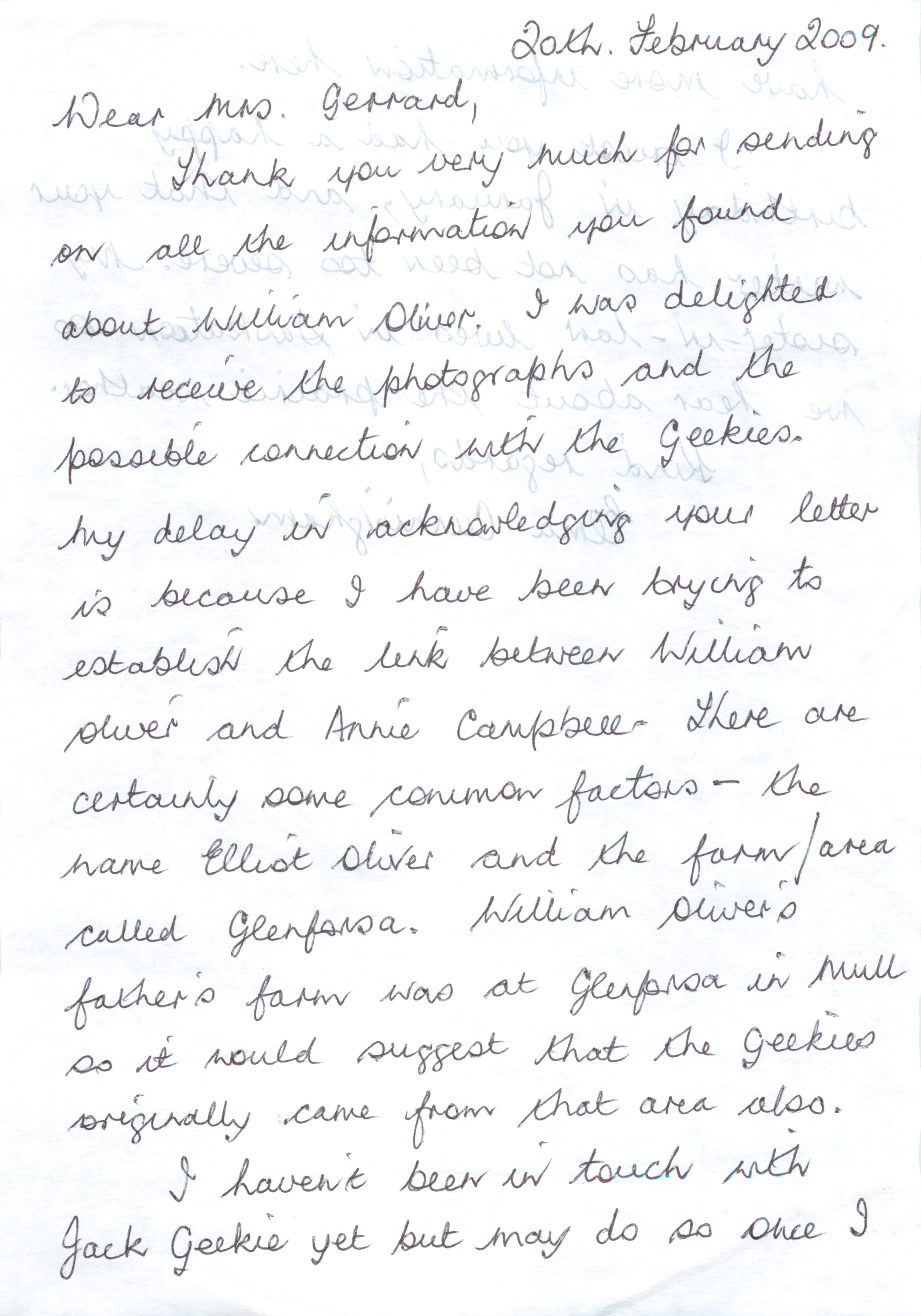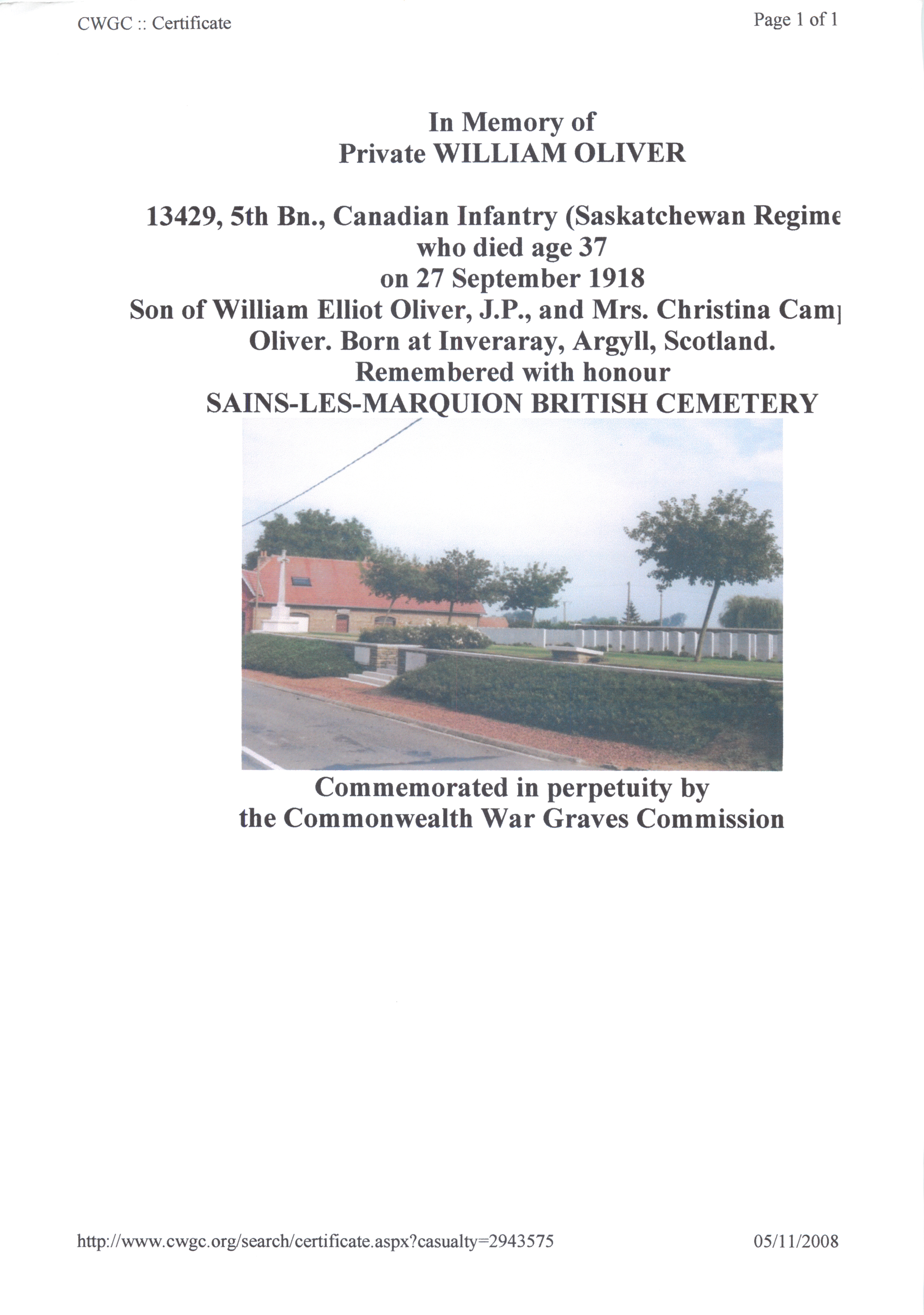 Object Desc A collection of documents provided through the communication of William Oliver's family in Scotland and Helga Gerrard's research in Strathclair.