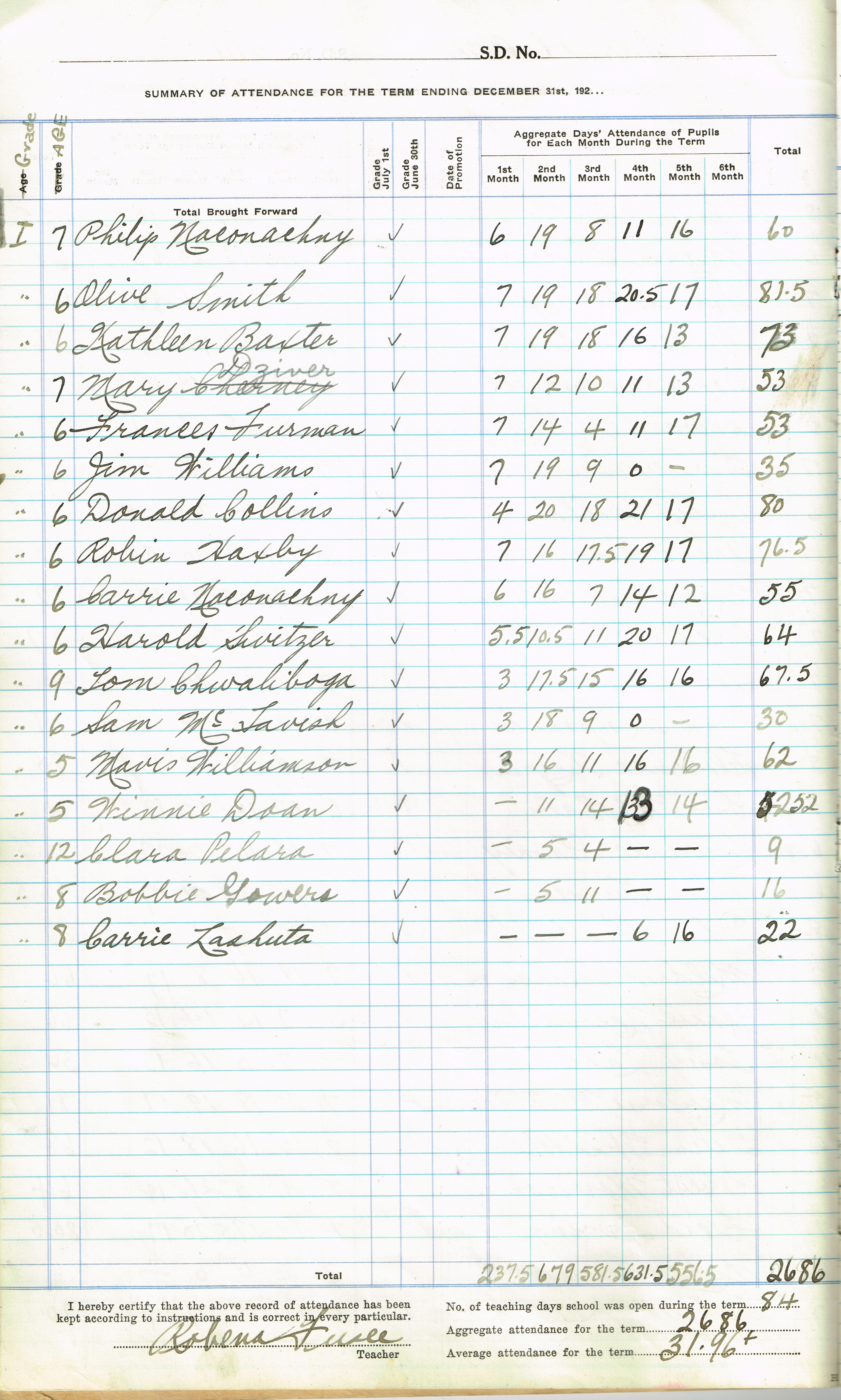 Description M.M. McKerchar (Teacher), Philip Naconachny (Nakonechny) (G.1), Olive Smith (G.1), Kathlean Baxter (G.1), Mary Dziver (G.1), Frances Furman (G.1), Jim Williams (G.1), Donald Collins (G.1), Robin Haxby (G.1), Carrie Naconachny (Naconechny) (G.1), Harold Switzer (G.1), Tom Chwaliboga (G.1), Sam McTavish (G.1), Mavis Wlliamson (G.1), Winnie Doan (G.1), Clara Pelara (G.1), Bobbie Gowers (G.1), Carrie Lashuta (G.1).