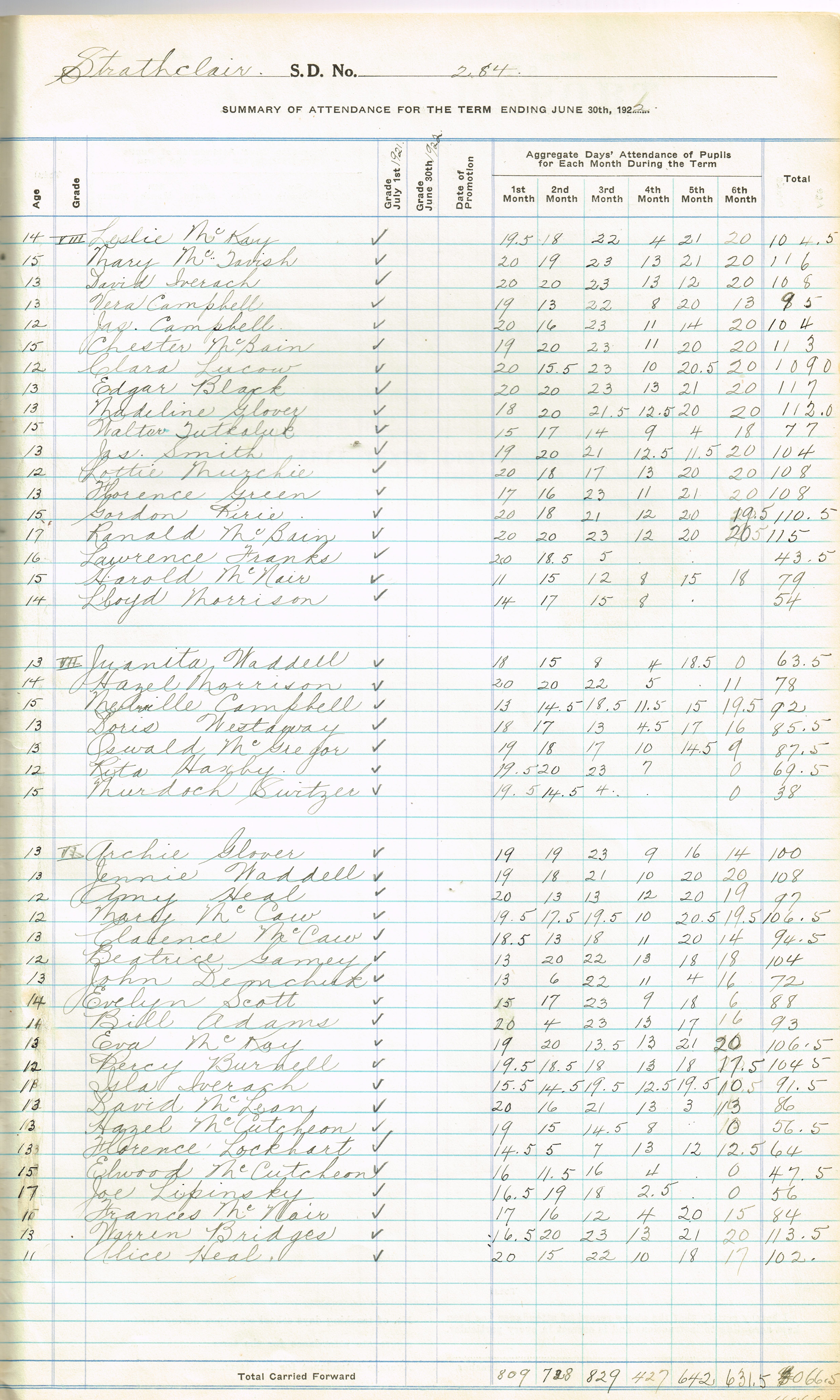 Description E. Meaken (Teacher), Lesie McKay (G.8), Mary McTavish (G.8), David Iverach (G.8), Vera Campbell (G.8), Jas (James?) Smith (G.8), Lottie Murchie (G.8), Florence Green (G.8), Gordon Pirie (G.8), Ronald McBain (G.8), Lawence Franks (G.8), Harold McNair (G.8), Lloyd Morrison (G.8), Juaita Waddell (G.7), Hazel Morrison (G.7), Melville Campbell (G.7), Doris Westaway (G.7), Oswald McGregor (G.7), Rita Haxby (G.7), Murdoch Switzer (G.7), Archie Glover (G.6), Jennie Waddell (G.6), Amy Heal (G.6), Mary McCaw (G.6), Clarence McCaw (G.6), Beatrice Gamey (G.6), John Demchuk (G.6), Evelyn Scott (G.6), Bill Adams (G.6), Eva McKay (G.6), Percy Burnell (G.6), Isla Iverach (G.6), David McLean (G.6), Hazel McCutcheon (G.6), Joe Lipinsky (G.6), Frances McNair (G.6), Warren Bridges (G.6), Alice Heal (G.6).
