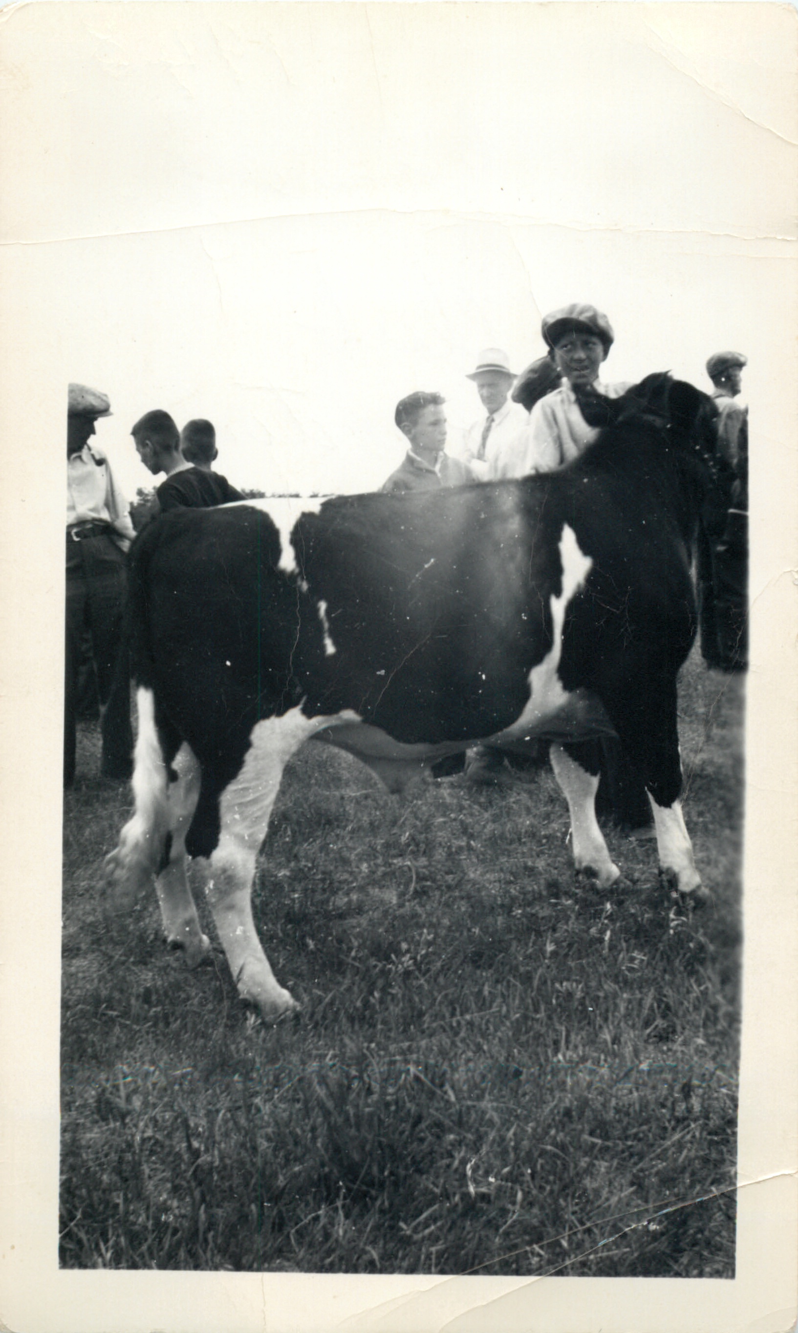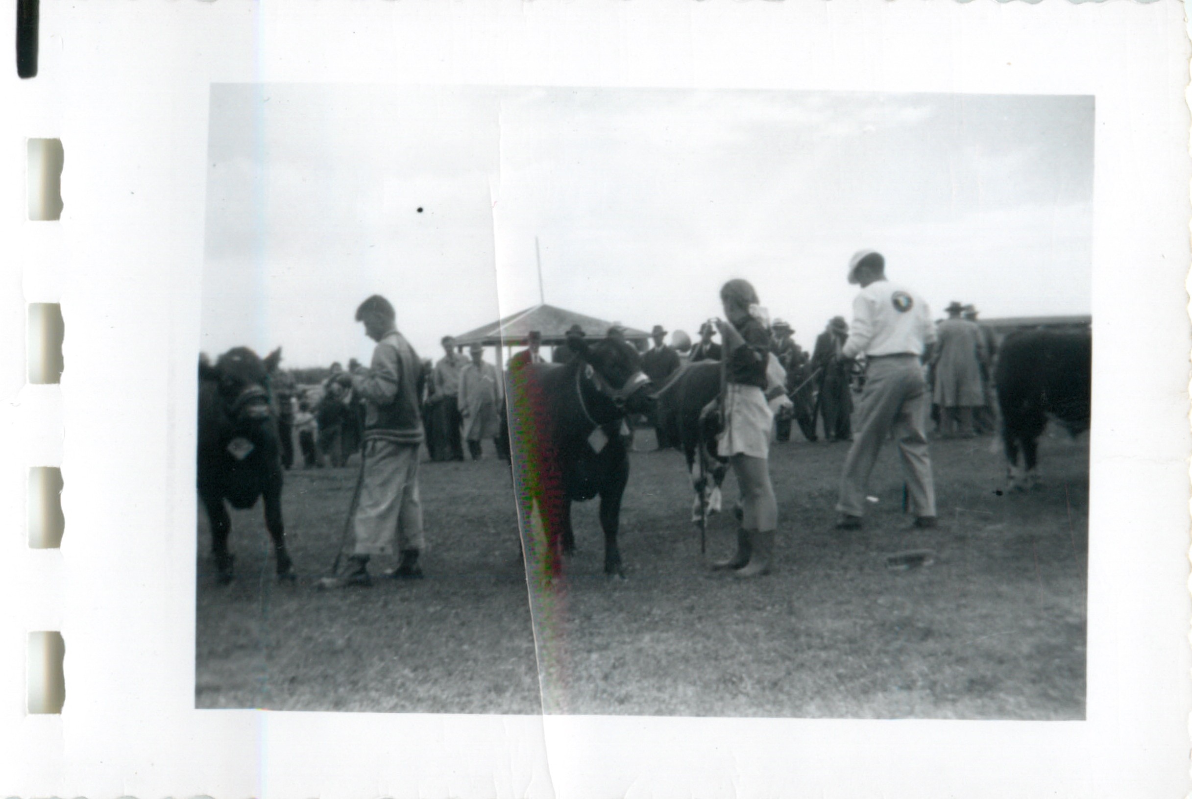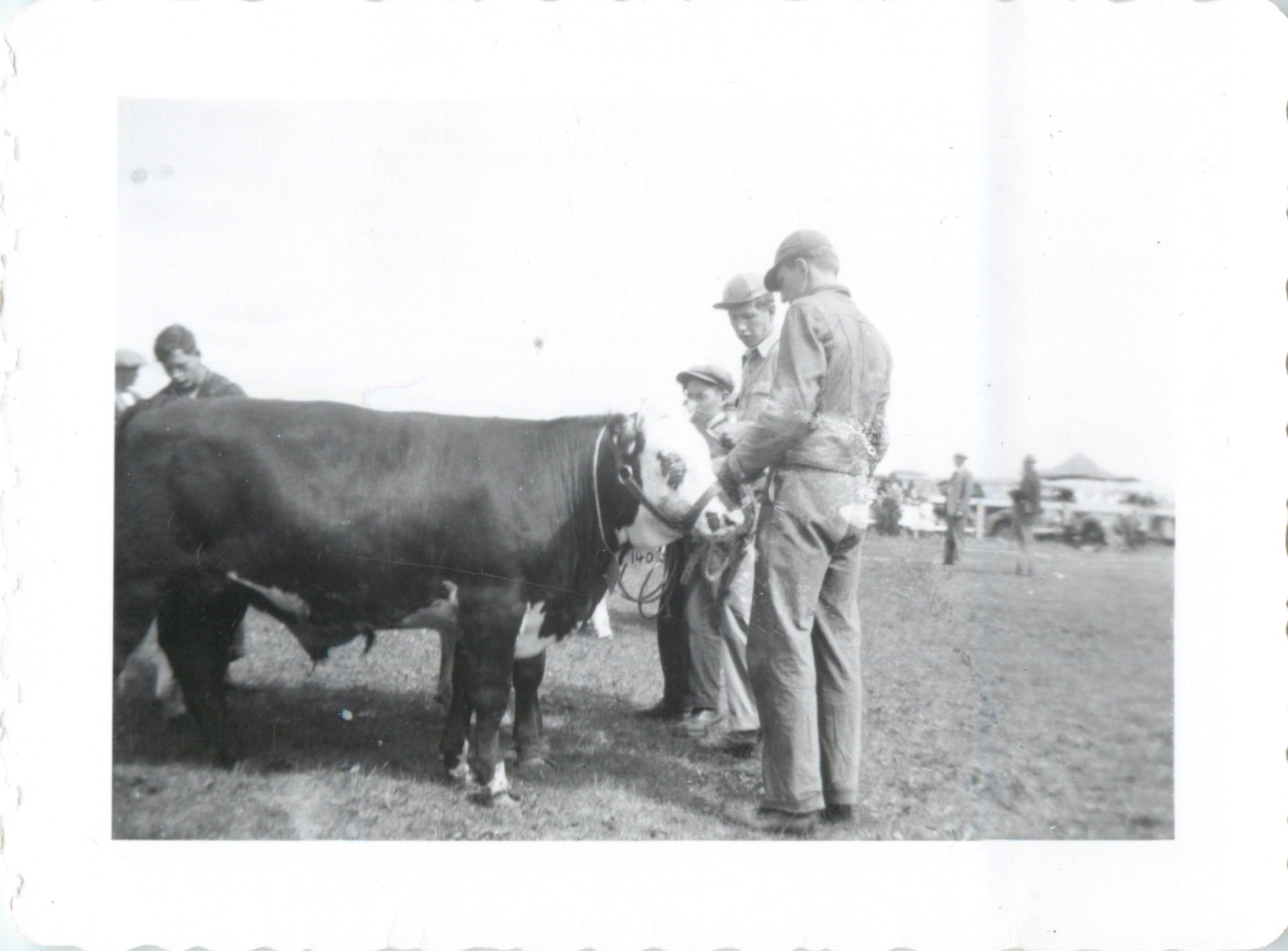 Description Garth Strachan. 1946 1st prize calf shorthorn sold at $.35 lb Verna Gamey Strathclair Collection; 2012.0026; im069;
