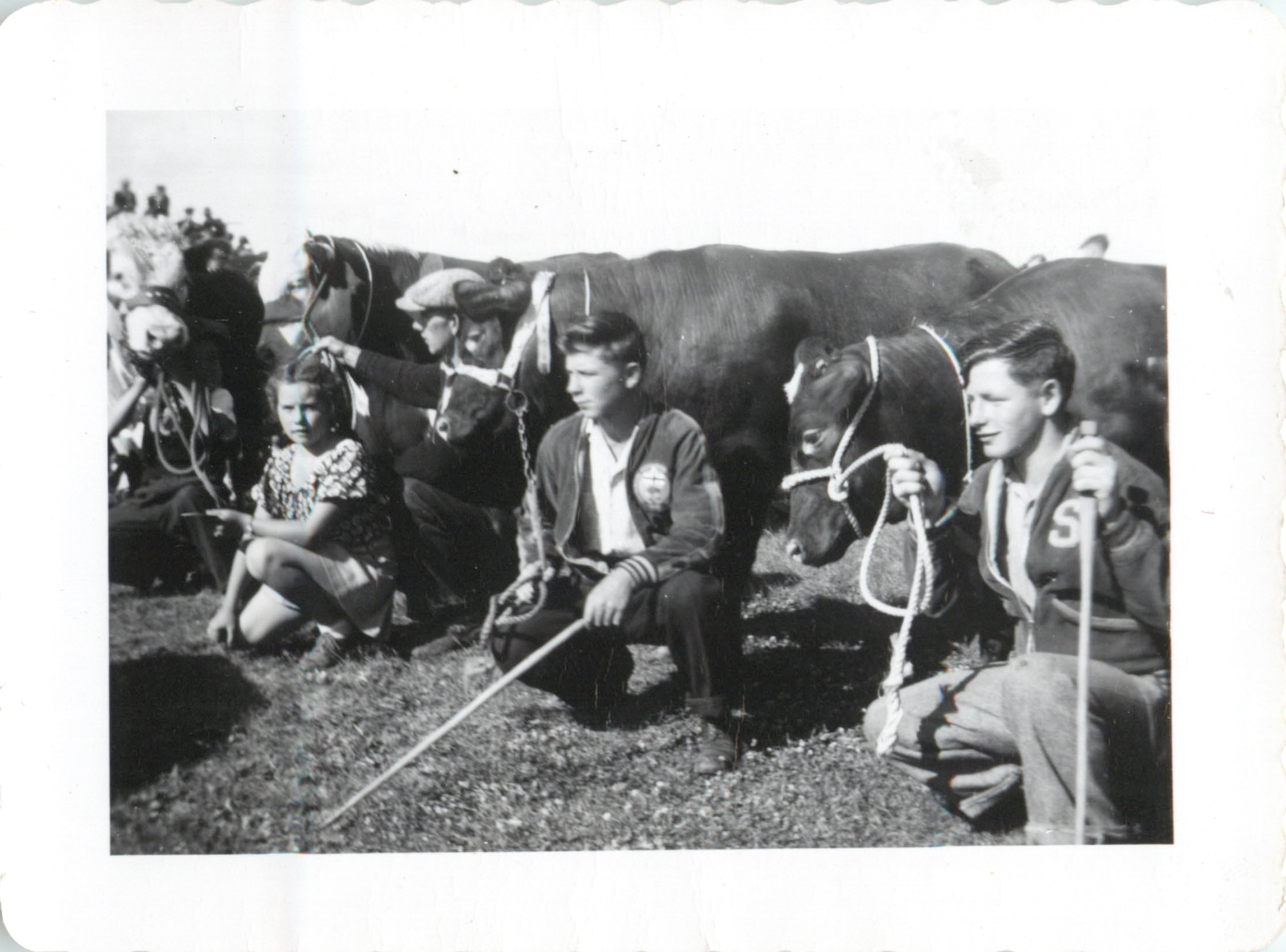 Description Calf Club Rally. Graham Switzer, Geo Winstone, Freda Hogg Verna Gamey Strathclair Collection; 2012.0026; im068;