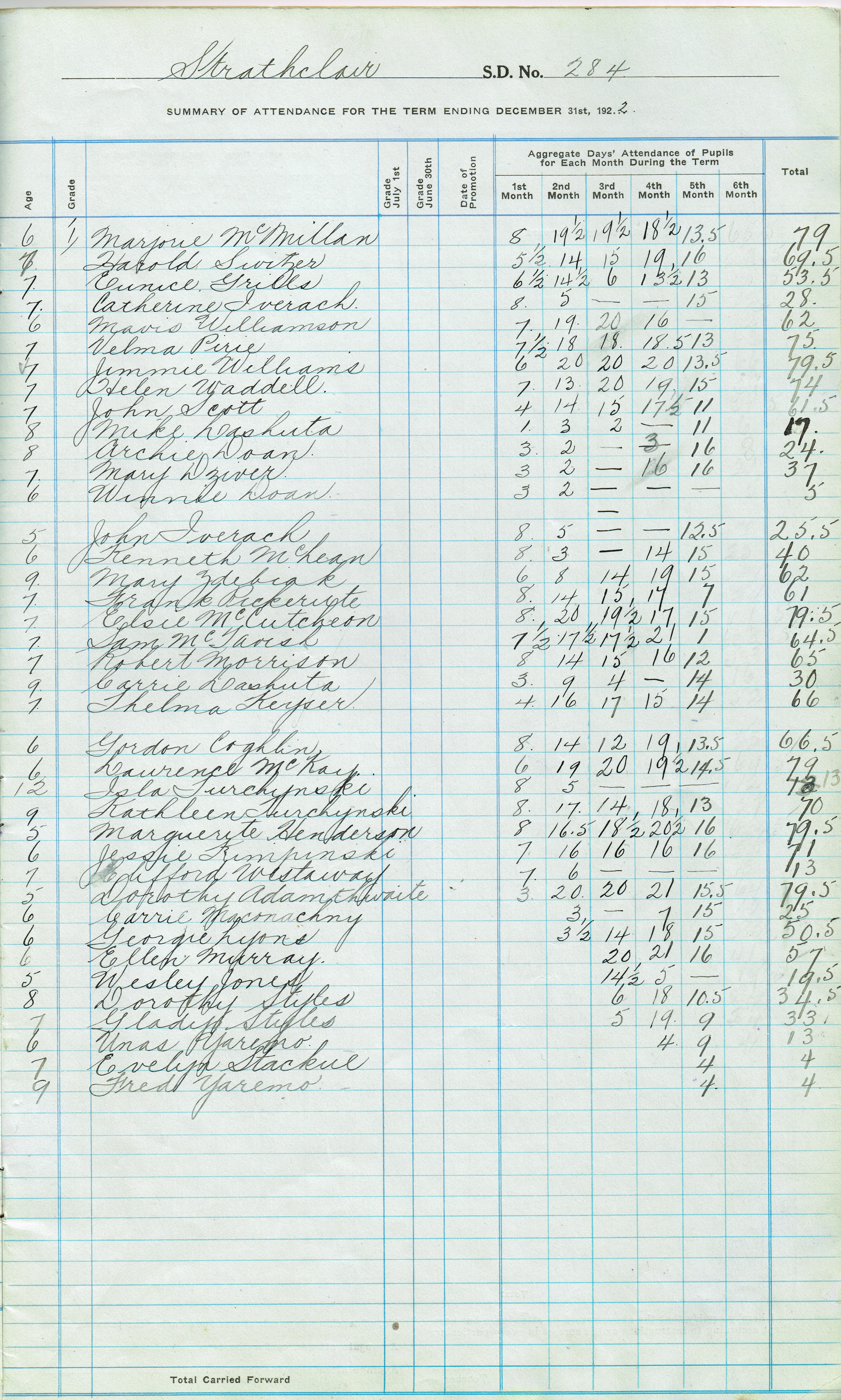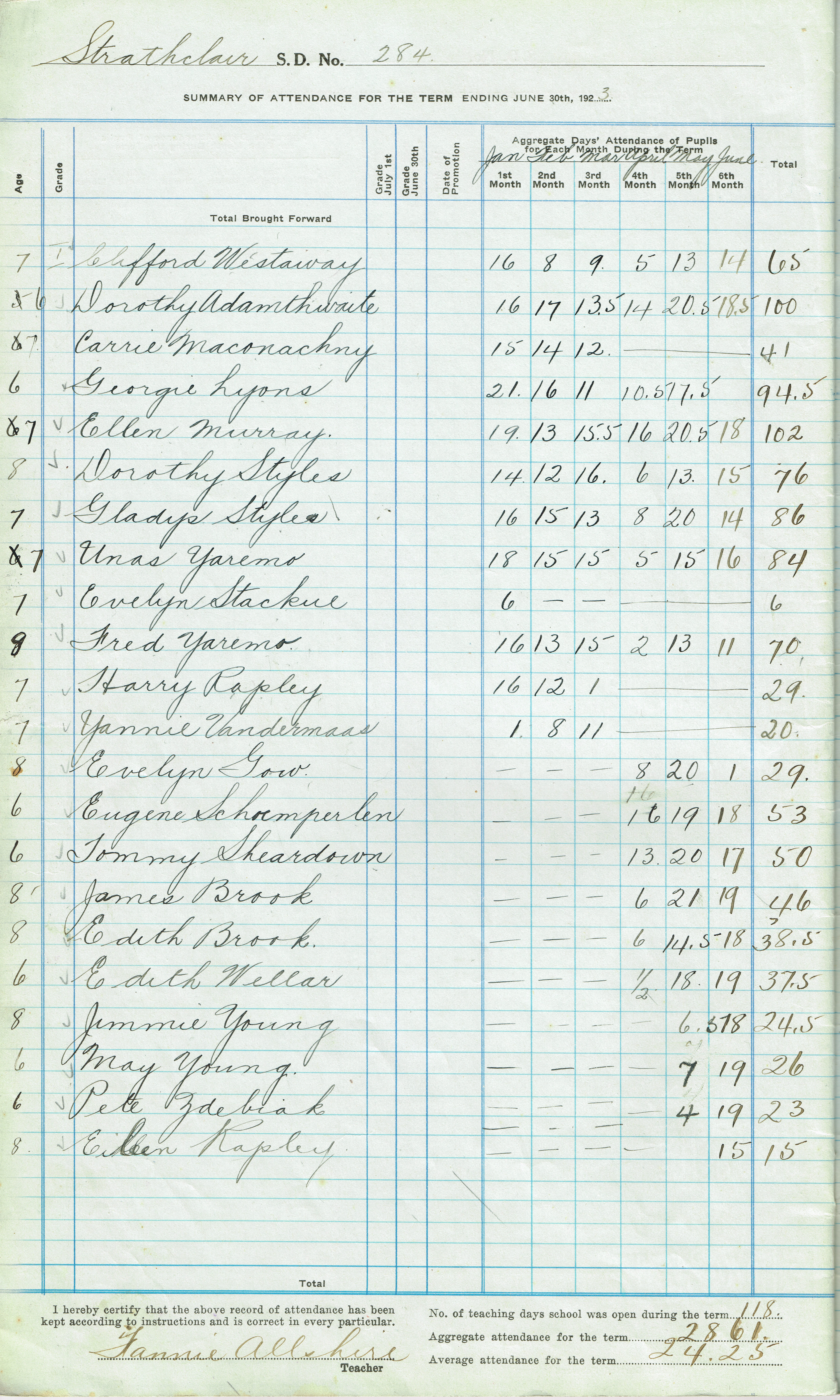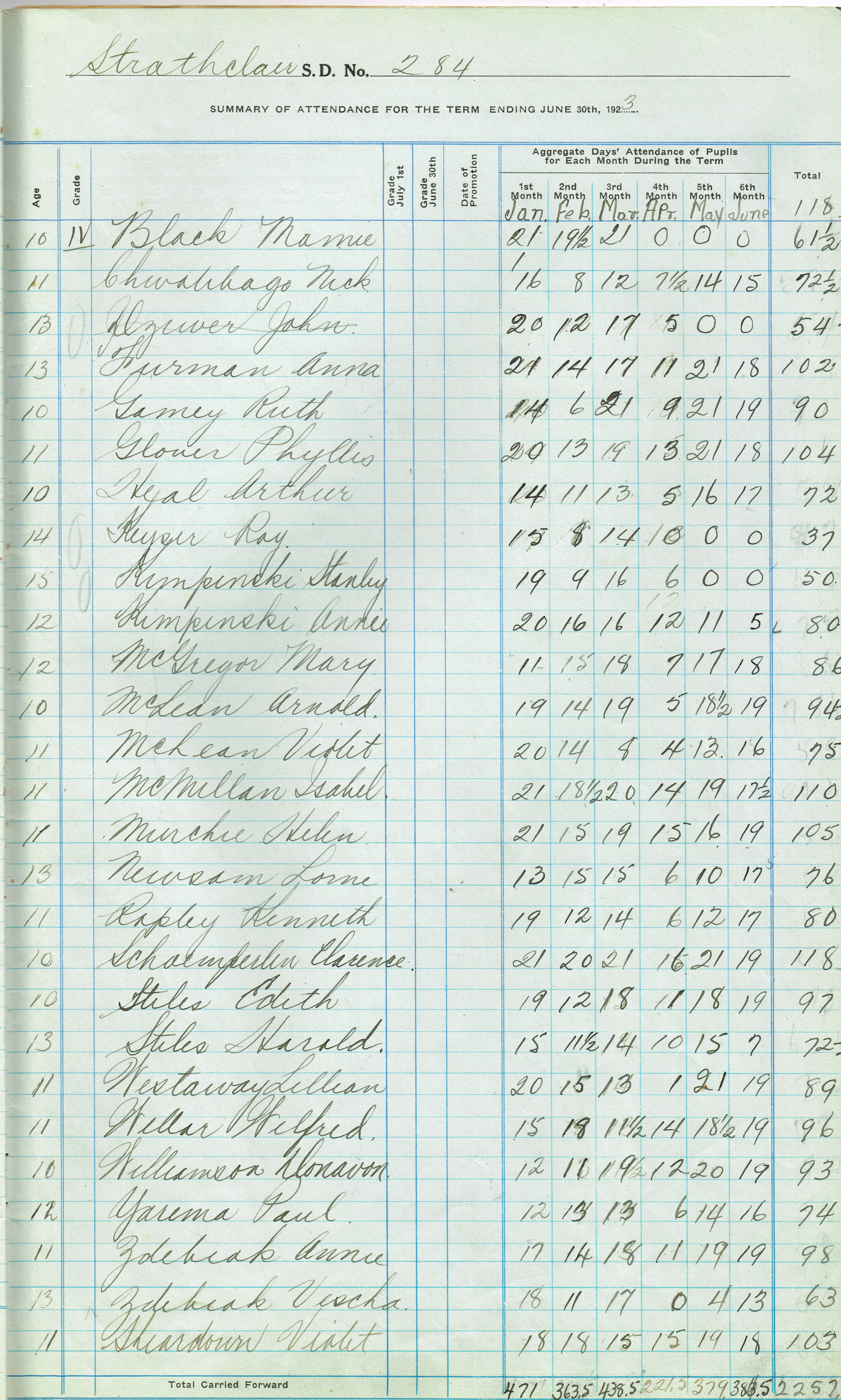 Object Name Strathclair Consol. Sch. #284, 1922-23