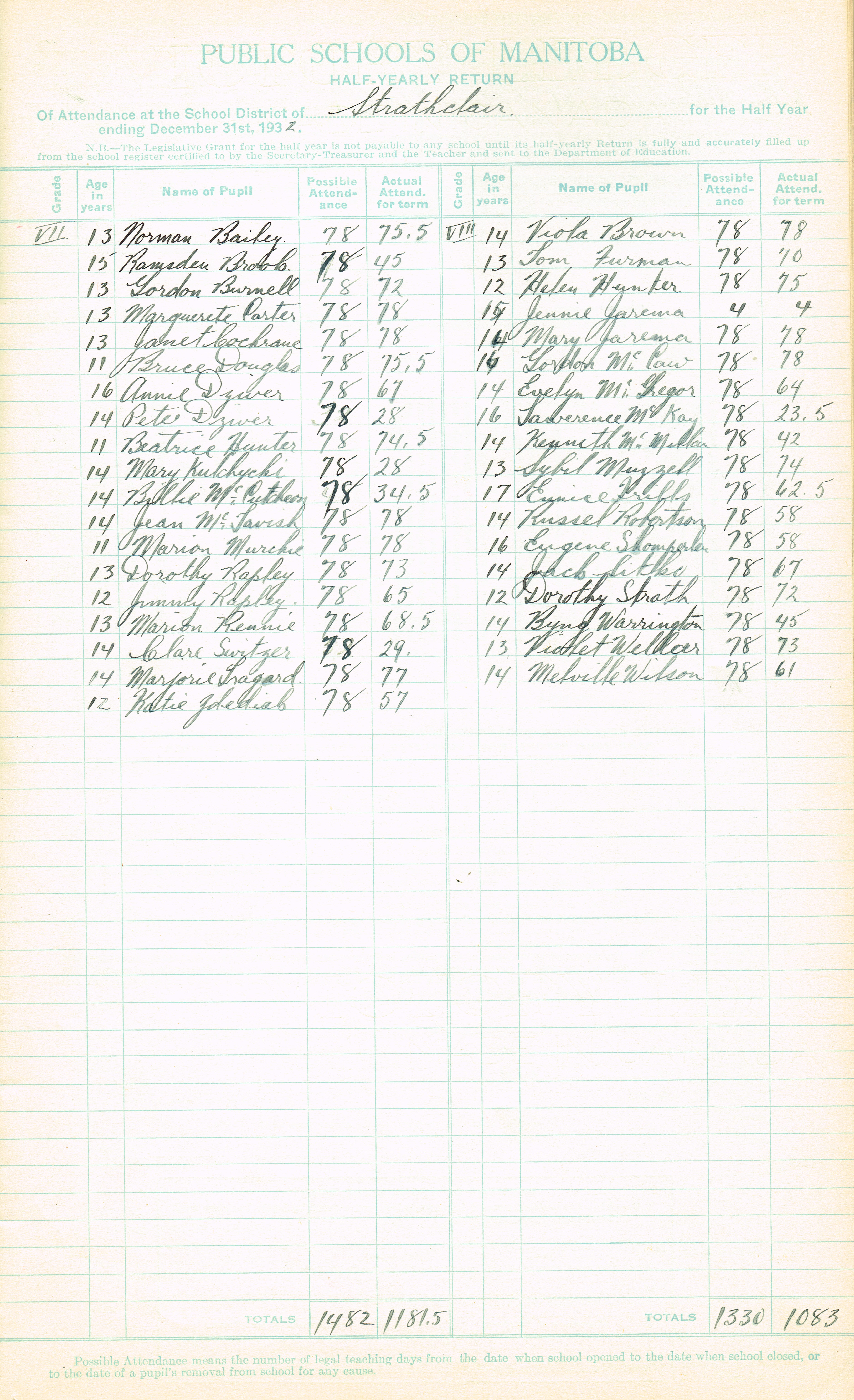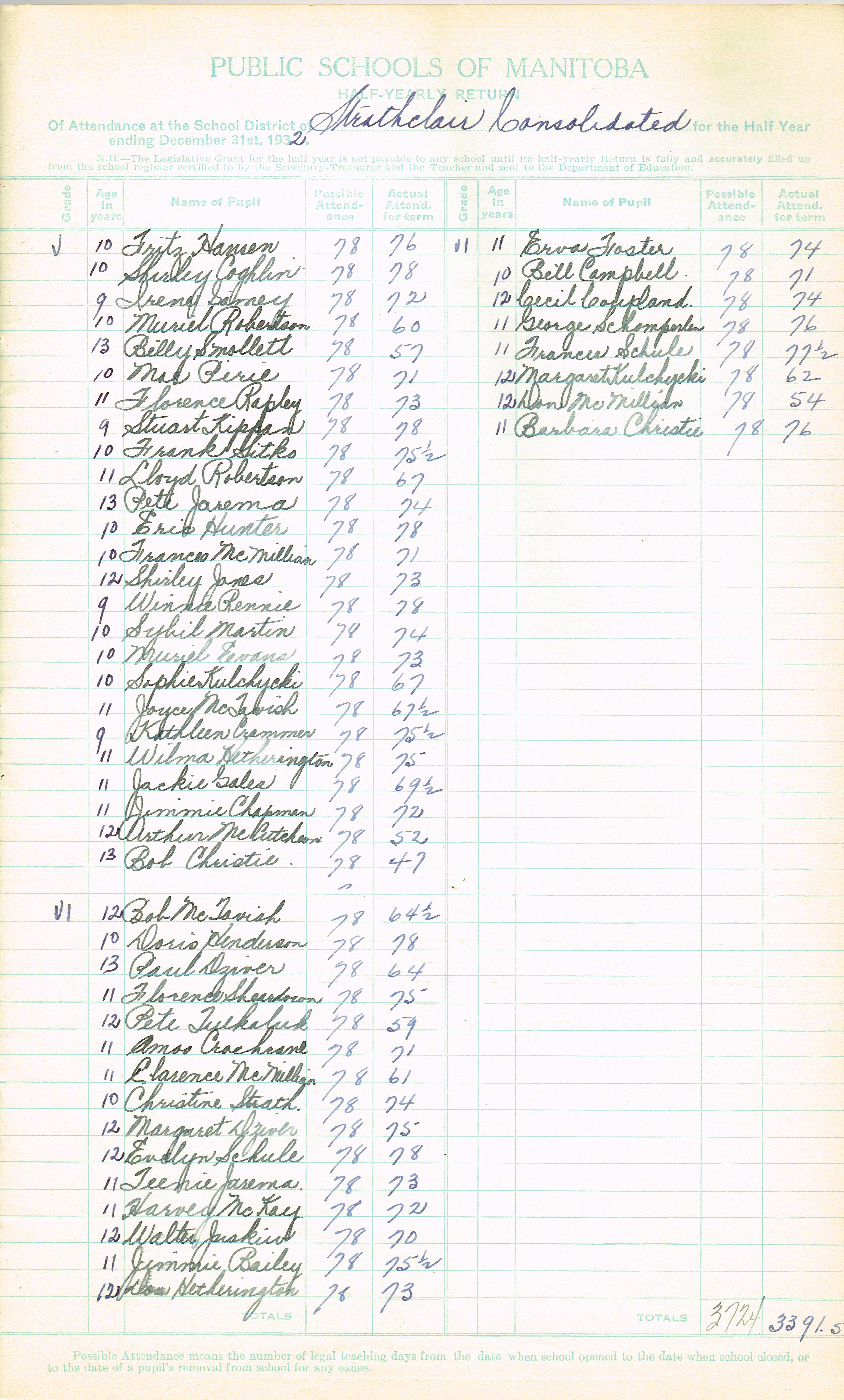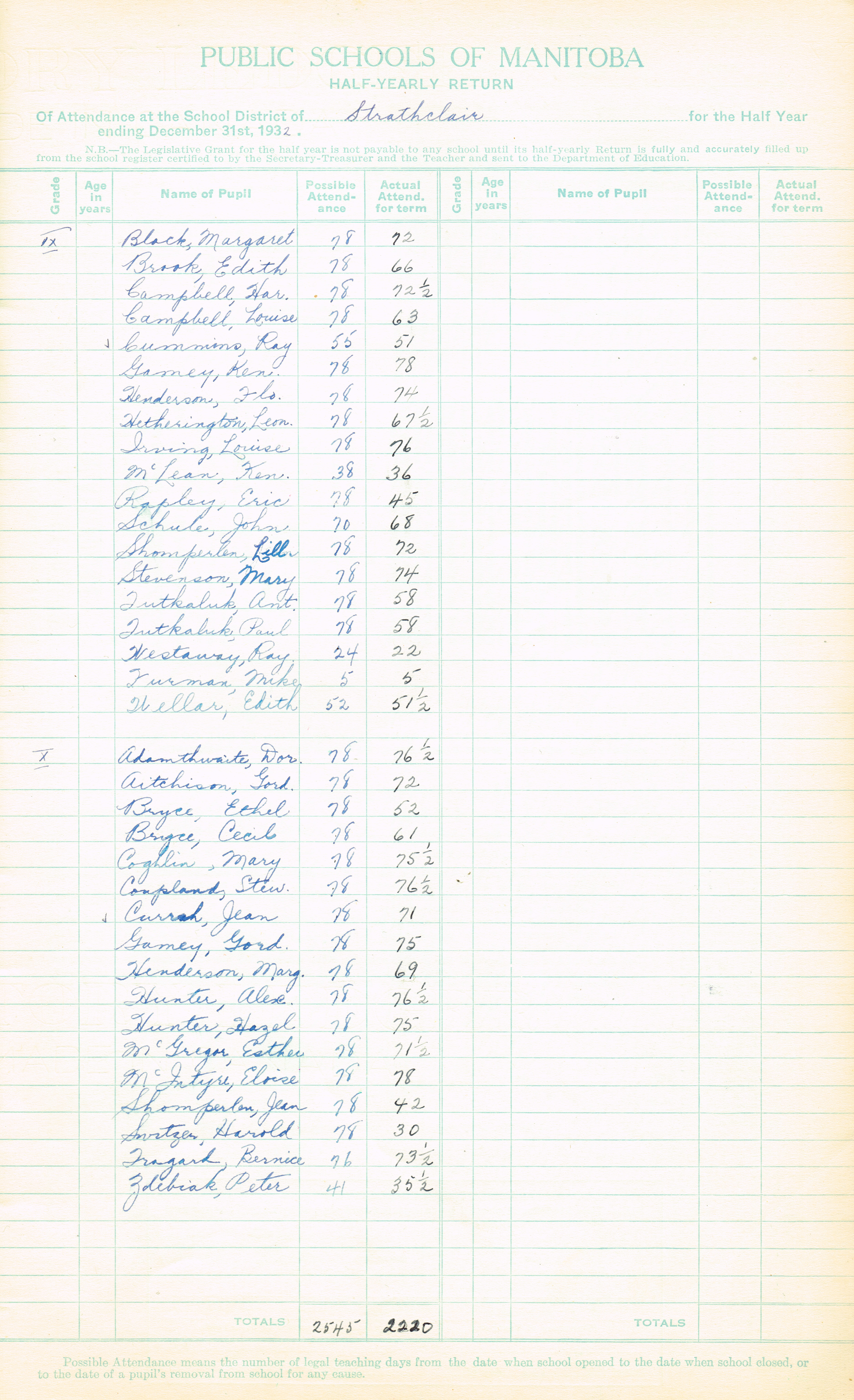 Object Name Strathclair Consol. Sch. #284, 1932-33
