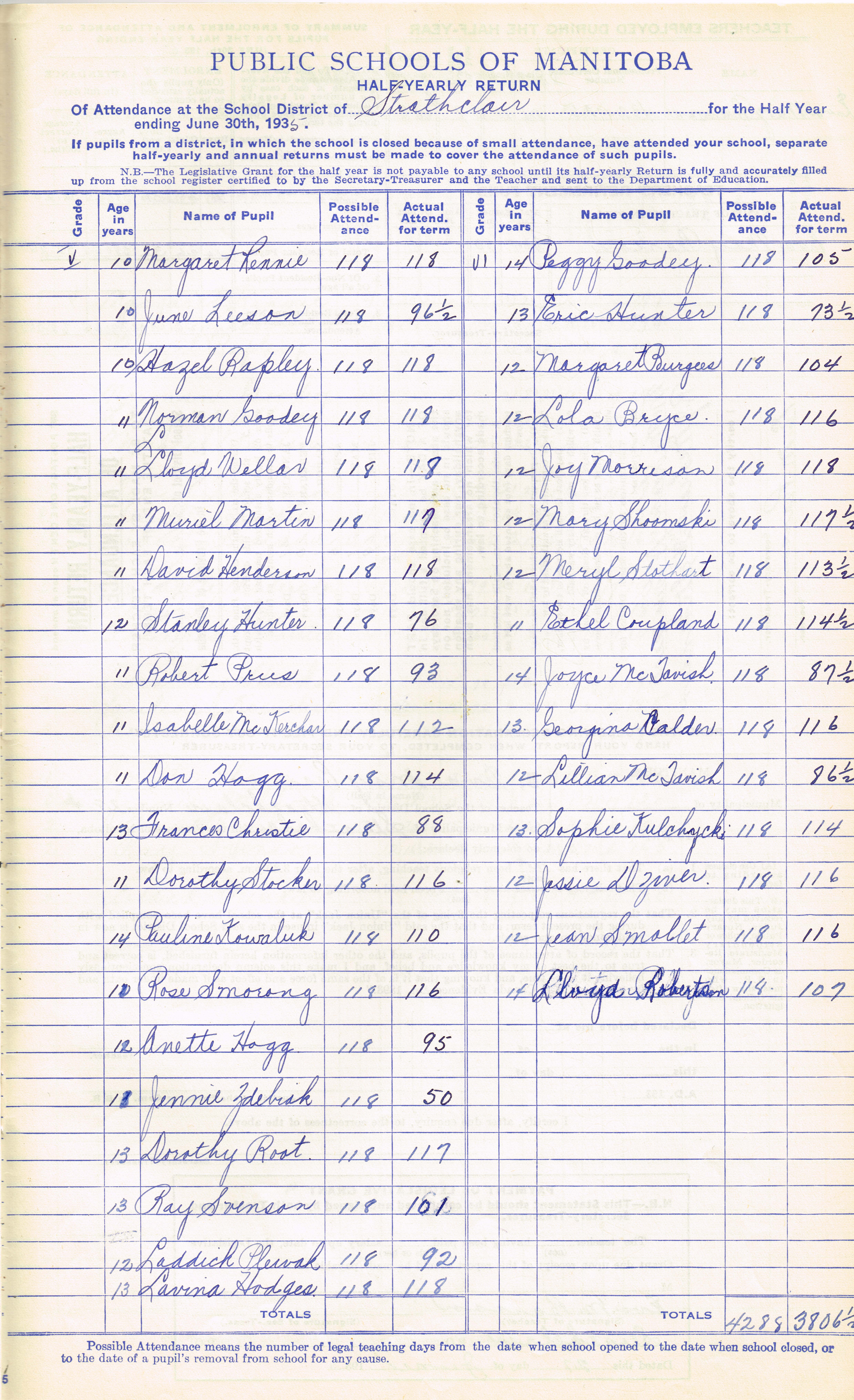 Description Eva M. Pearson (teacher), Margaret Rennie (G. 5), June Leeson (G. 5), Hazel Rapley (G. 5), Norman Goodey (G. 5), Lloyd Wellar (G. 5), Muriel Martin (G. 5), David Henderson (G. 5), Stanley Hunter (G. 5), Robert Prus (G. 5), Isabelle McKerchar (G. 5), Don Hogg (G. 5), Frances Christie (G. 5), Dorothy Stocker (G. 5), Pauline Kowaluk (G. 5), Rose Smorong (G. 5), Anette Hogg (G. 5), Jennie Zdebiak (G. 5), Dorothy Root (G. 5), Ray Svenson (G. 5), Laddick Plewak (G. 5), Lavina Hodges (G. 5), Peggy Goodey (G. 6), Eric Hunter (G. 6), Margaret Burgess (G. 6), Lola Bryce (G. 6), Joy Morrison (G. 6), Mary Schoomski (G. 6), Meryl Stothart (G. 6), Ethel Coupland (G. 6), Joyce McTavish (G. 6), Georgina Calder (G. 6),Lillian McTavish (G. 6), Sophie Kulchycki (G. 6), Jessie Dziver (G. 6), Jean Smollet (G. 6), Lloyd Robertson (G. 6), Grace Baubie (G. 6).
