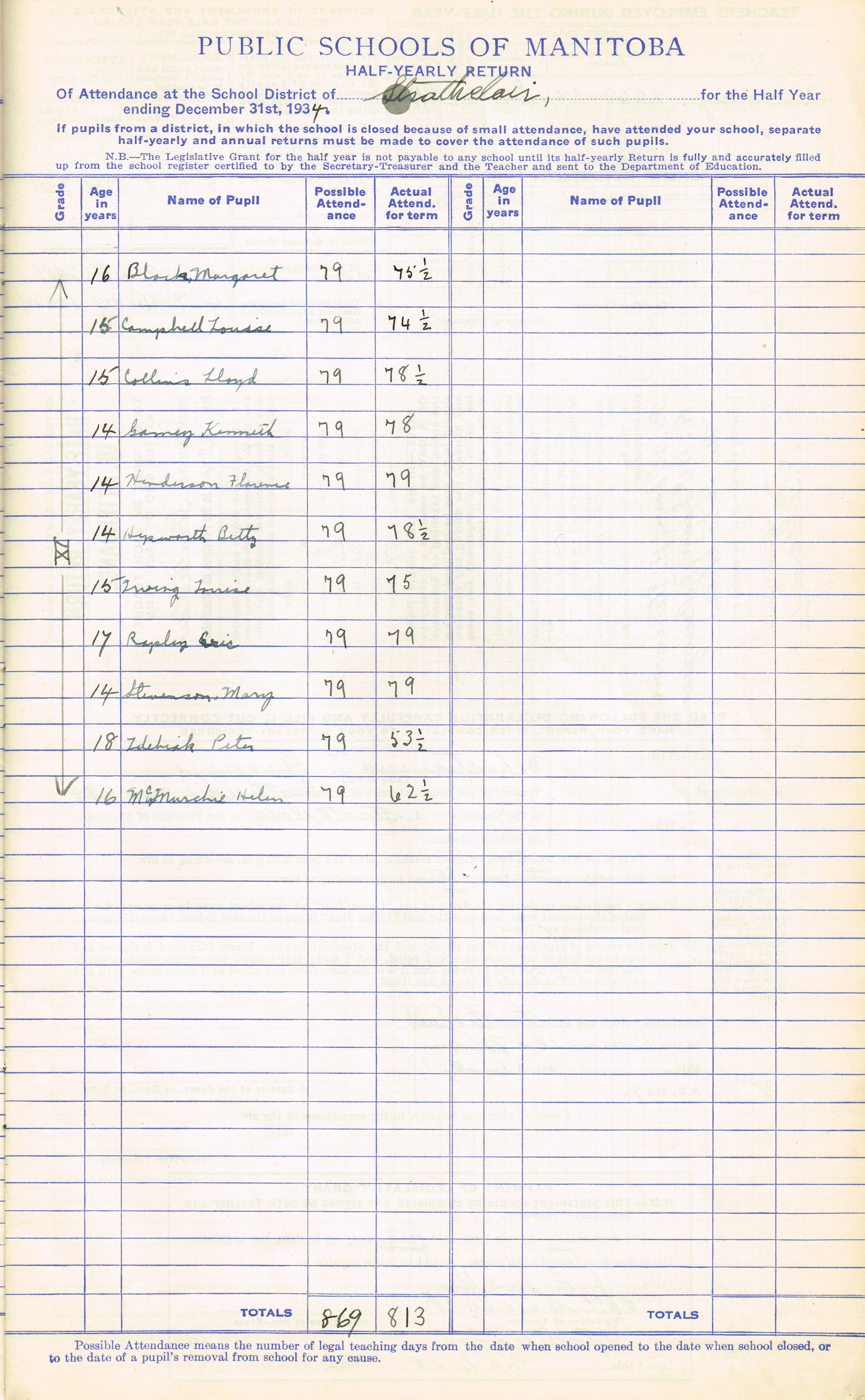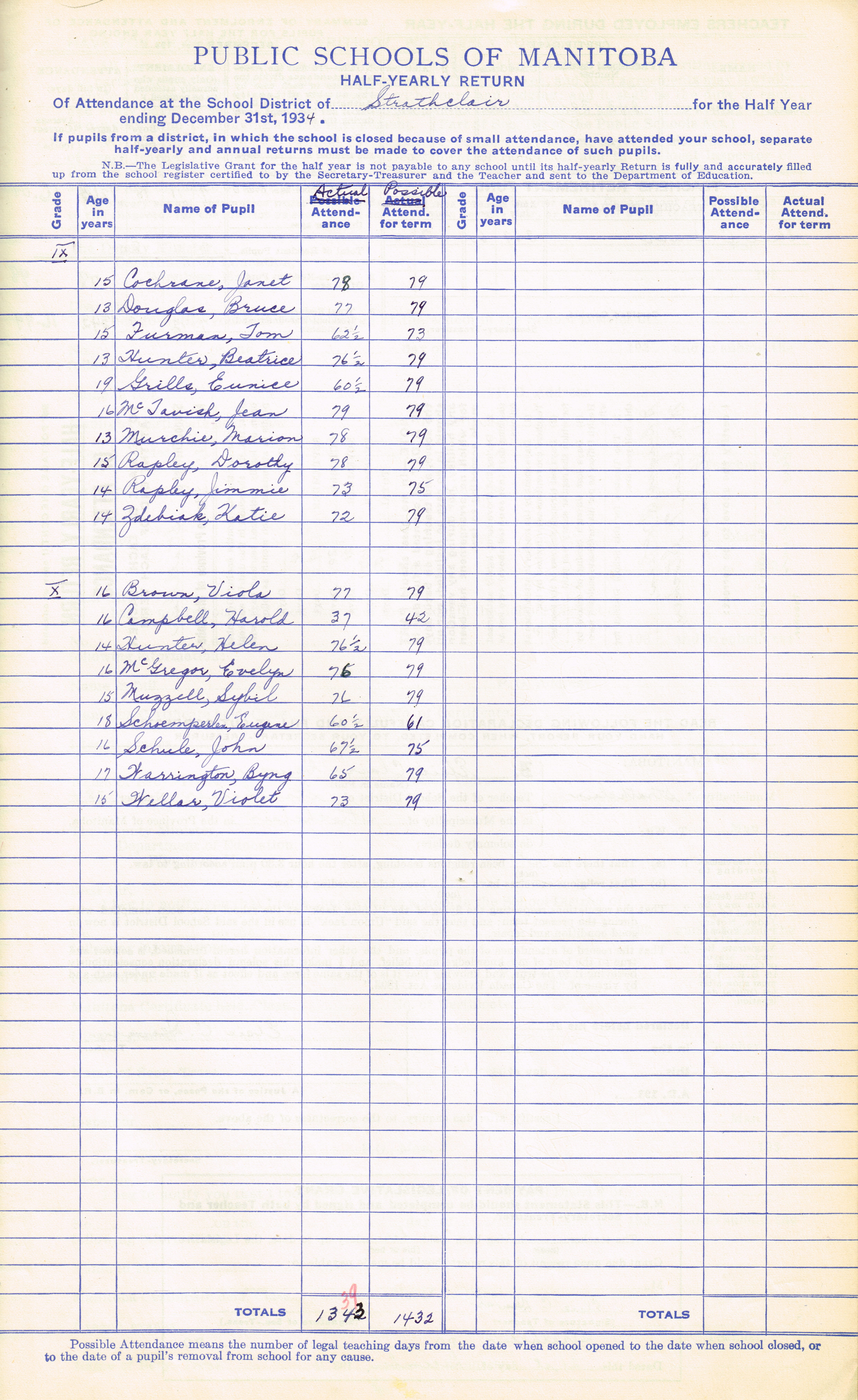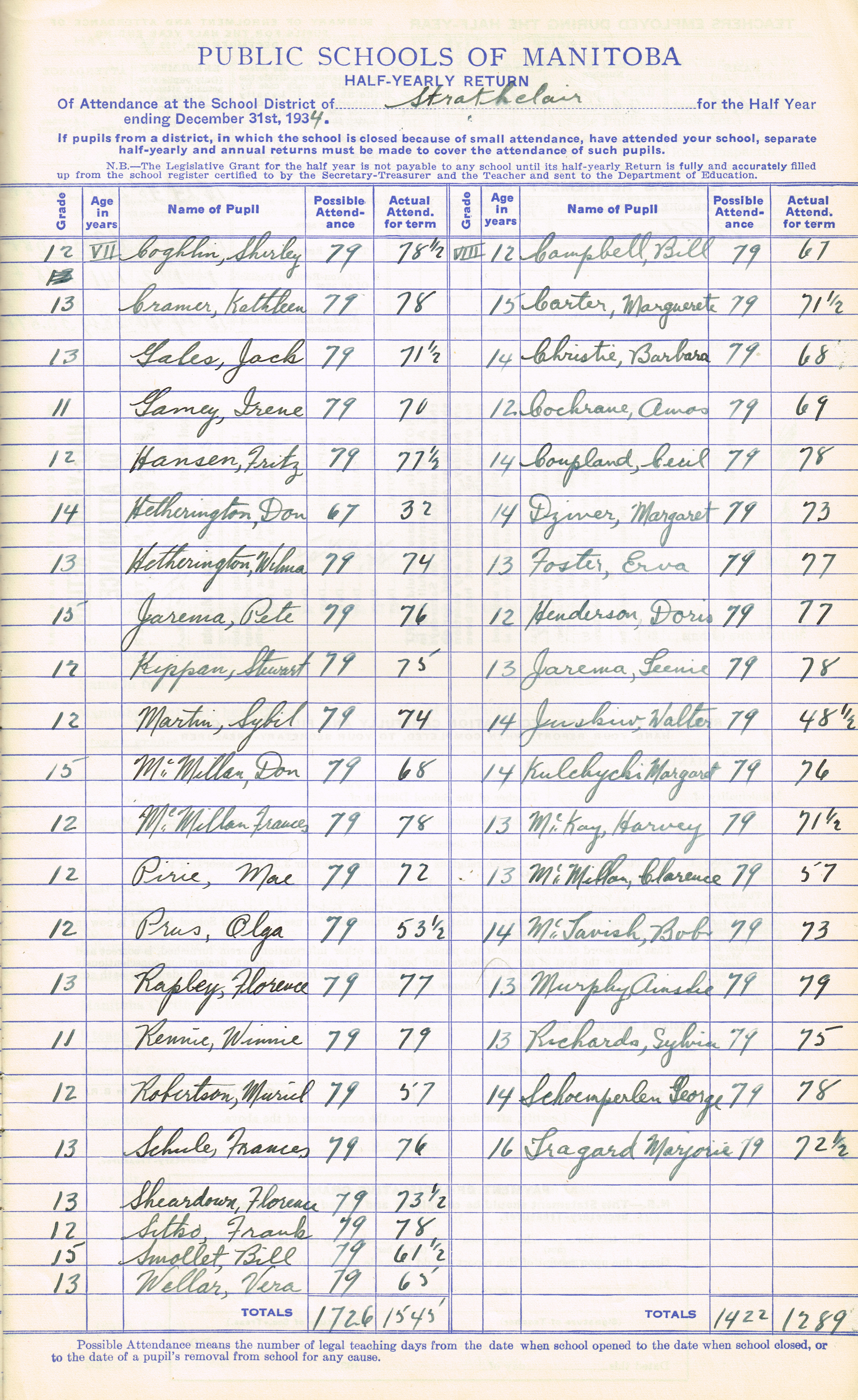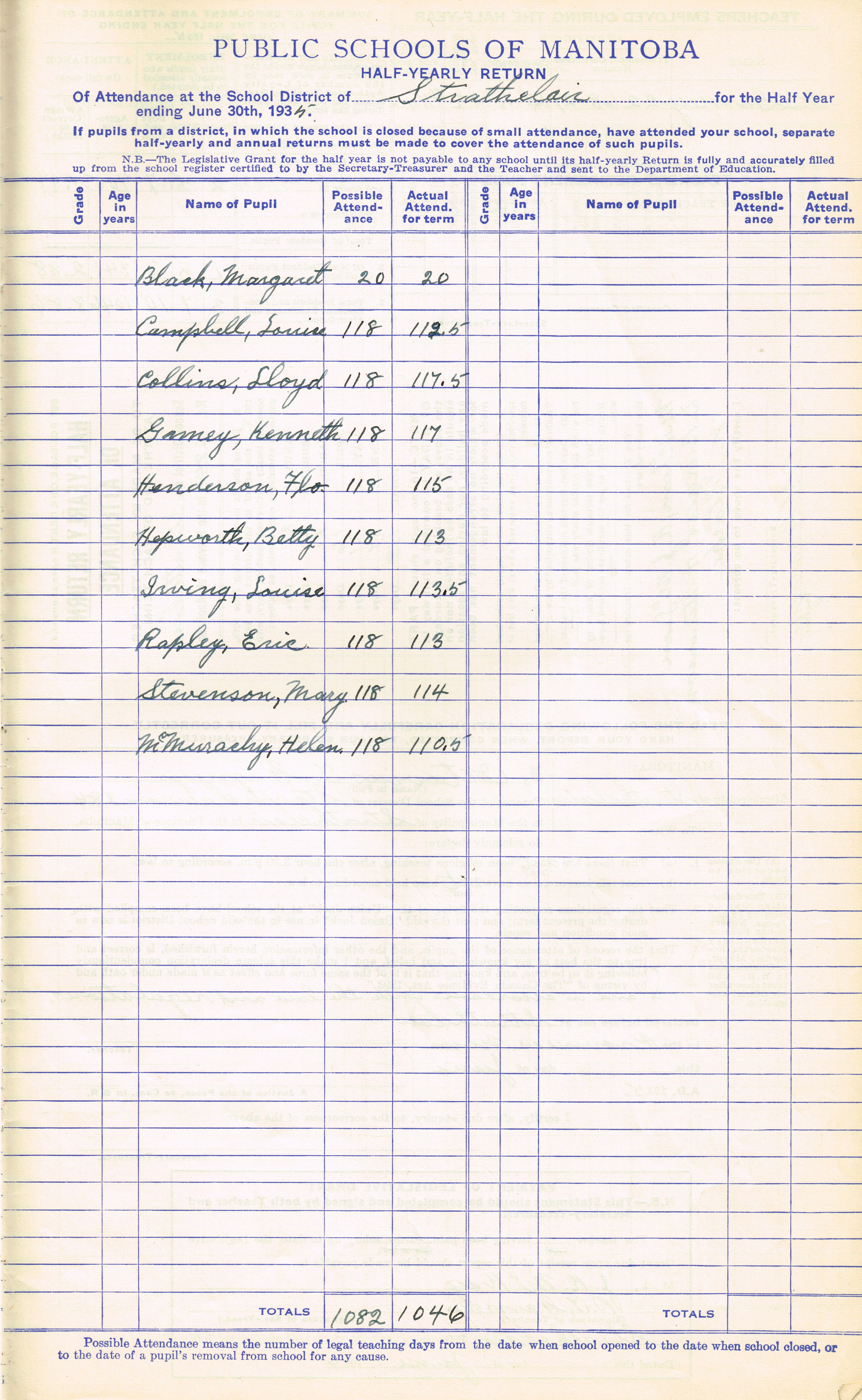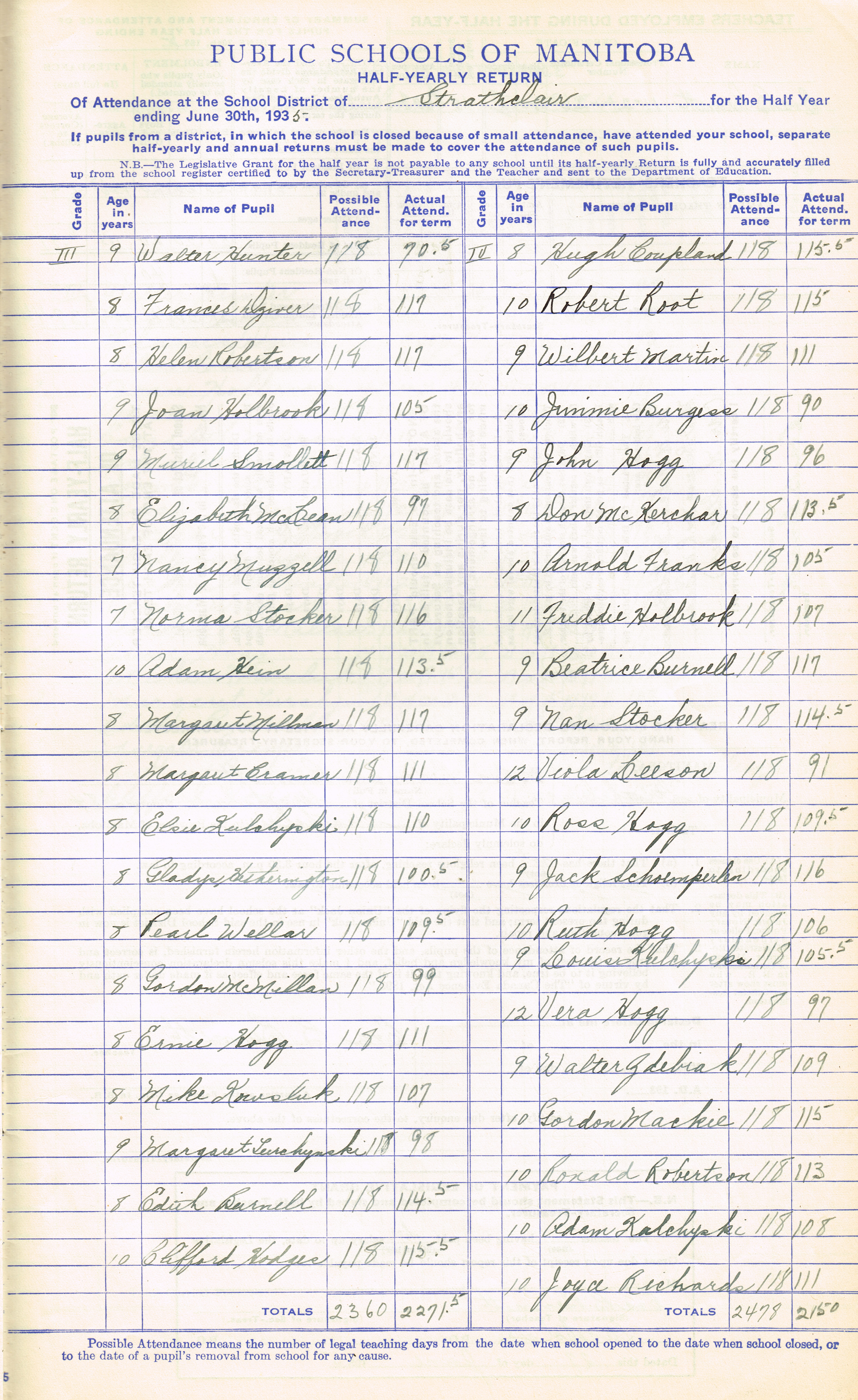 Object Name Strathclair Consol. Sch. #284, 1934-35