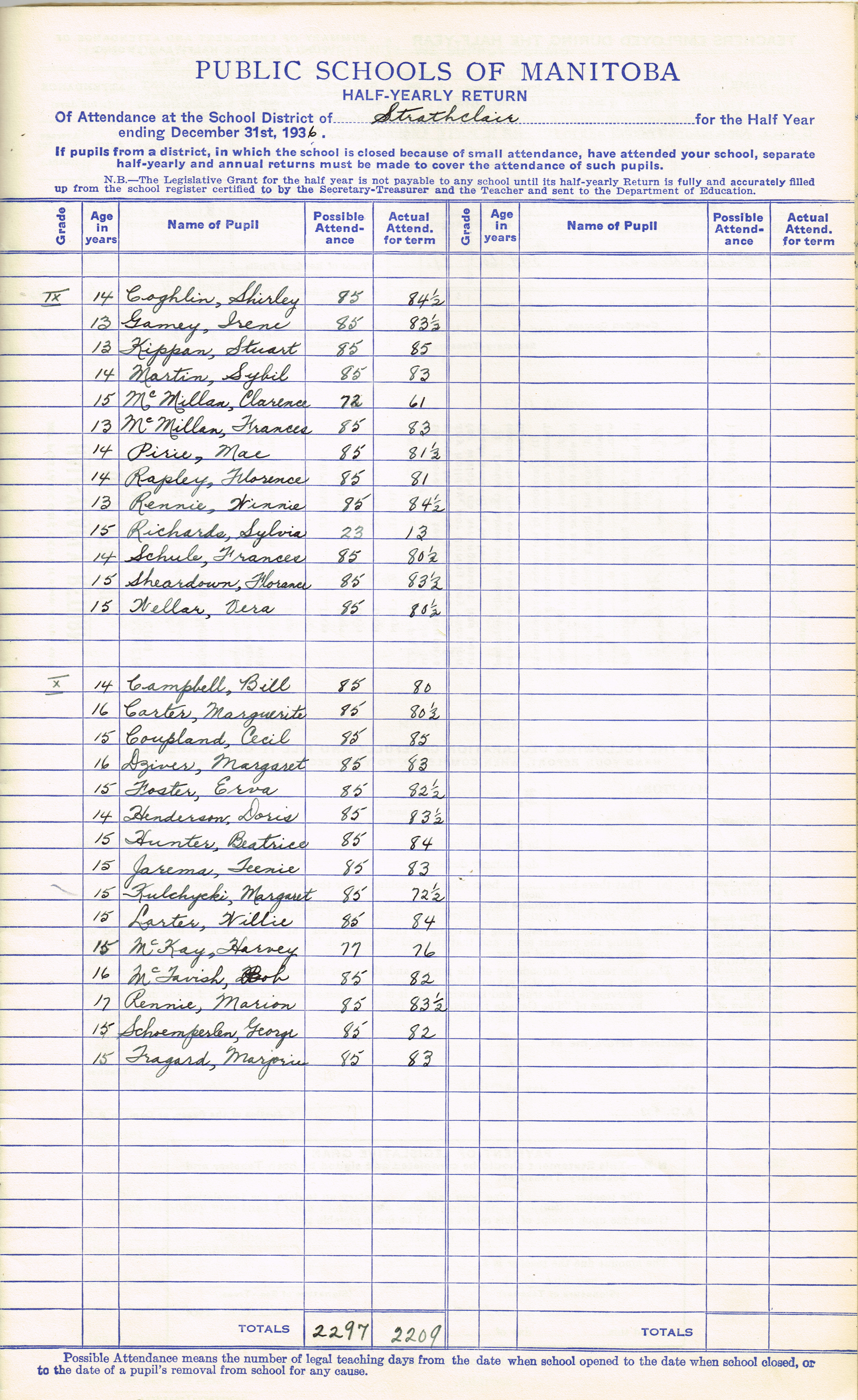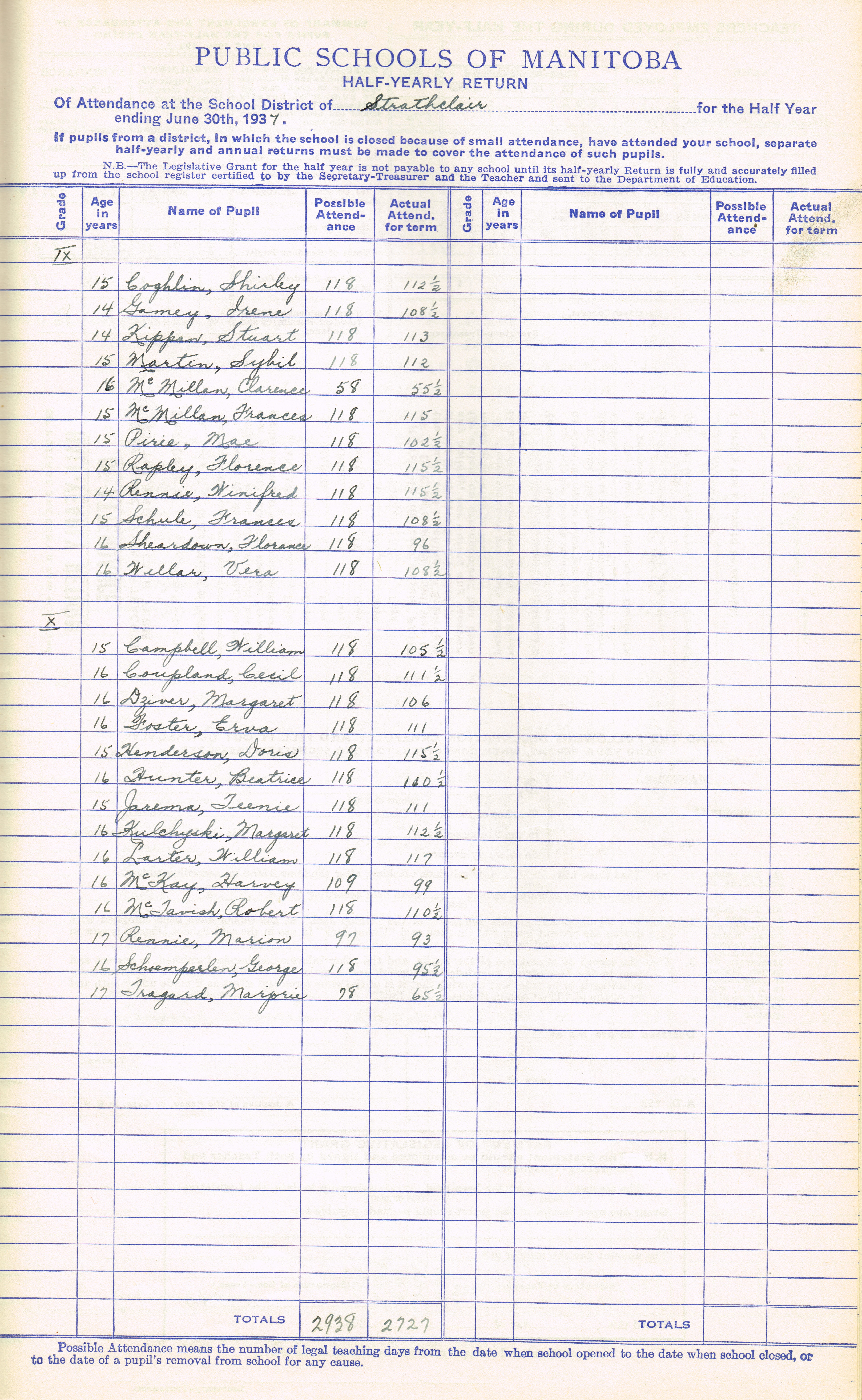 Object Name Strathclair Consol. Sch. #284, 1936-37