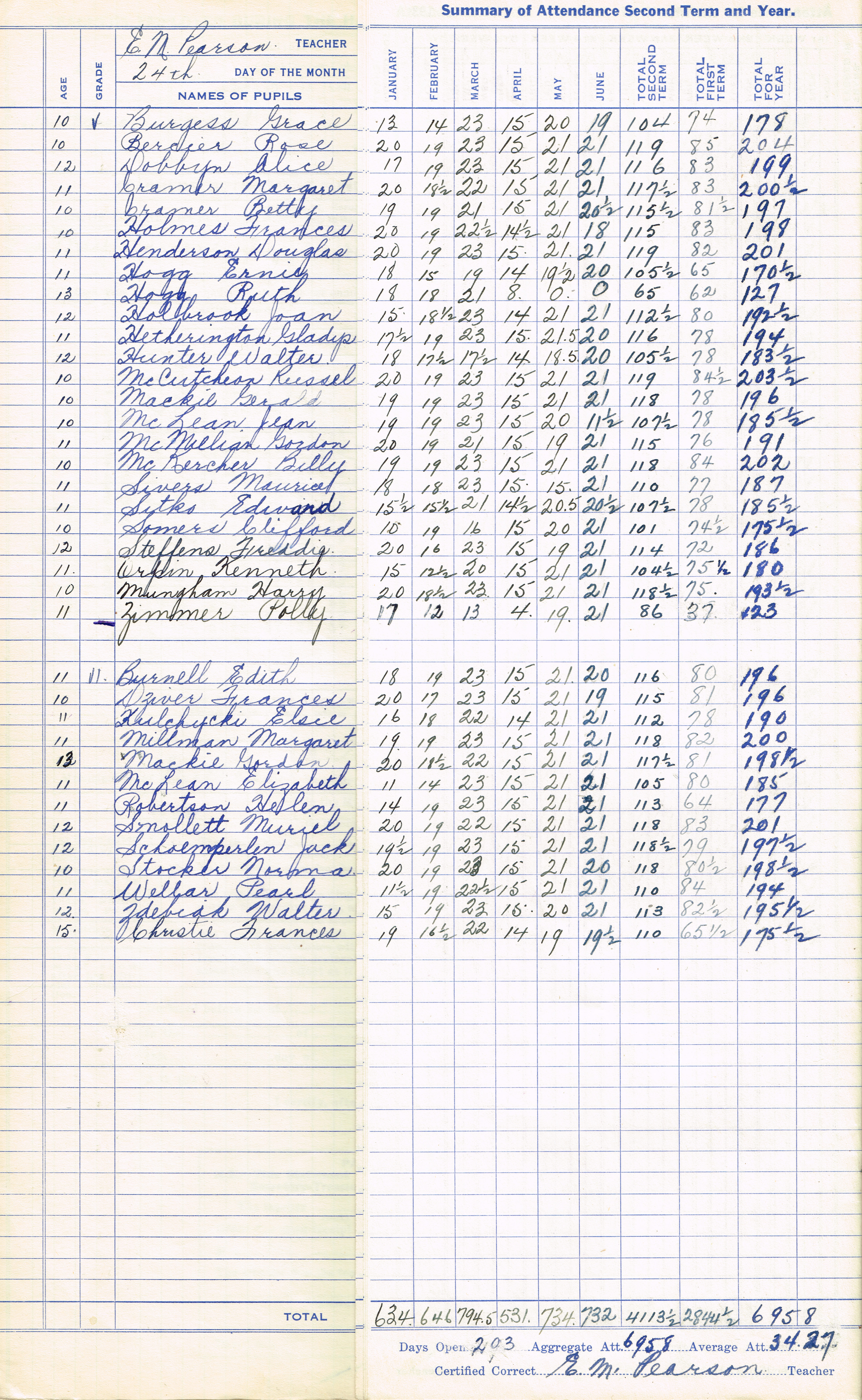 Description E. M. Pearson (teacher), Grace Burgess (G. 5), Rose Bercier (G. 5), Alice Dobbyn (G. 5), Margaret Cramer (G. 5), Betty Cramer (G. 5), Frances Holmes (G. 5), Douglas Henderson (G. 5), Ernie Hogg (G. 5), Ruth Hogg (G. 5), Joan Holbrook (G. 5), Gladys Hetherington (G. 5), Walter Hunter (G. 5), Russel McCutcheon (G. 5), Gerald Mackie (G. 5), Jean McLean (G. 5), Gordon McMillian (G. 5), Billy McKerchar (G. 5), Maurice Sivers (G. 5), Edward Sitko (G. 5), Clifford Somers (G. 5), Freddie Stellens (G. 5), Kenneth Orpin (G. 5), Harry Mungham (G. 5), Polly Zimmer (G. 5), Edith Burnell (G. 6), Frances Dziver (G. 5), Elsie Kulchycki (G. 5), Margaret Millman (G. 5), Gordon Mackie (G. 5), Elizabeth McLean (G. 5), Helen Robertson (G. 5), Muriel Smollett (G. 5), Jack Schoemperlen (G. 5), Norma Stocker (G. 5), Pearl Wellar (G. 5), Walter Zdebiak (G. 5), Frances Christie (G. 5).
