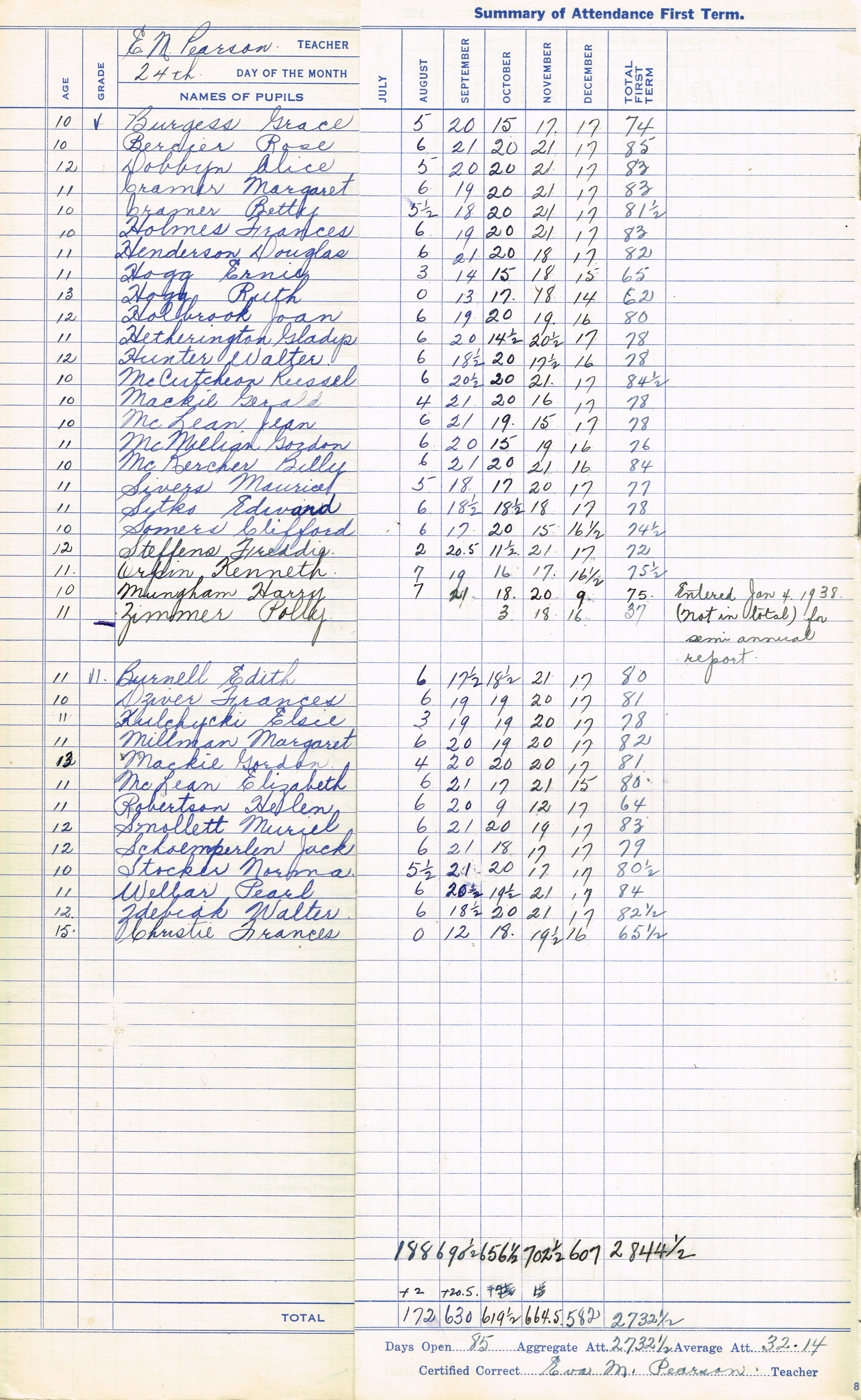 Object Name Strathclair Consol. Sch. #284, 1937-38