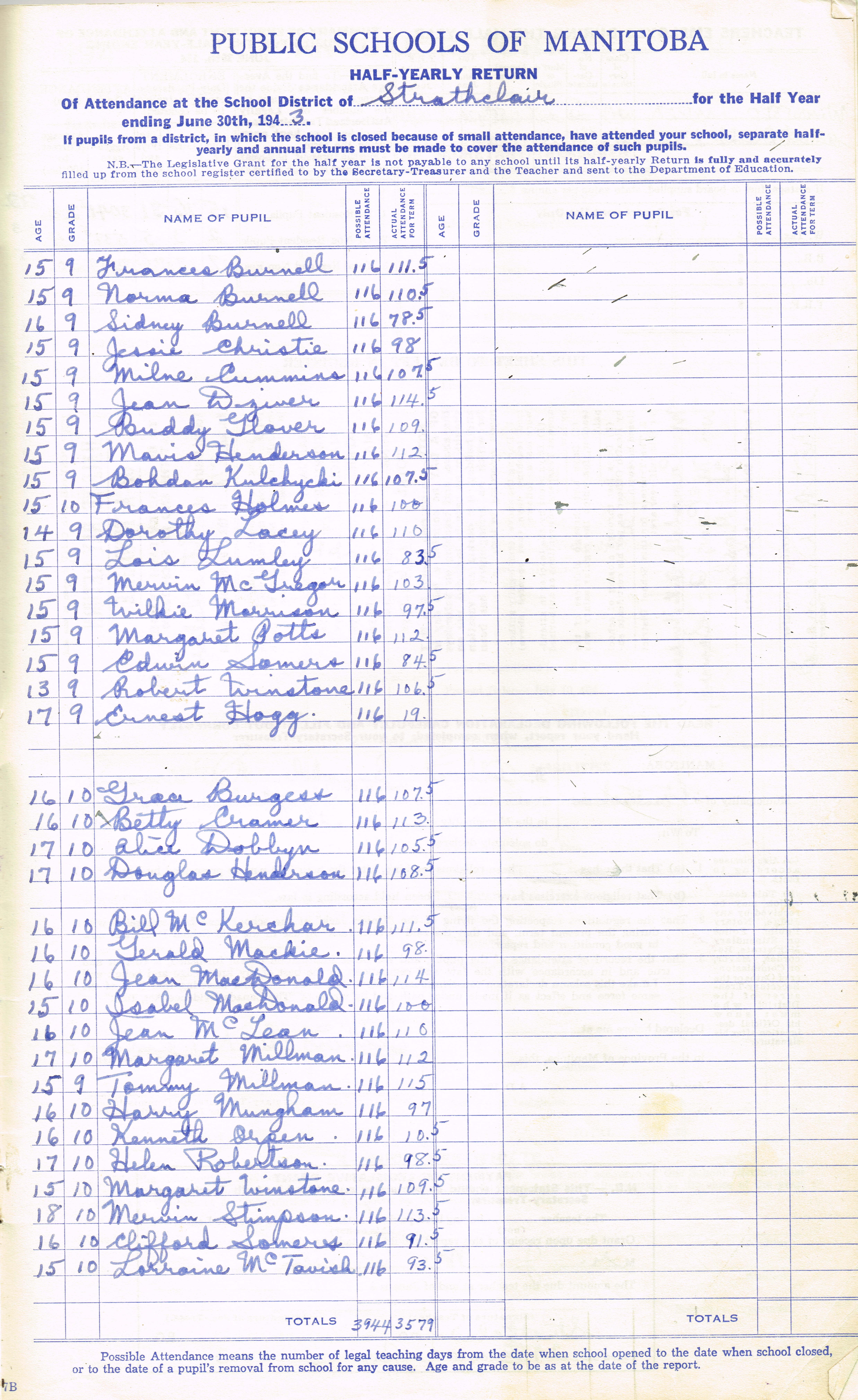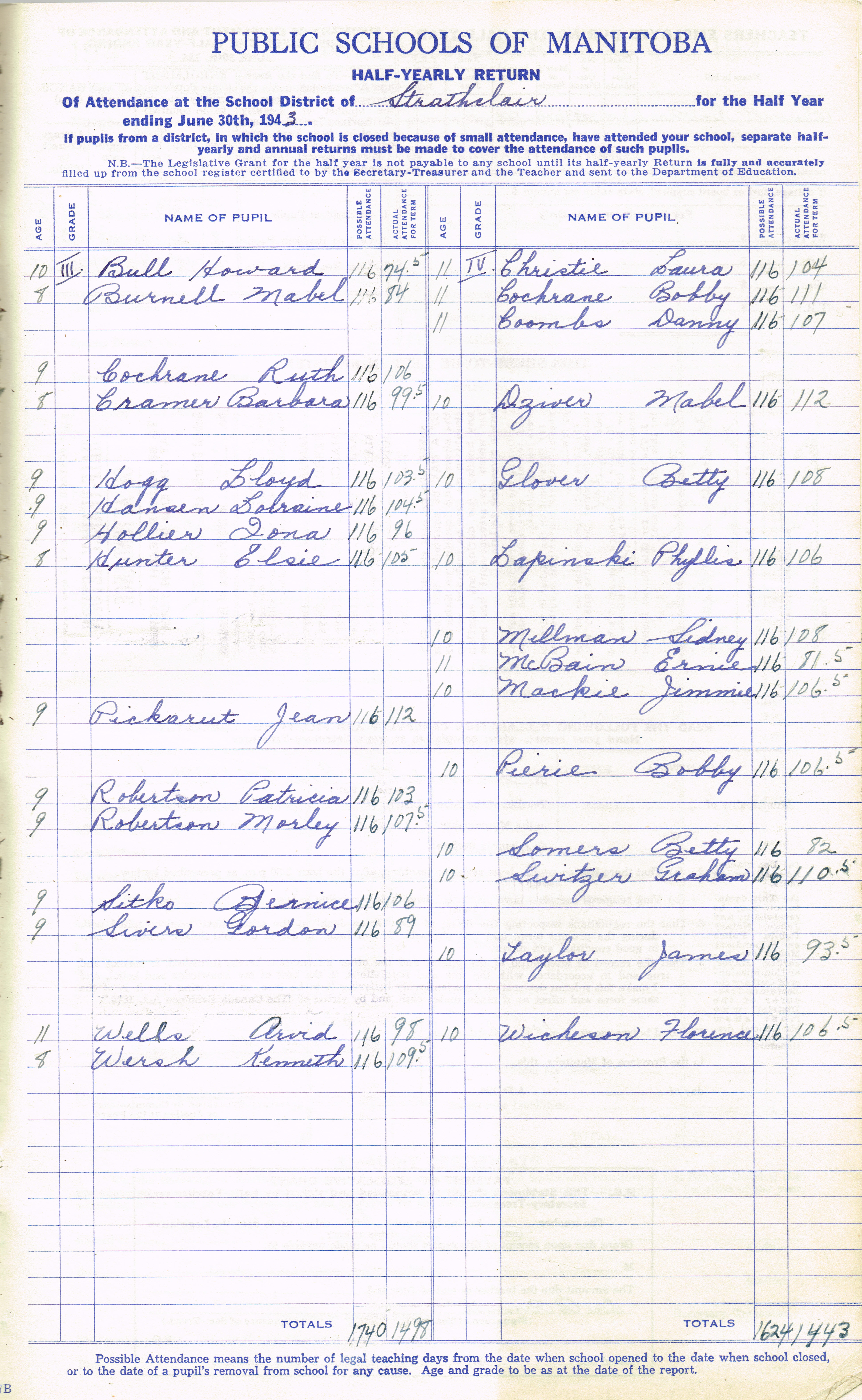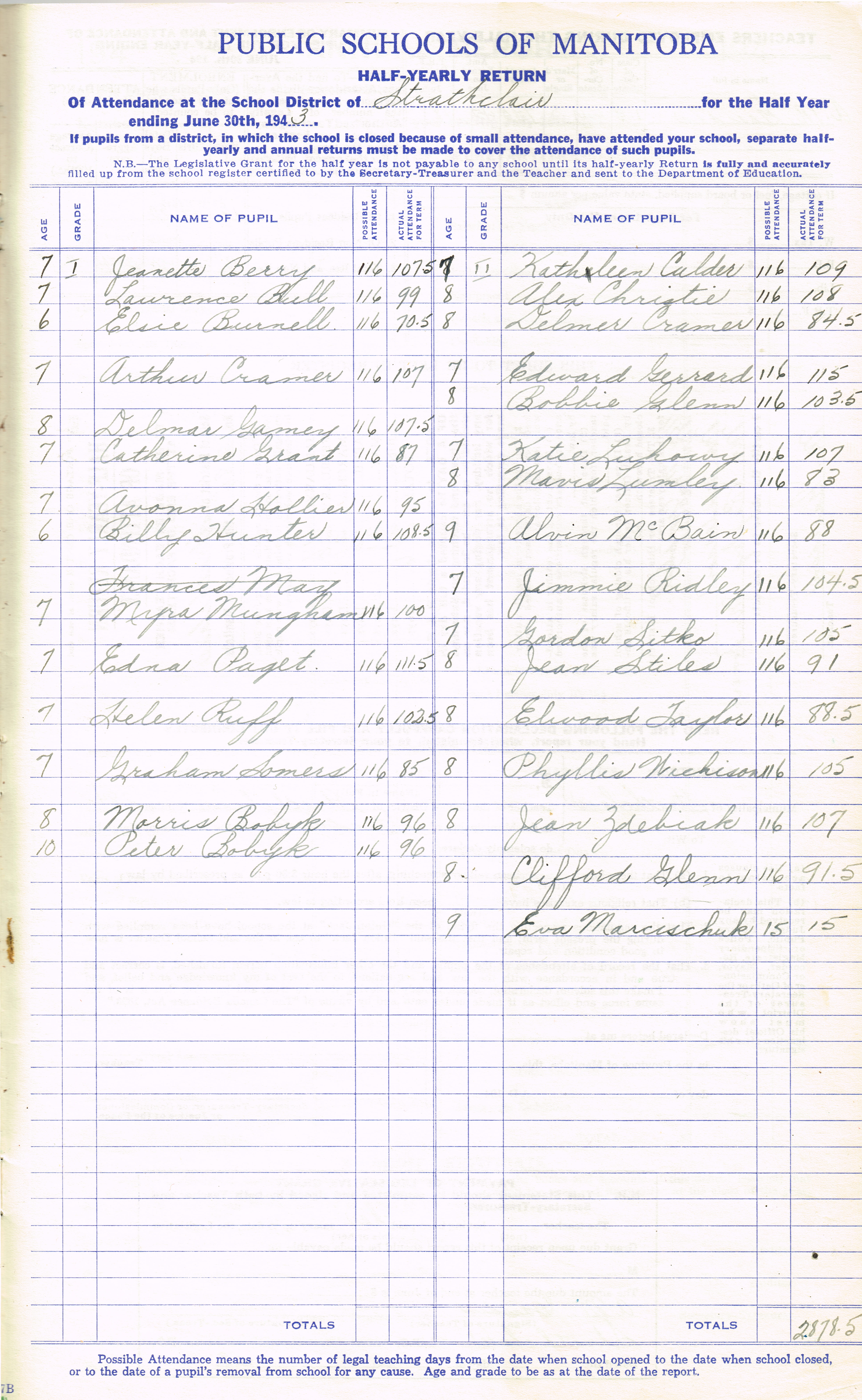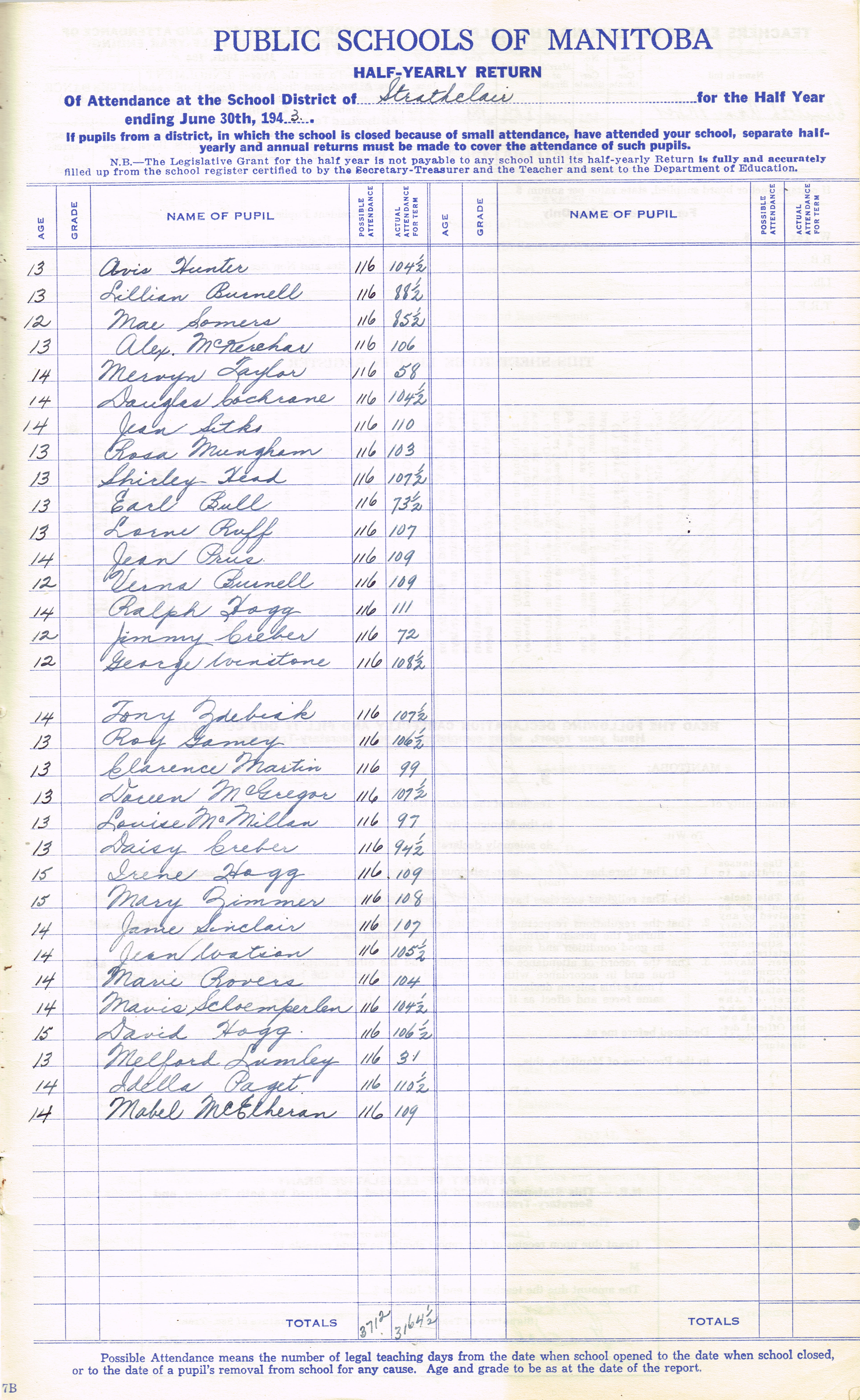 Object Name Strathclair Consol. Sch. #284, 1942-43
