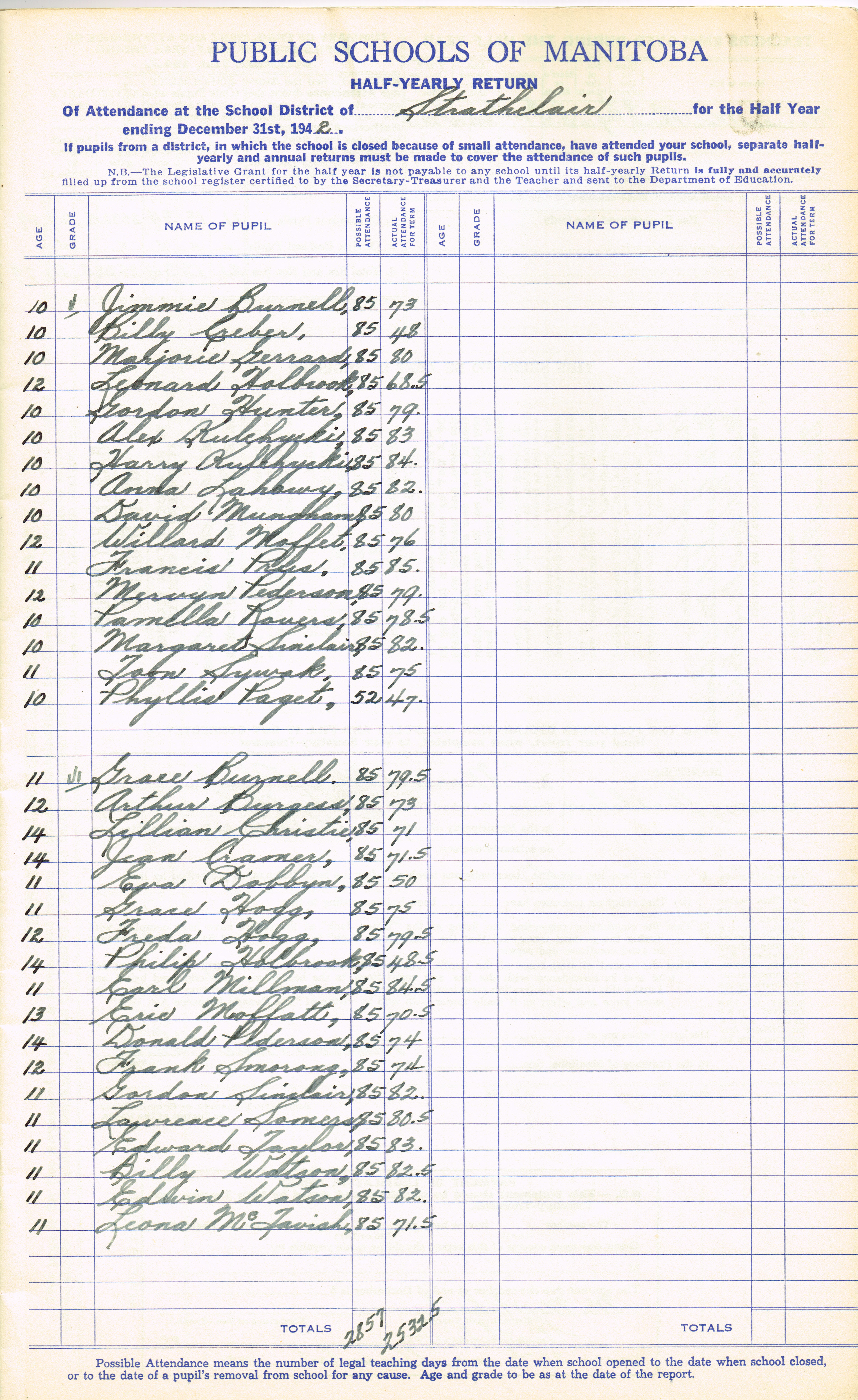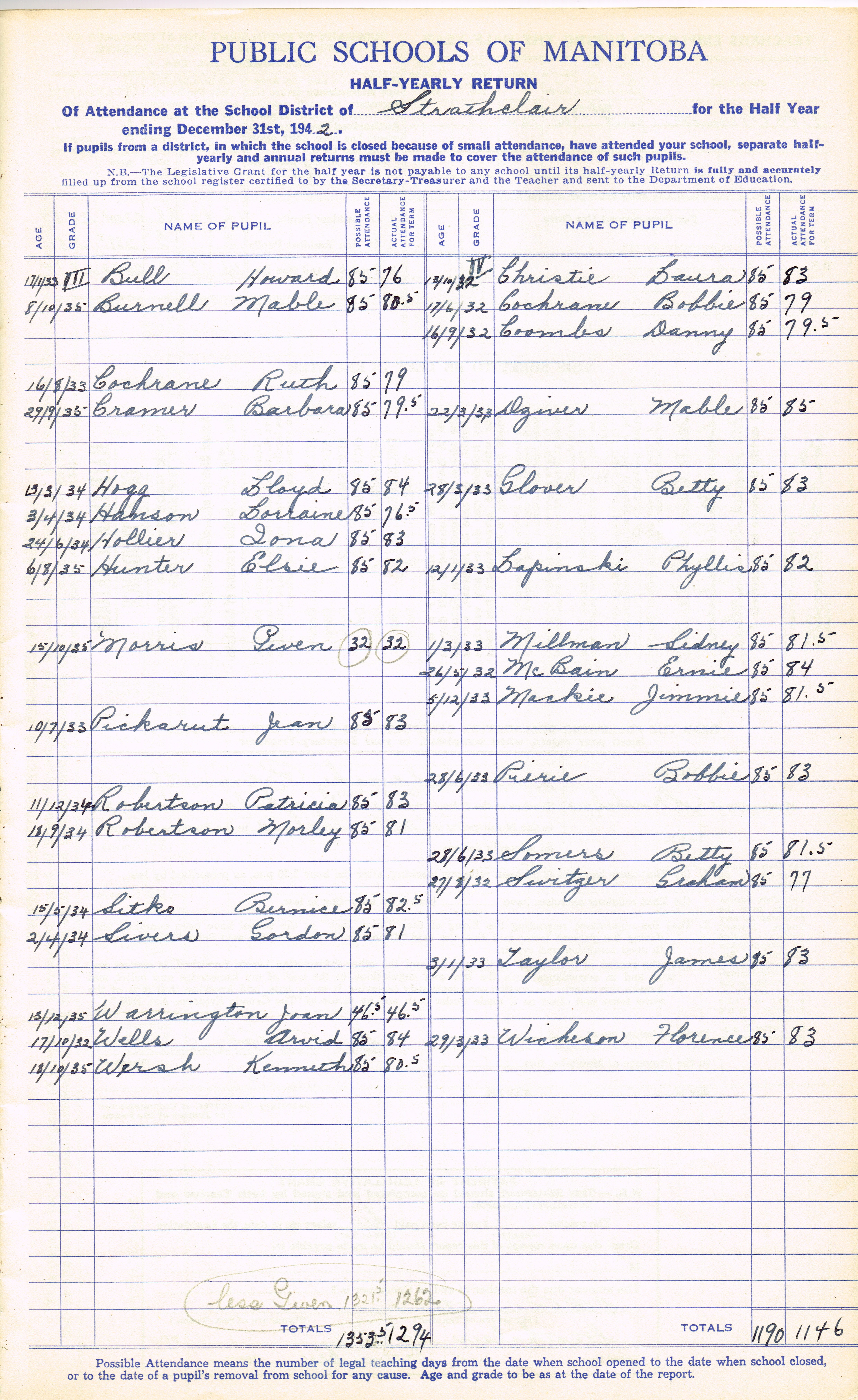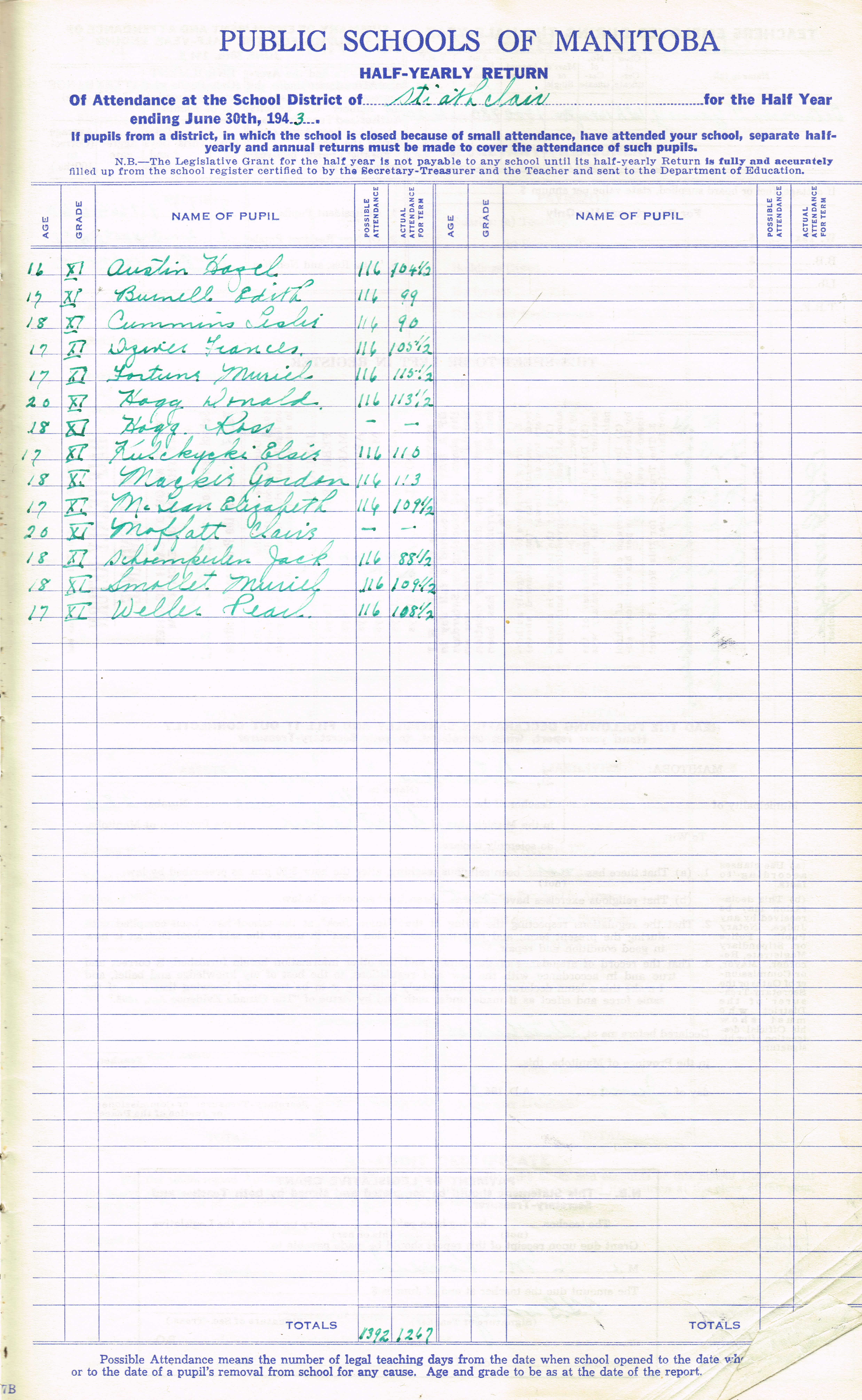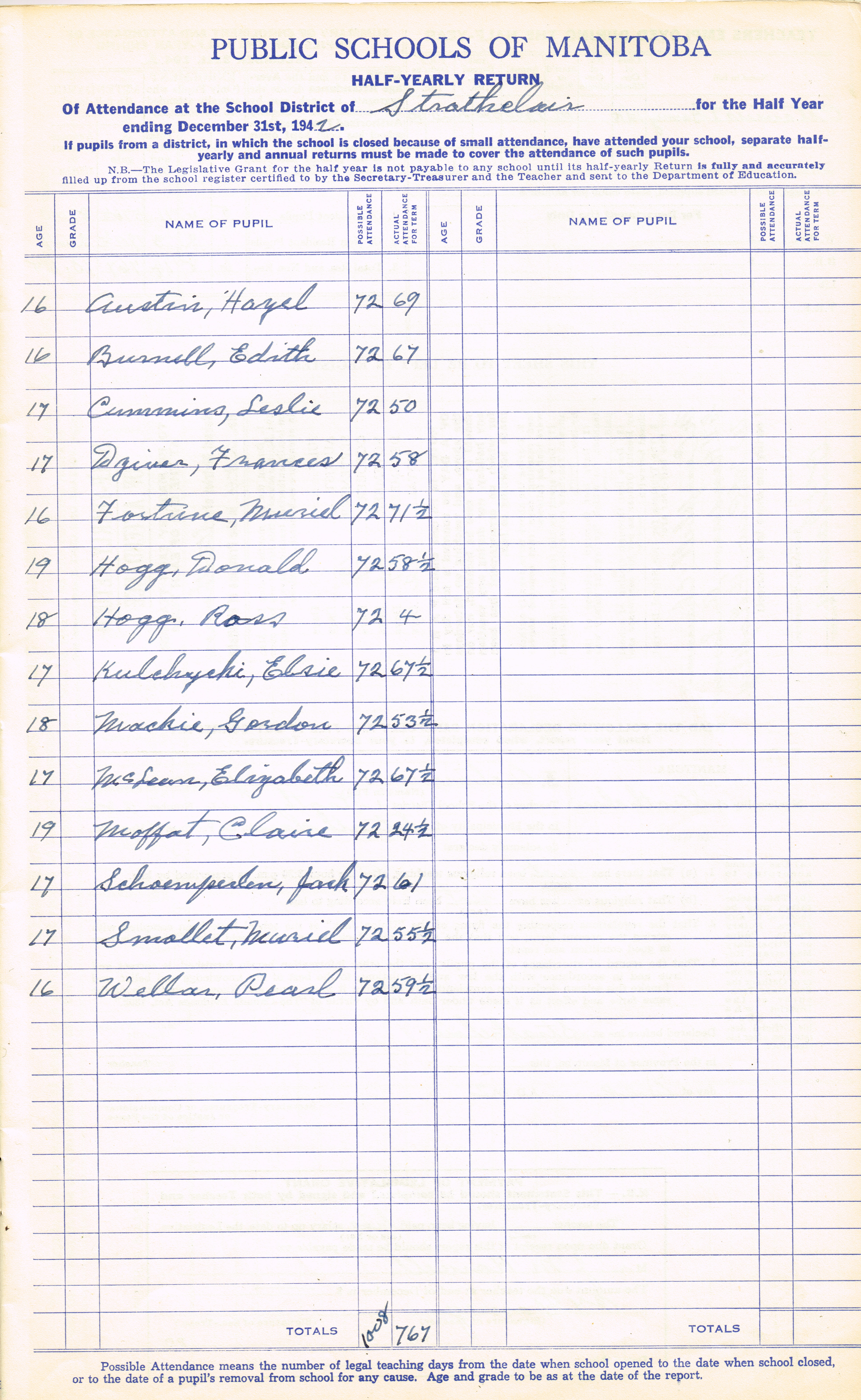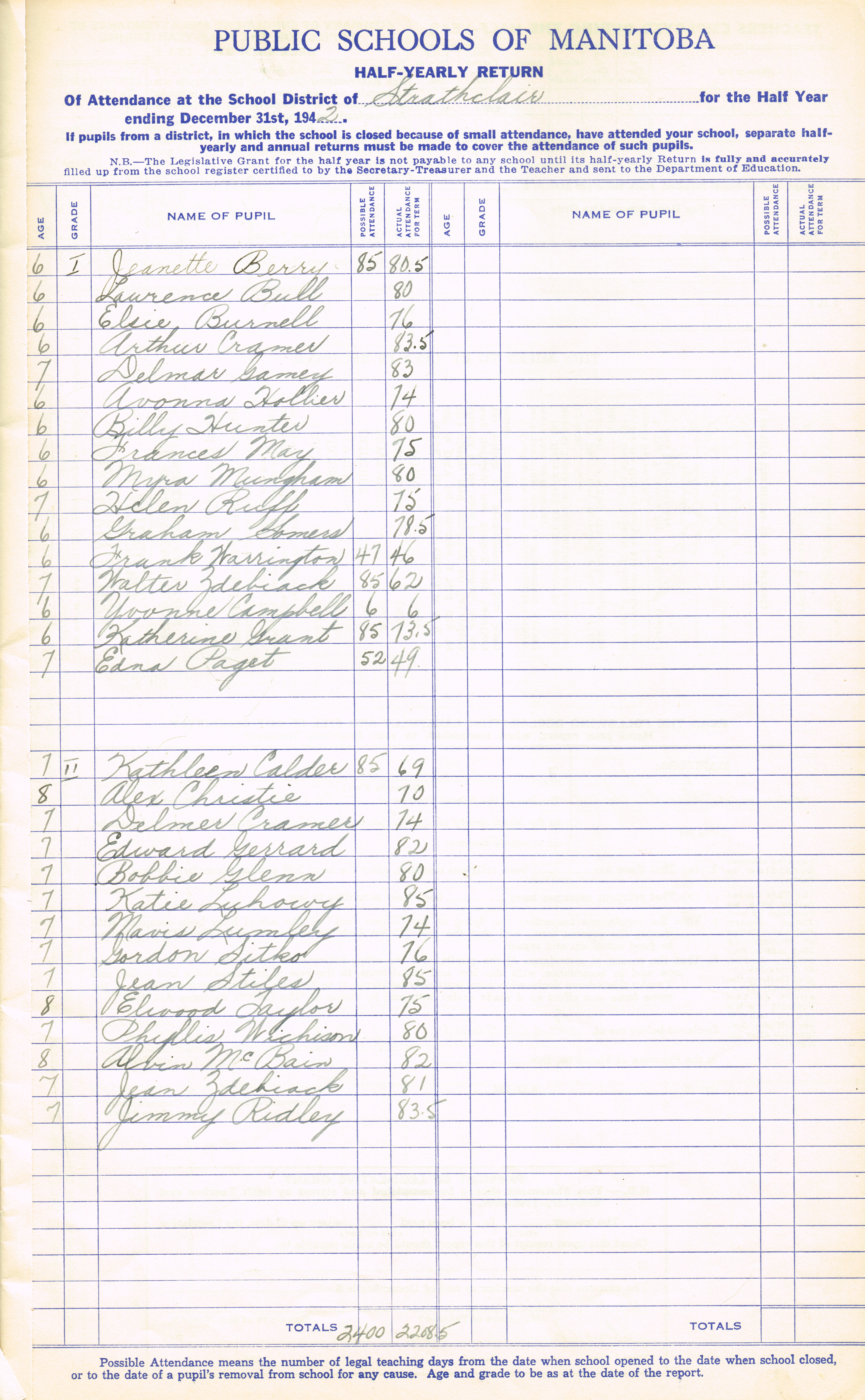Object Name Strathclair Consol. Sch. #284, 1942-43