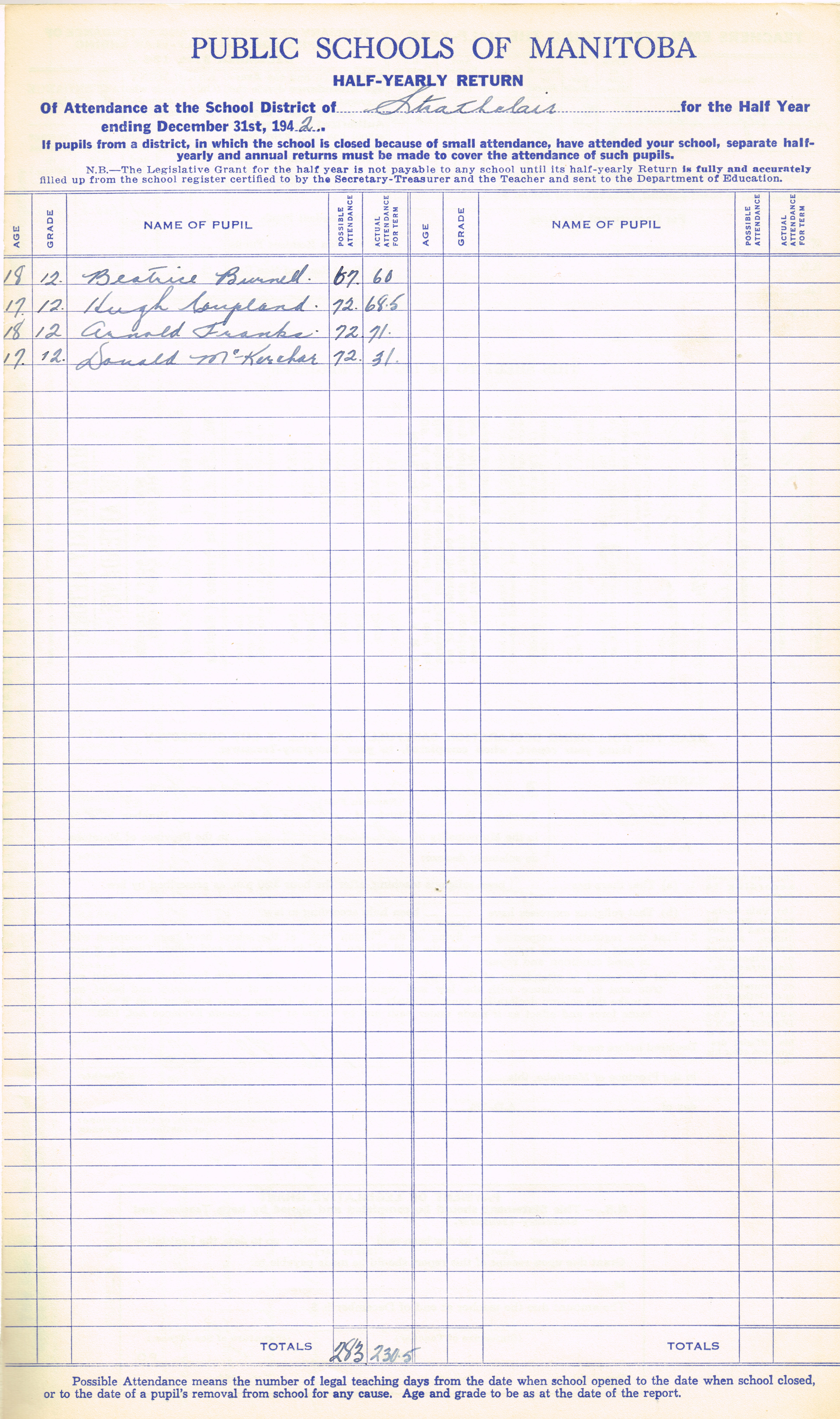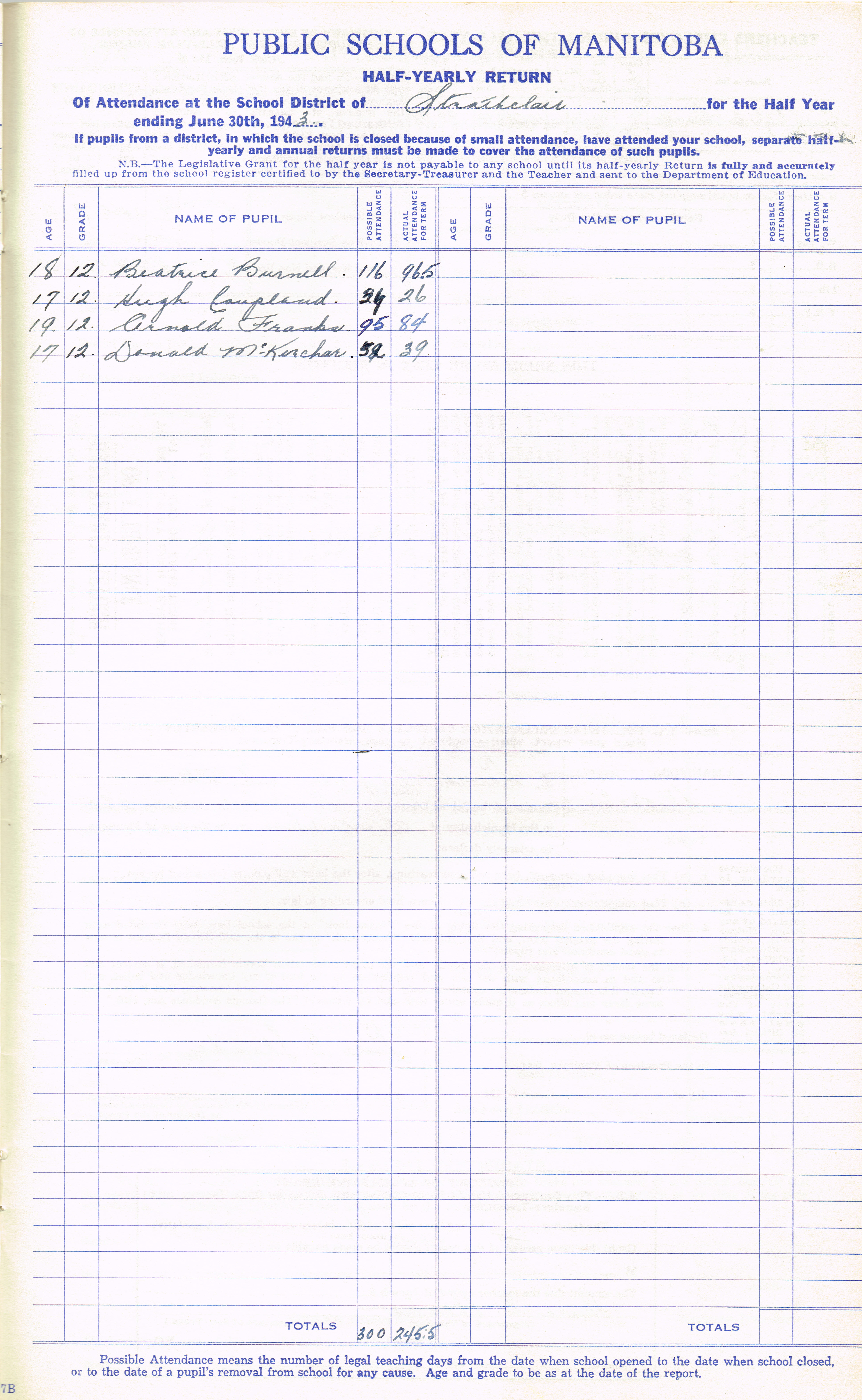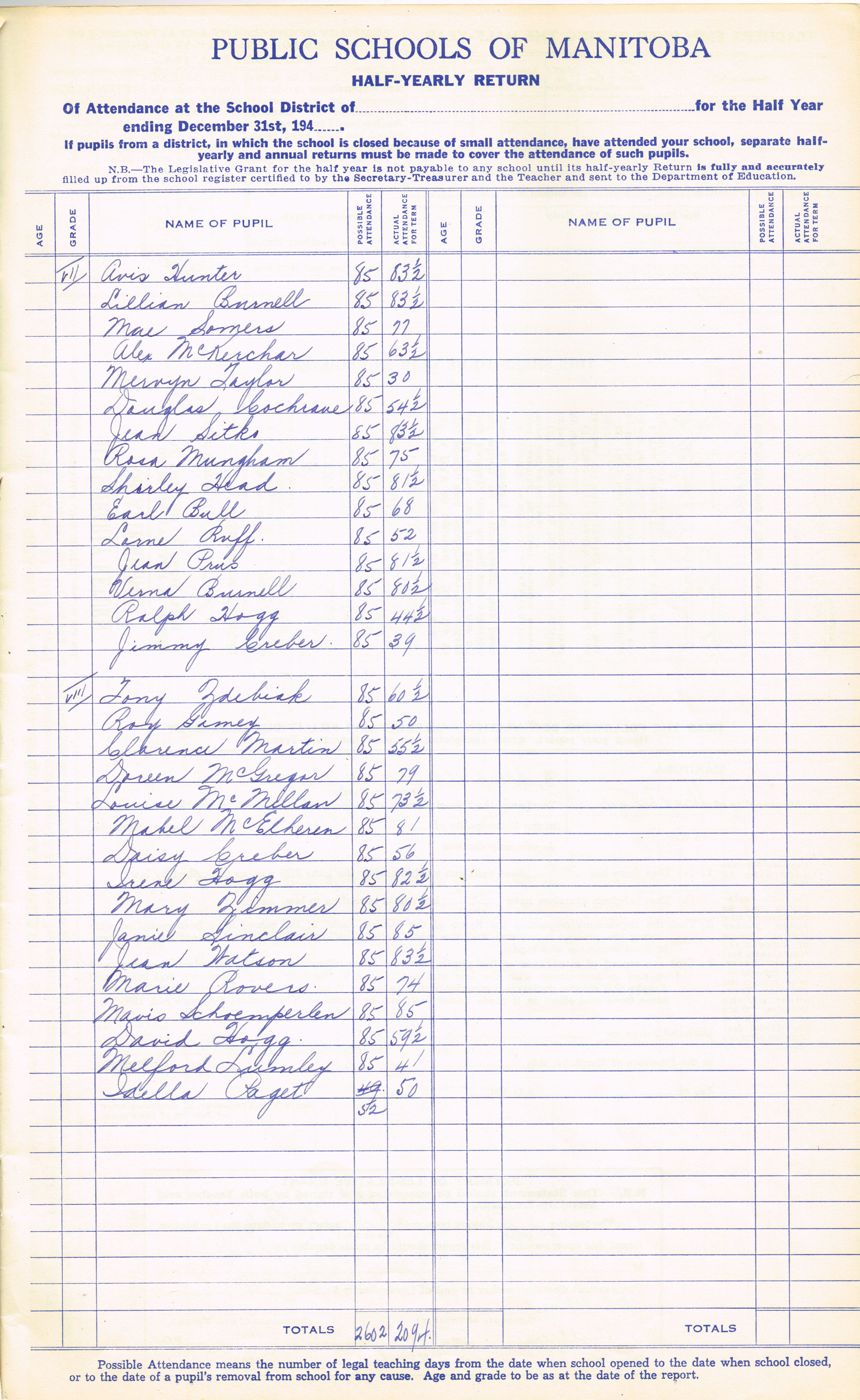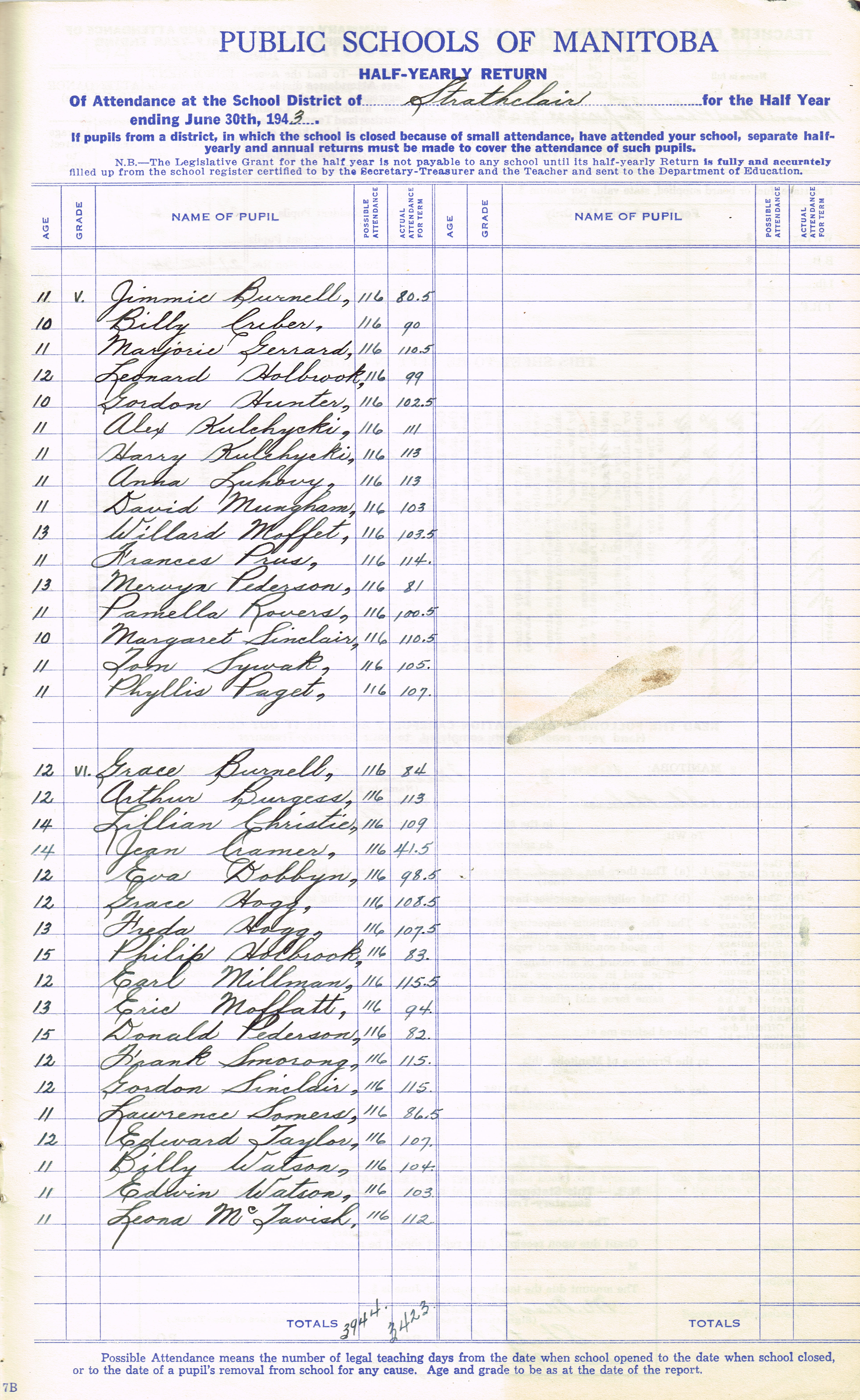 Object Name Strathclair Consol. Sch. #284, 1942-43