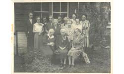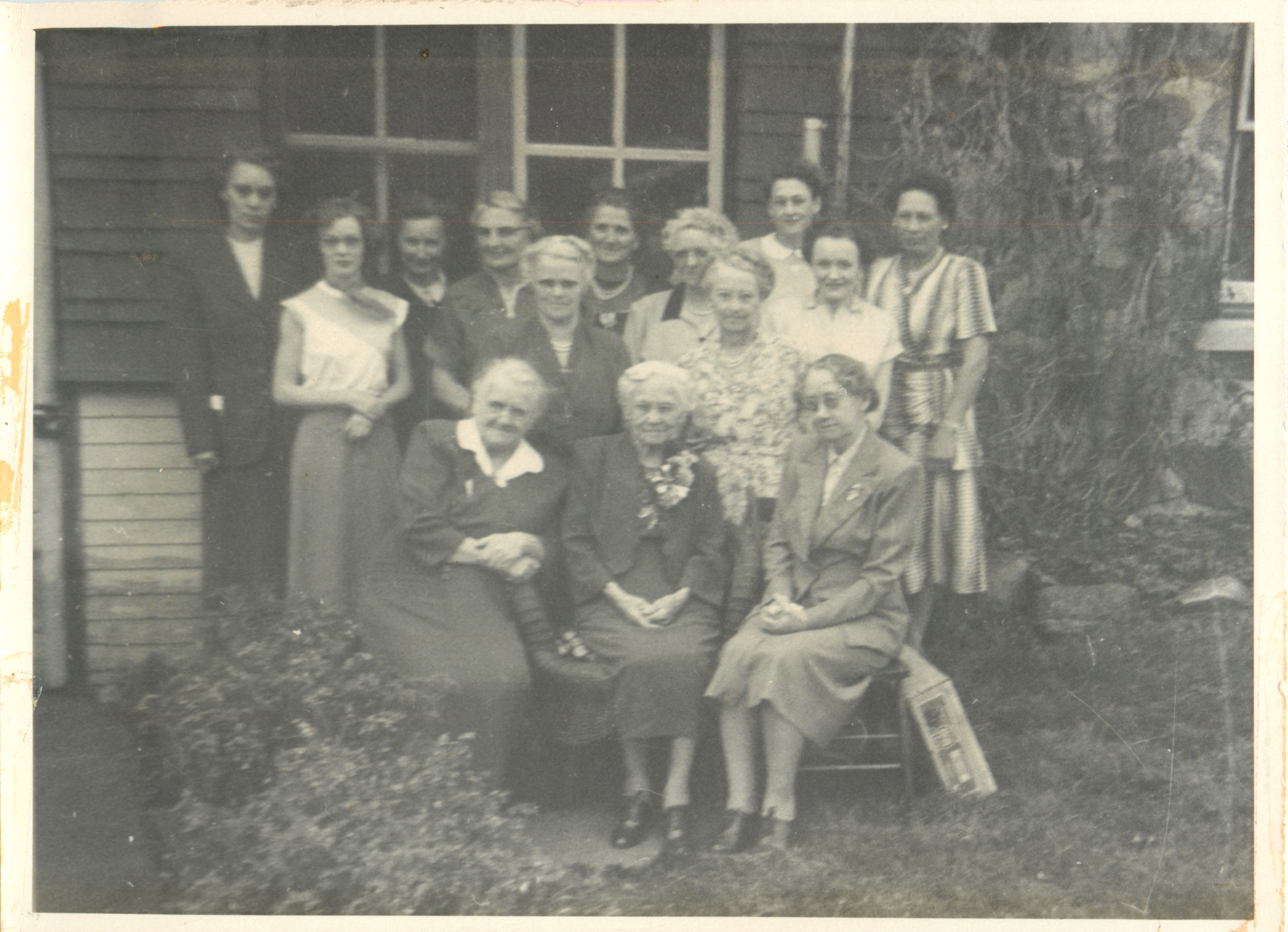 Description 2013.1818 Front Row: Mrs. Jo (Tom) Head, Mrs. Janet Stewart (Ontario), Mrs. Annie (Marr) Black. Back Row: Mrs. Florence (Howard) Mervyn, Mrs. Pat (Doug) Pollck, Mrs. Agnes (Fred) Mackie, Mrs. Anne (Leonard) Hayball, Mrs. Nellie (Jack) Elliott, Mrs. Verna (Art) Gamey, Mrs. Margaret (Charlie) Ruff, Mrs Agnes (Cam) Robertson, Mrs. Kae (Allister) Elliott, Mrs. Uretta (George) Martin.