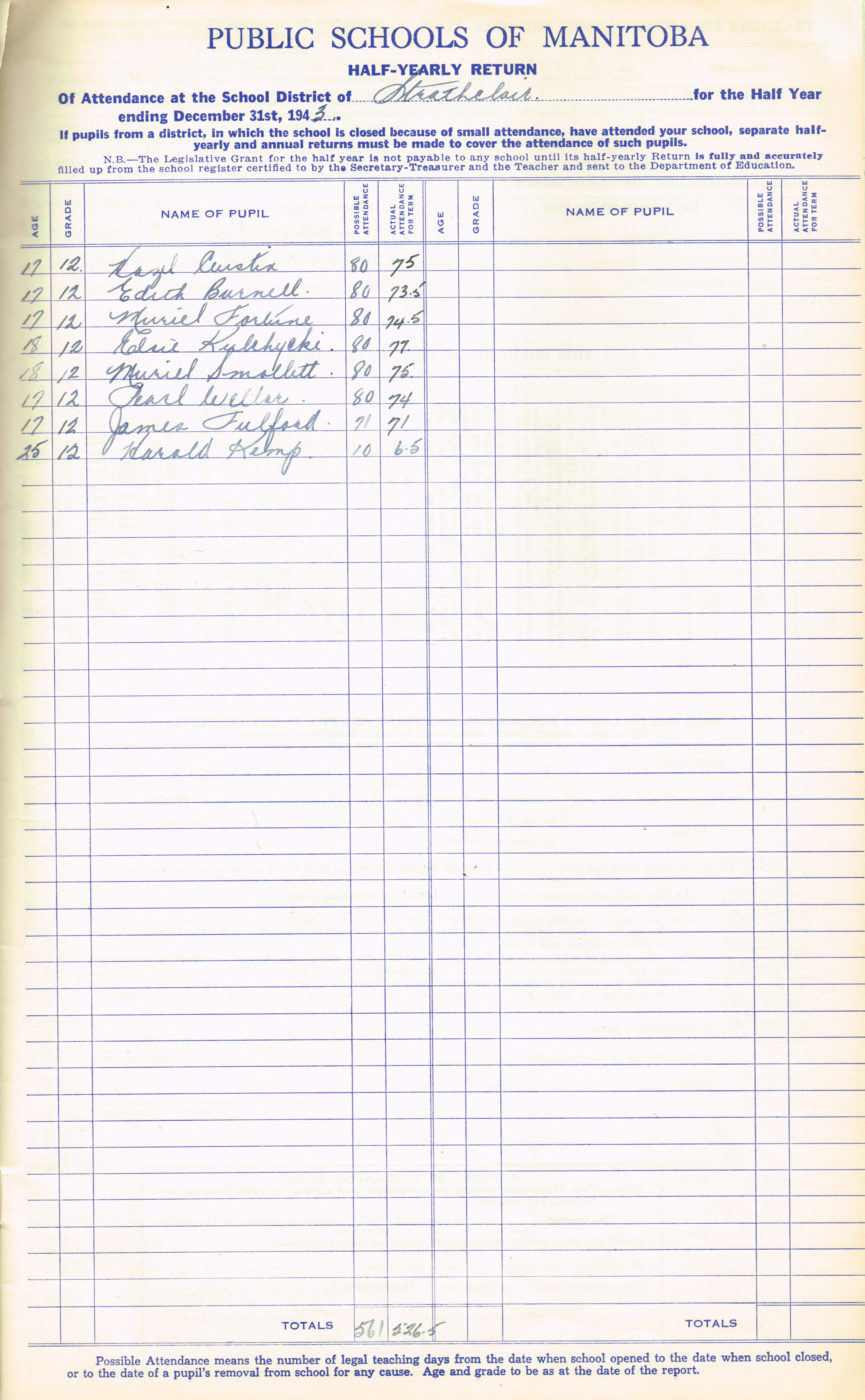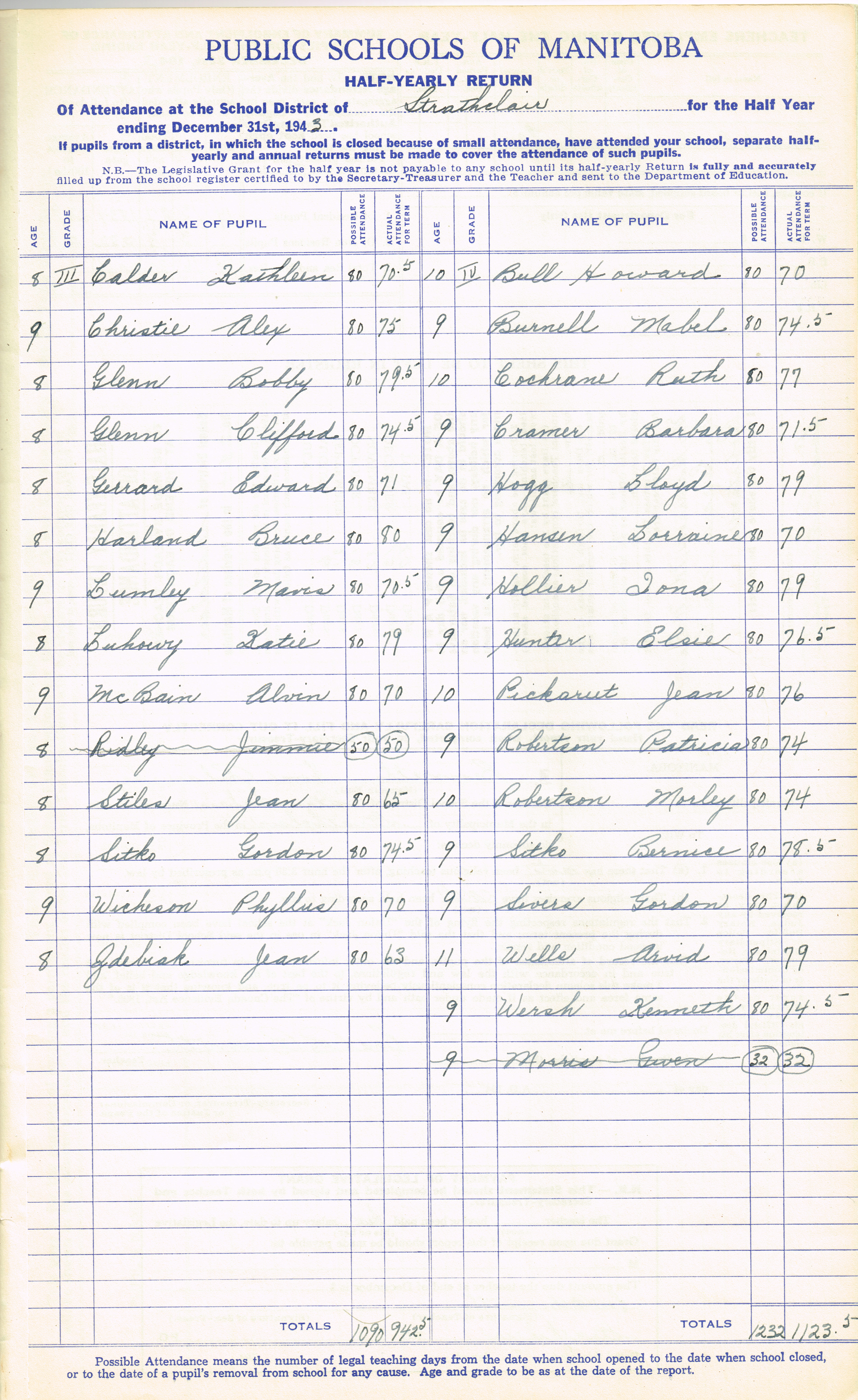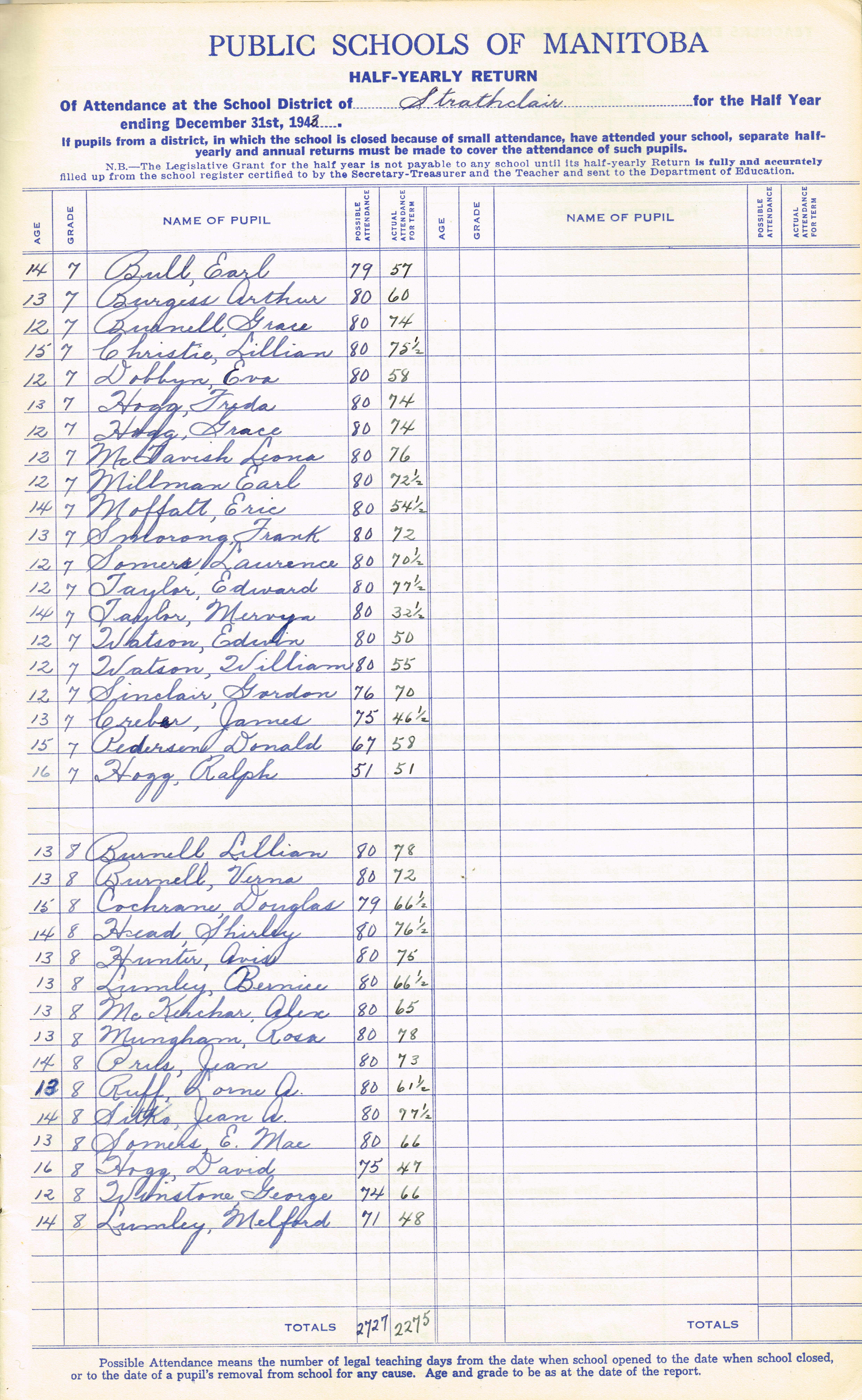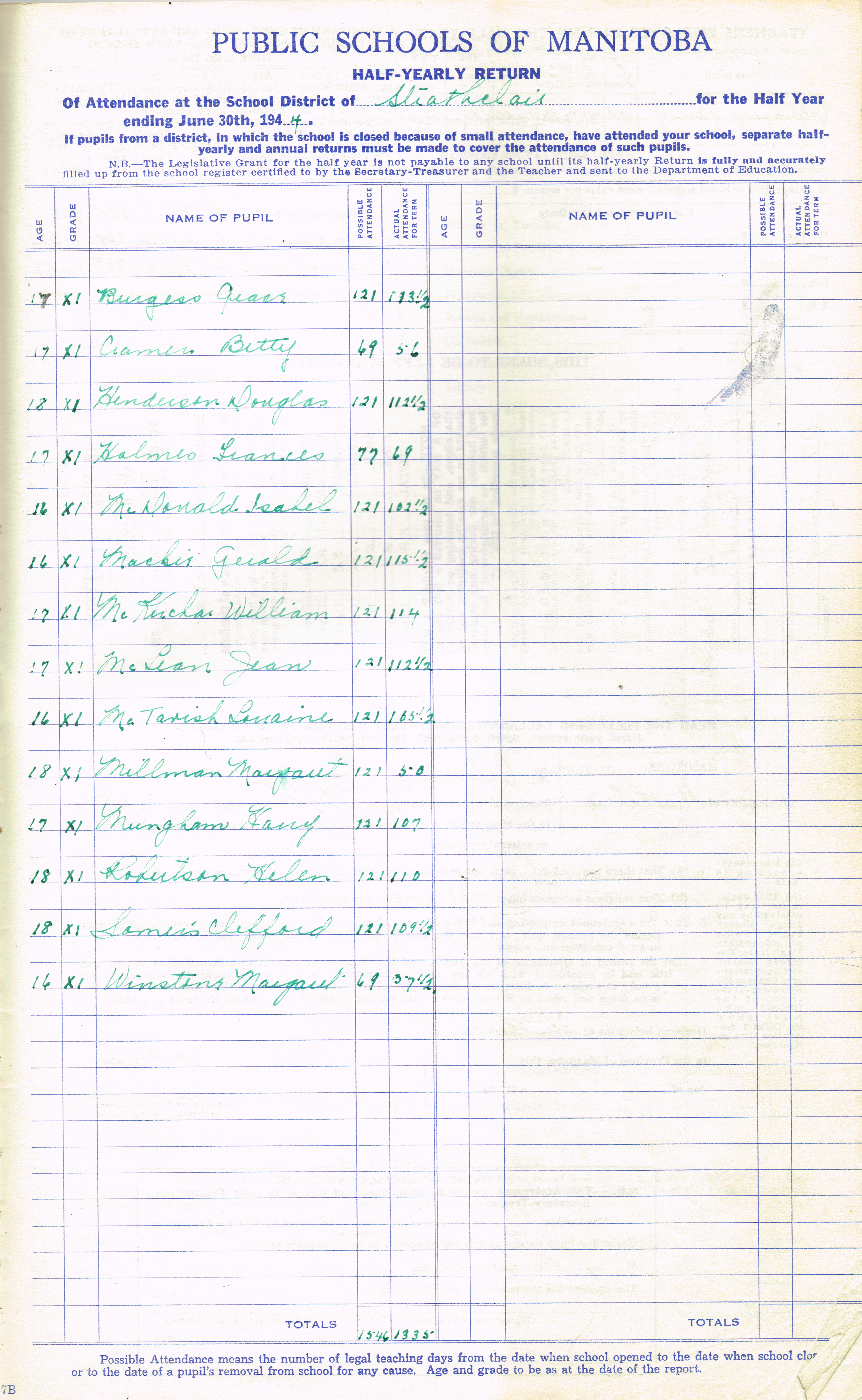 Object Name Strathclair Consol. Sch. #284, 1943-44