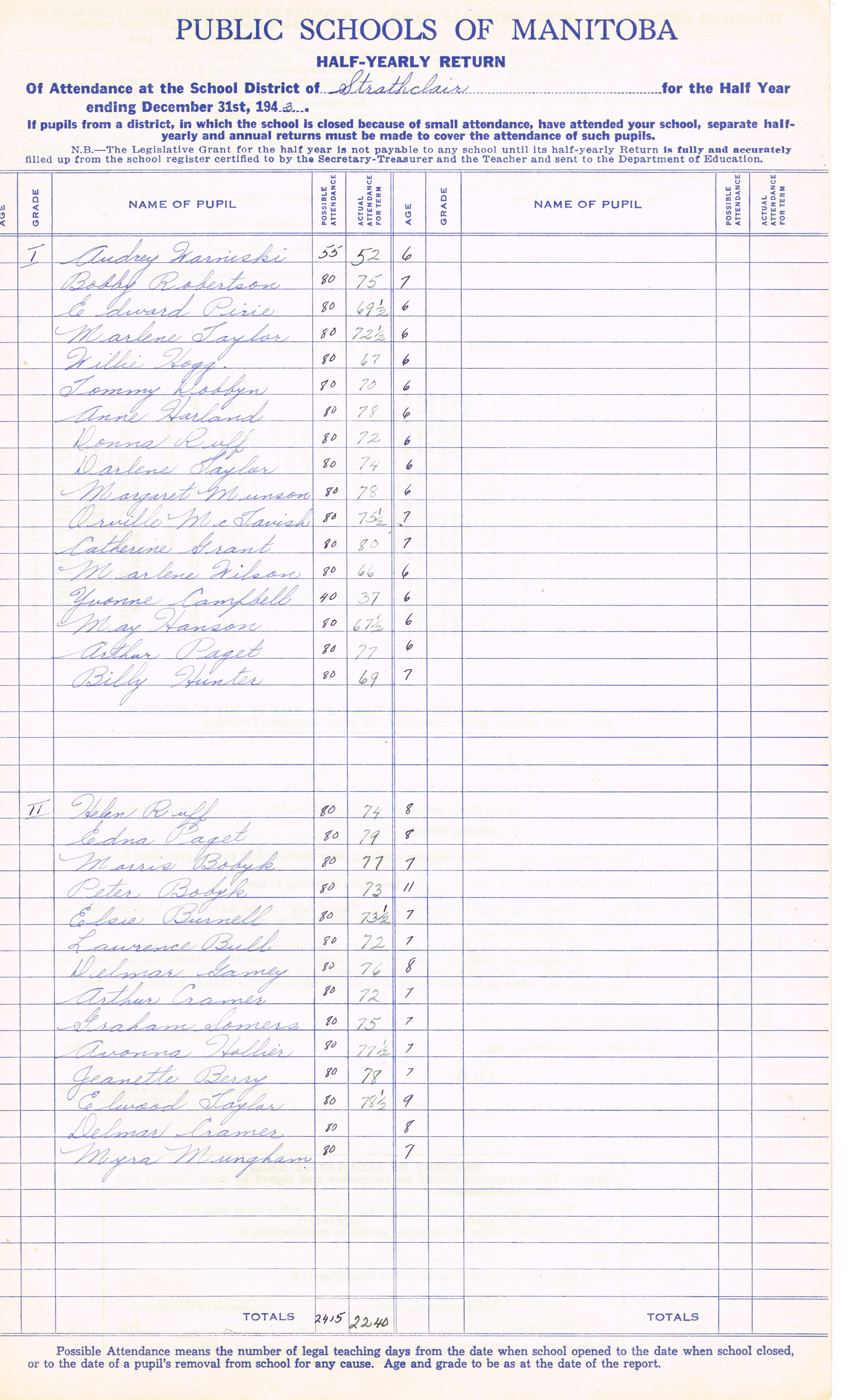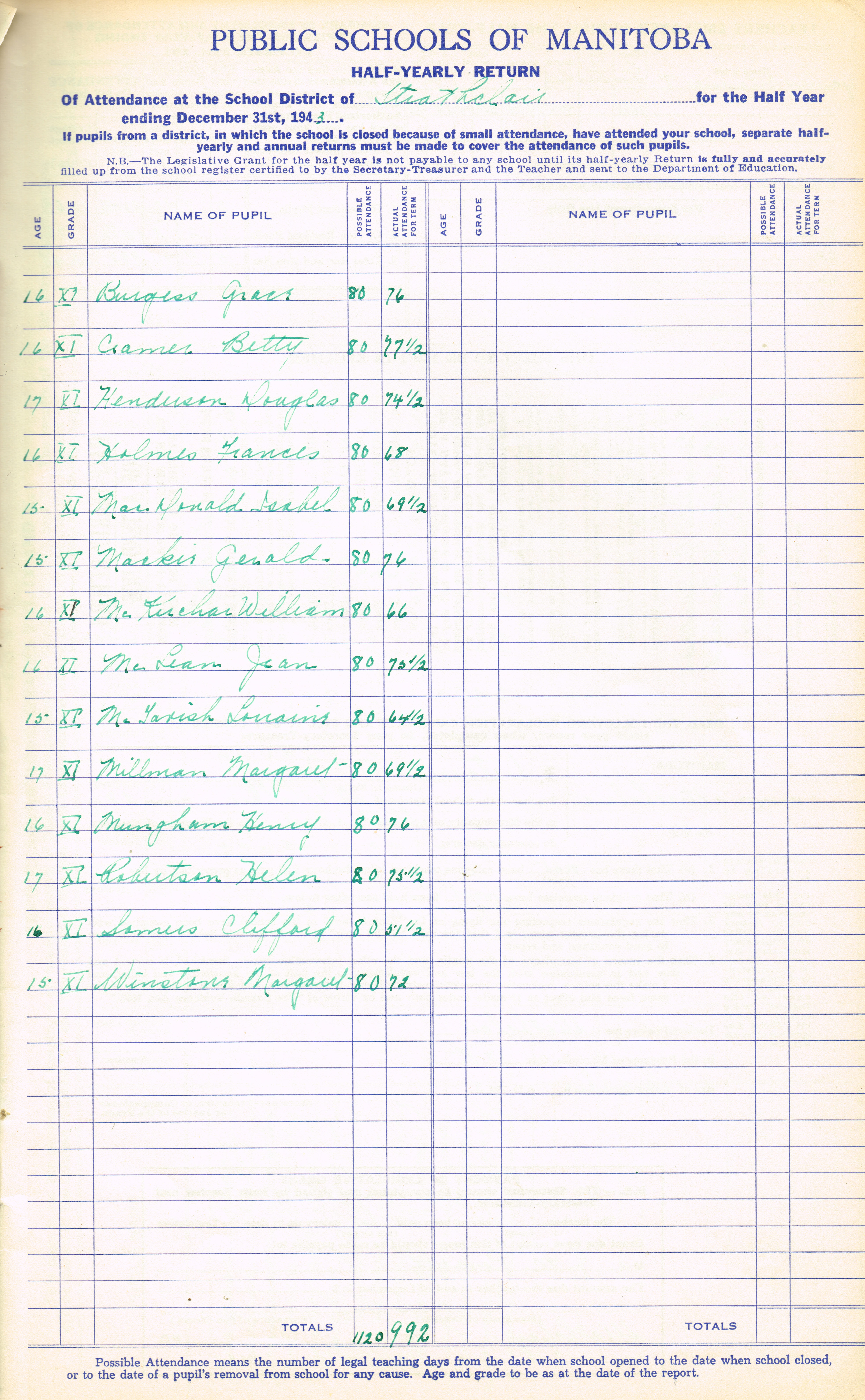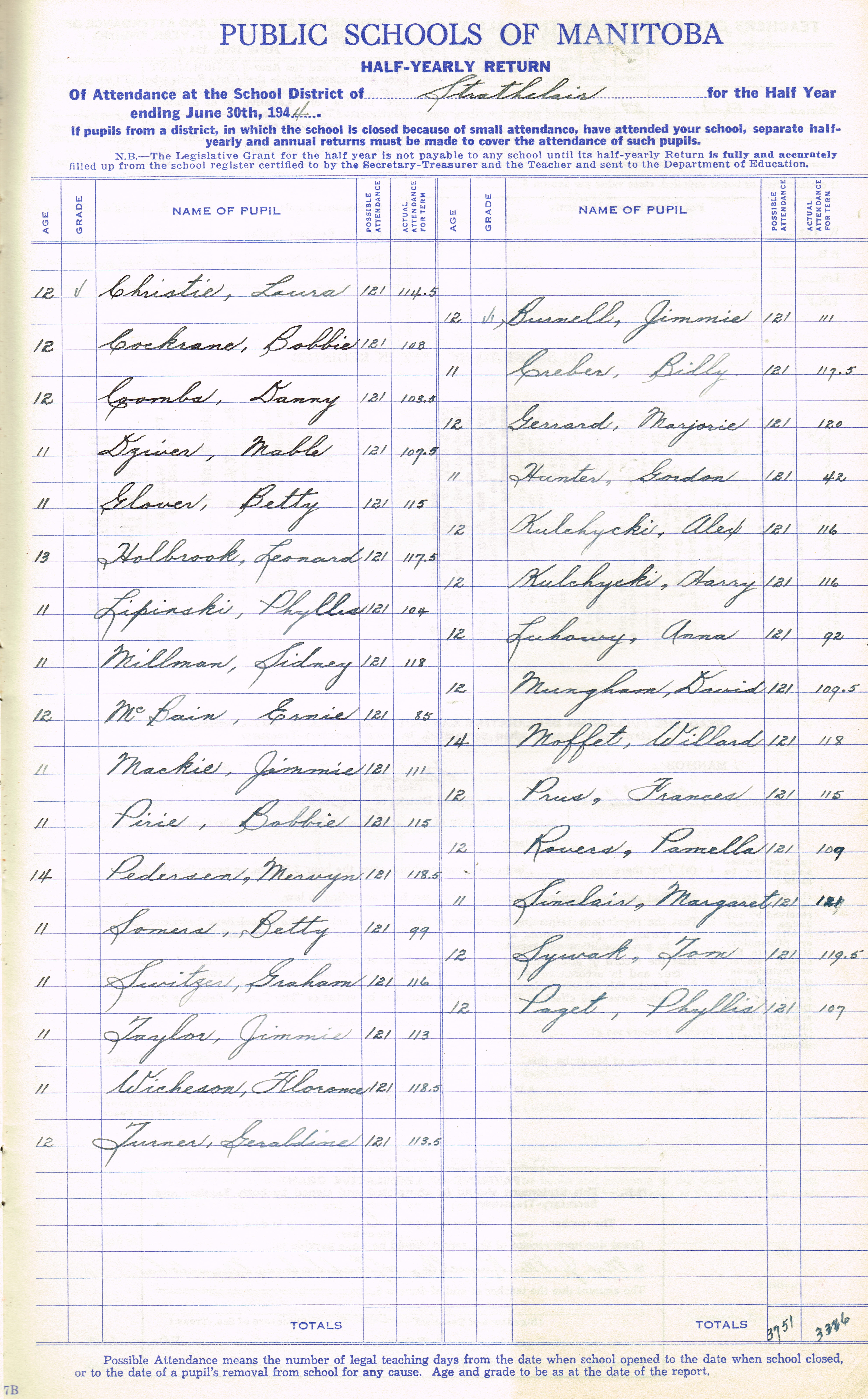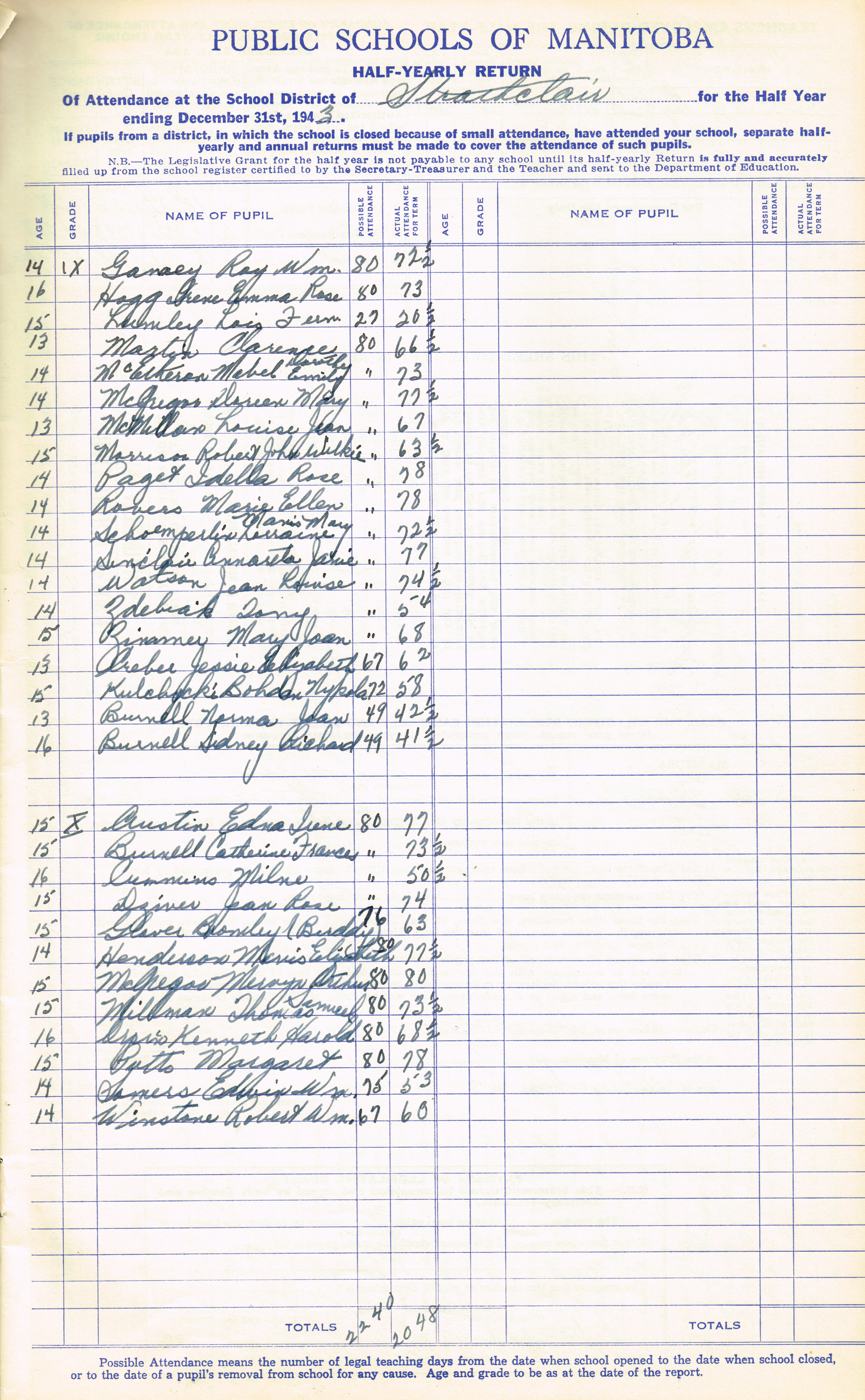 Object Name Strathclair Consol. Sch. #284, 1943-44