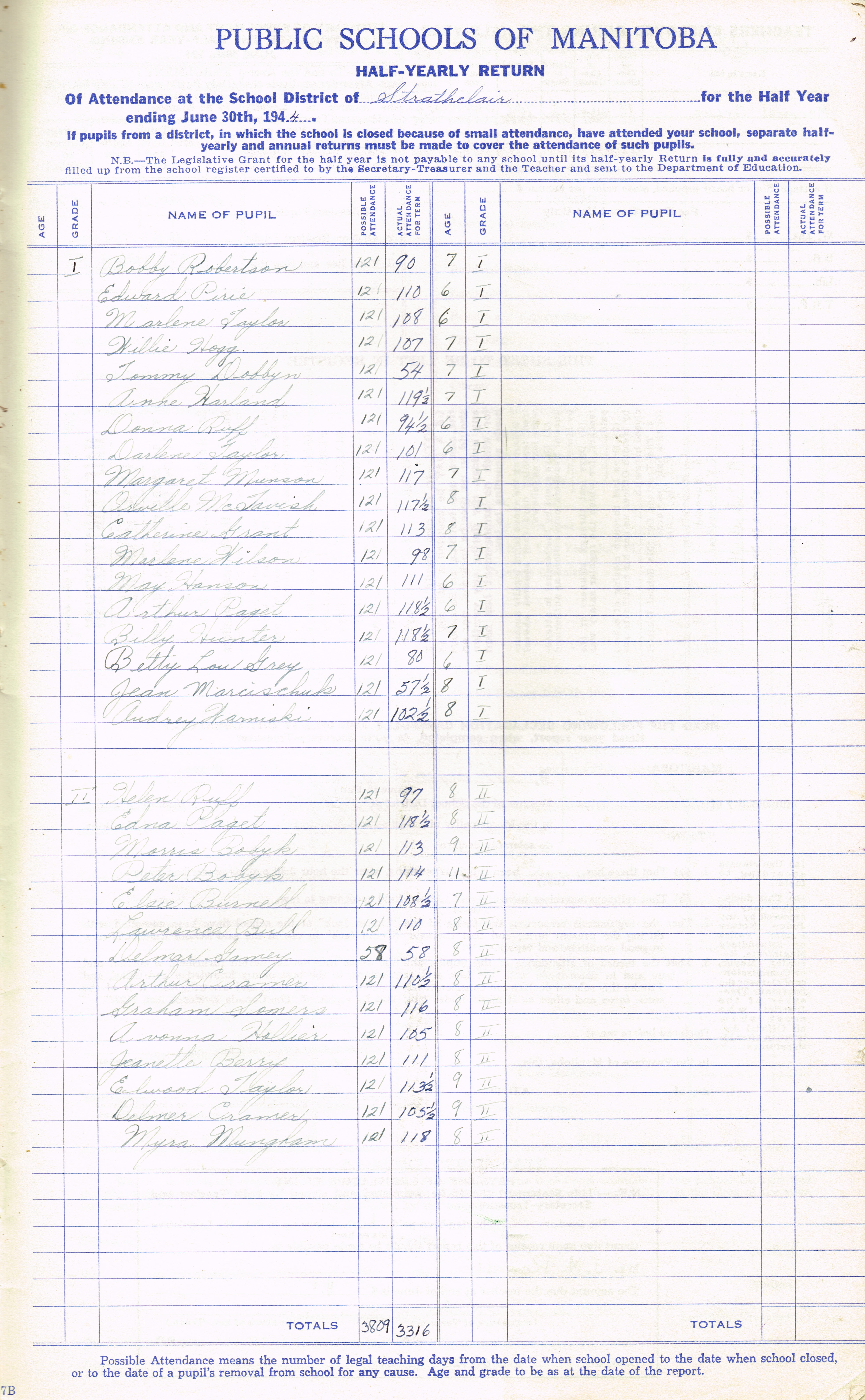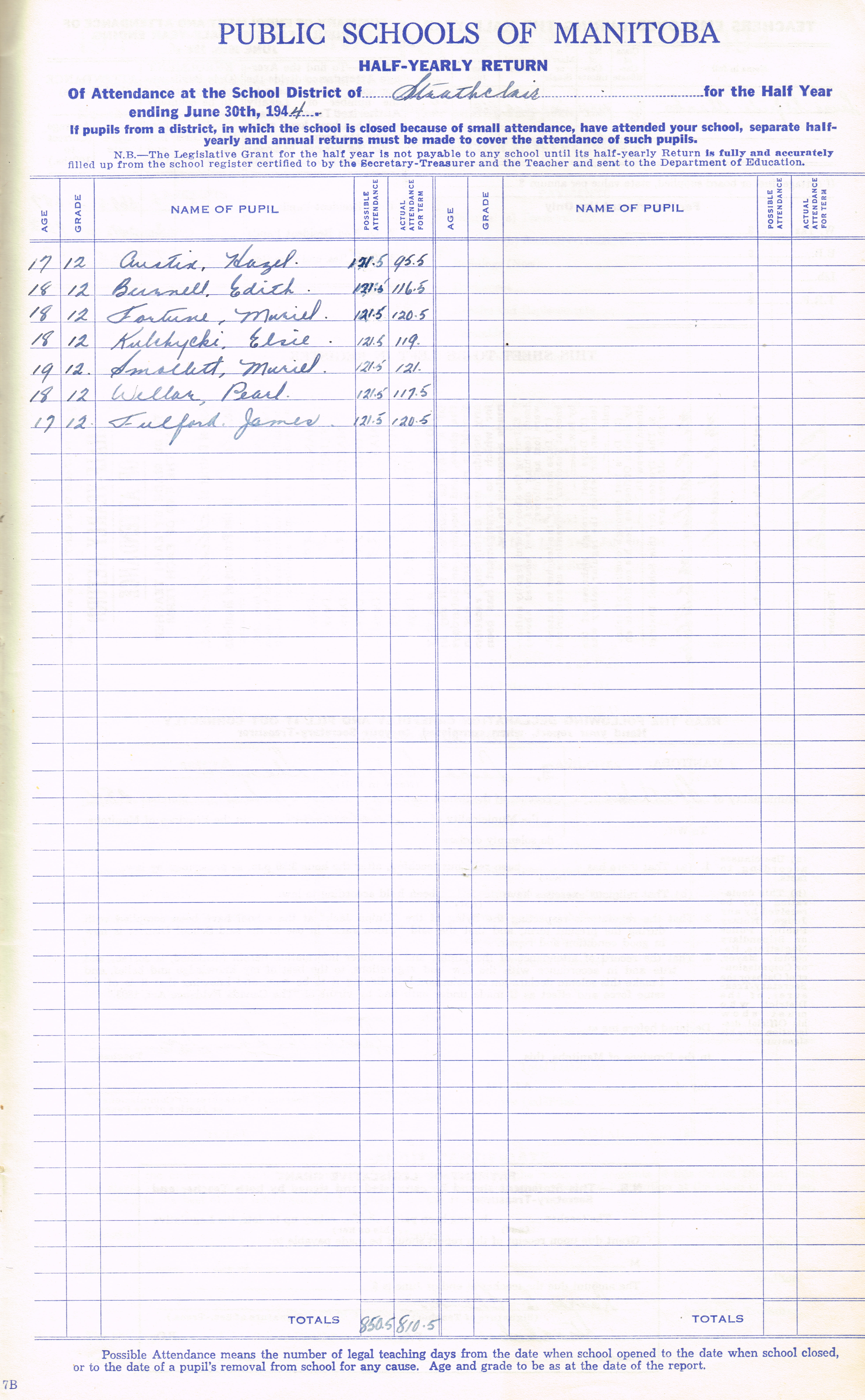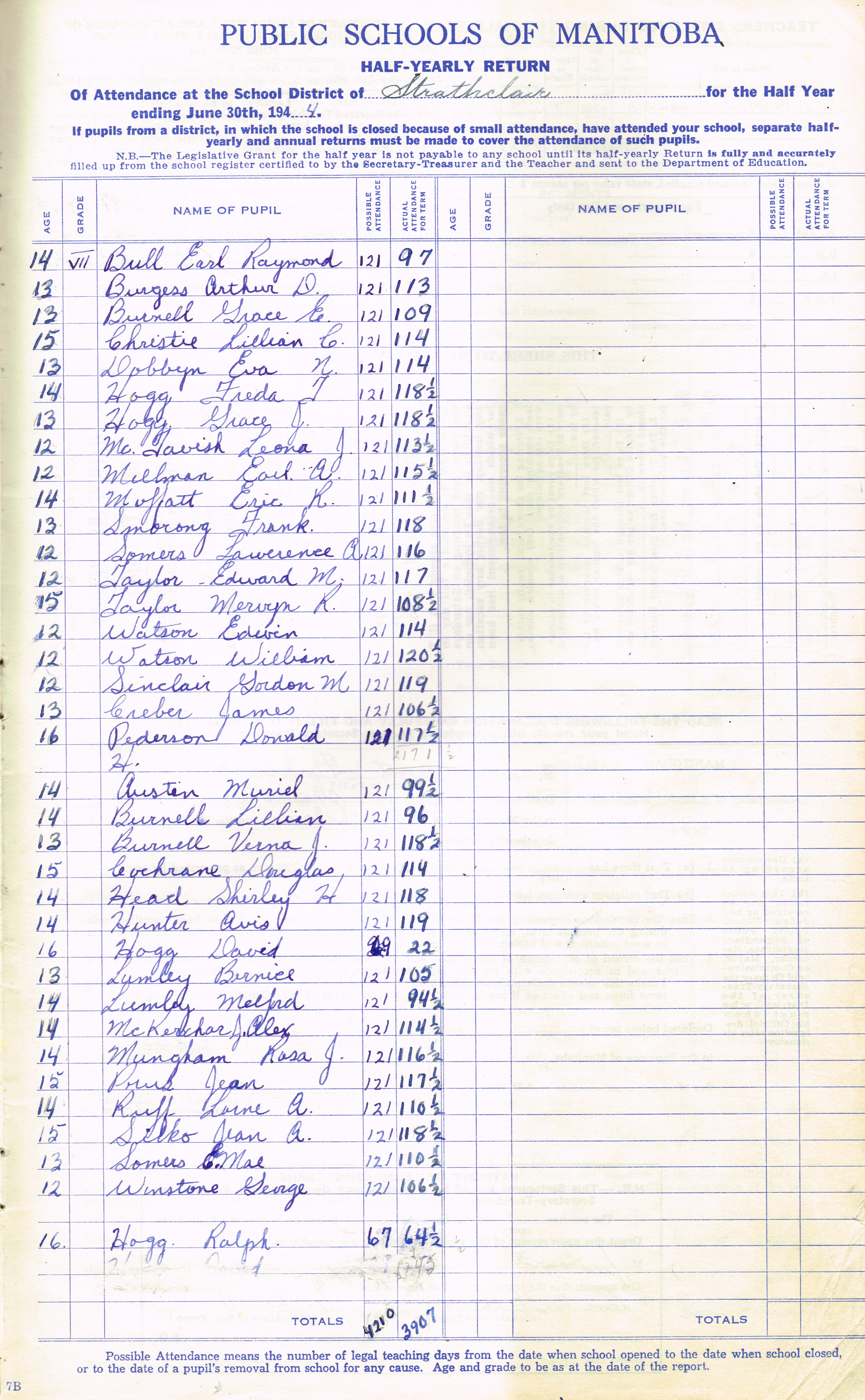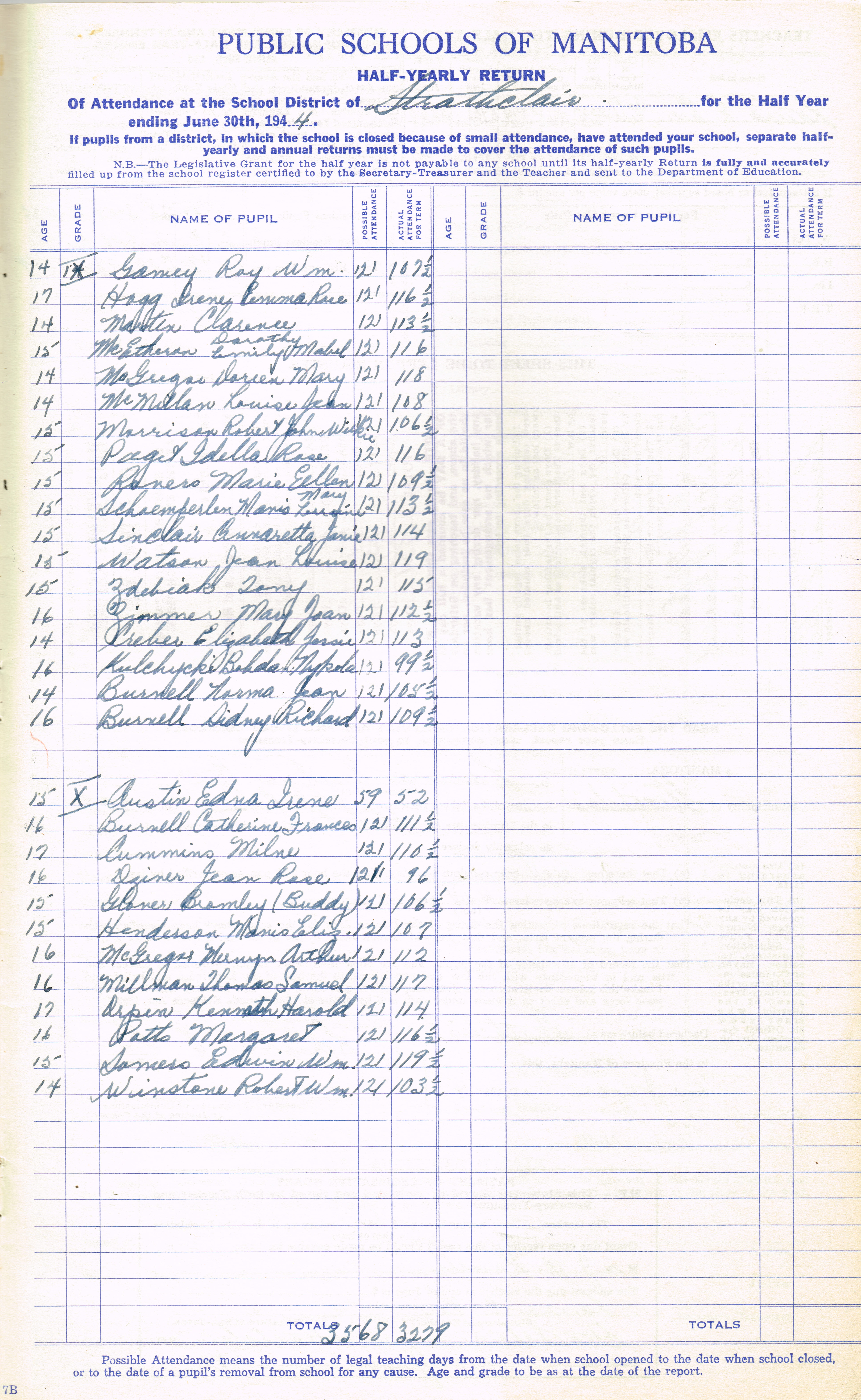 Object Name Strathclair Consol. Sch. #284, 1943-44